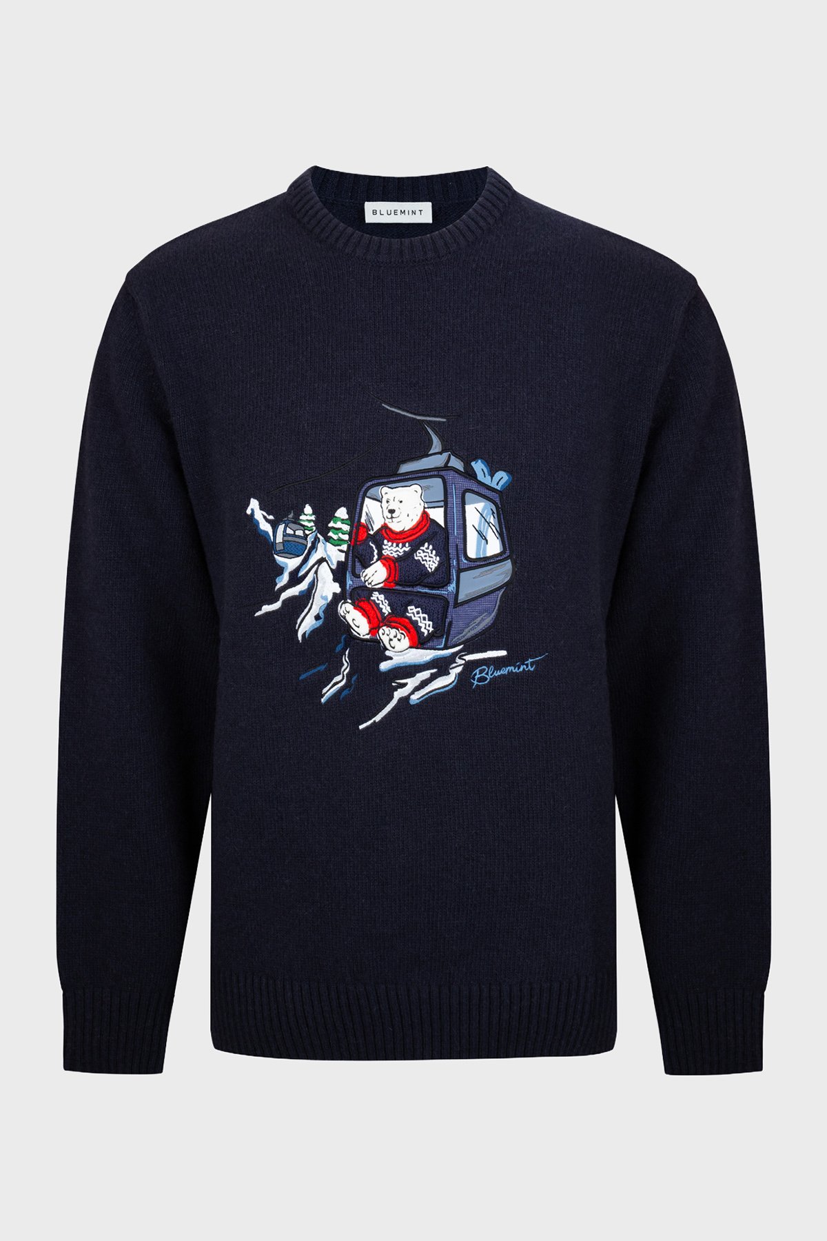 Yün Karışım Comfort Fit Nakışlı Detaylı Erkek Kazak BM25019728MW1 256 LACİVERT