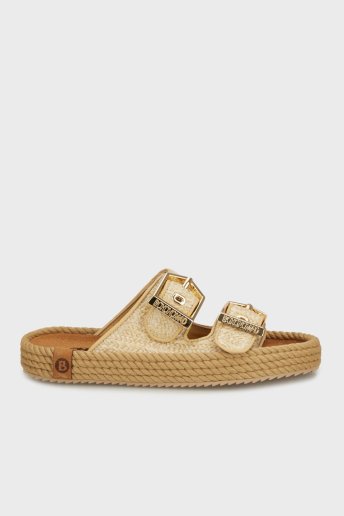 Sydney Hasır Detaylı Çift Bantlı Tokalı Bayan Terlik SYD12-00012 Hasır Bej