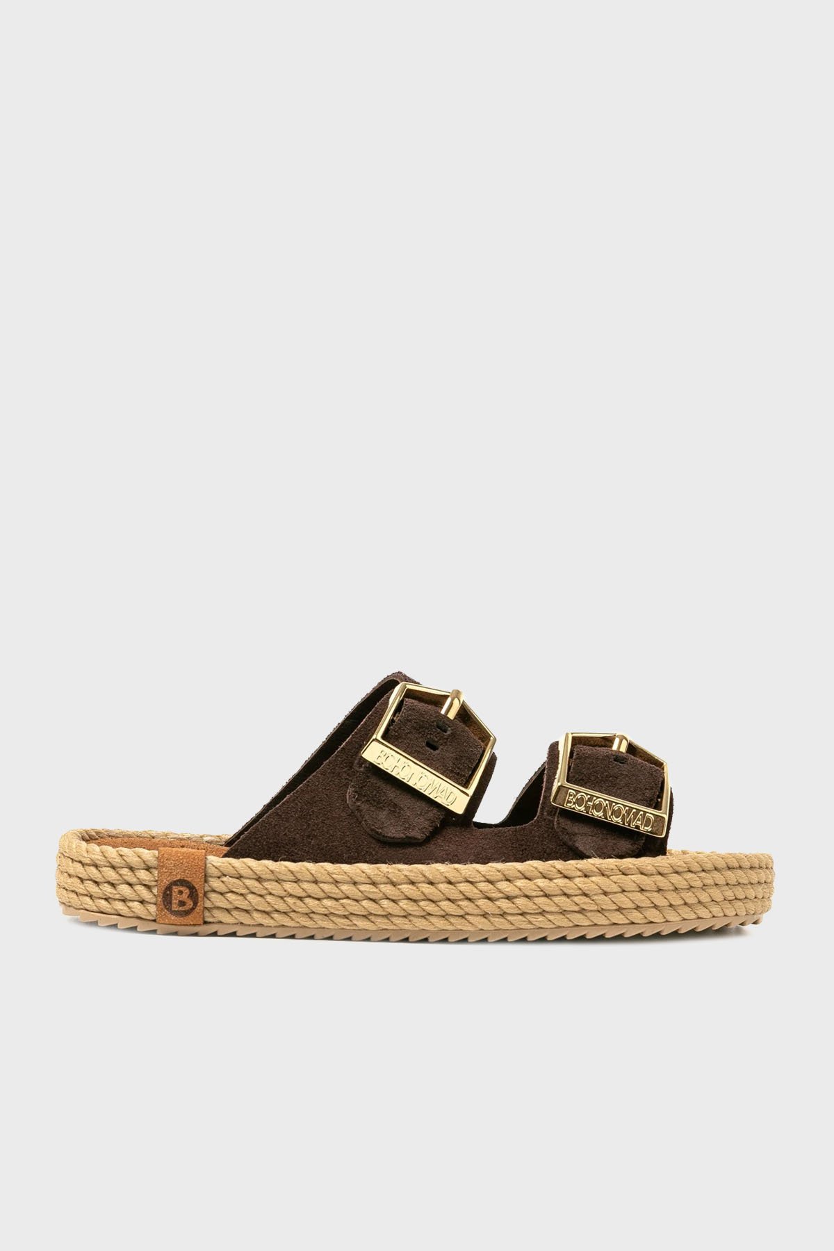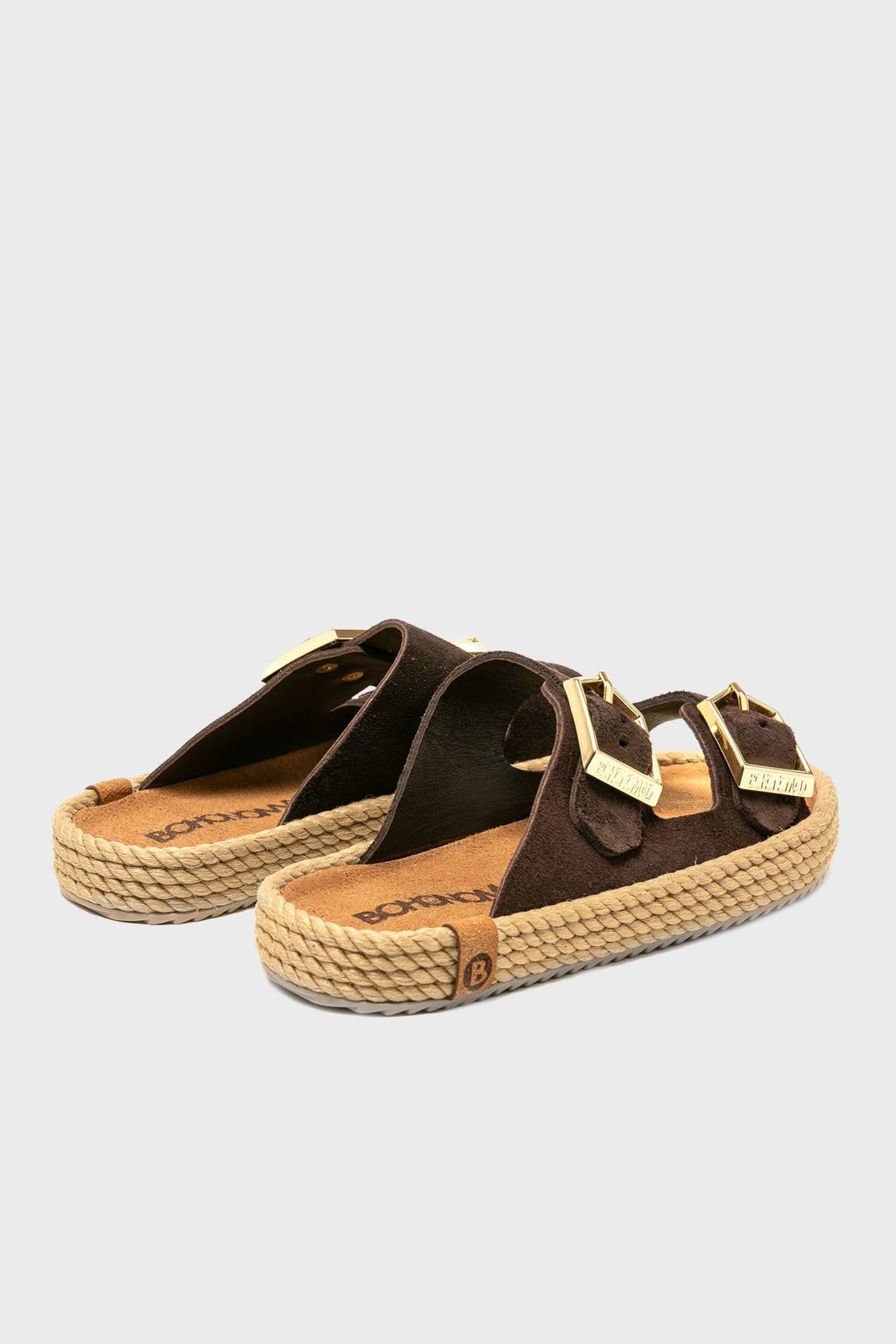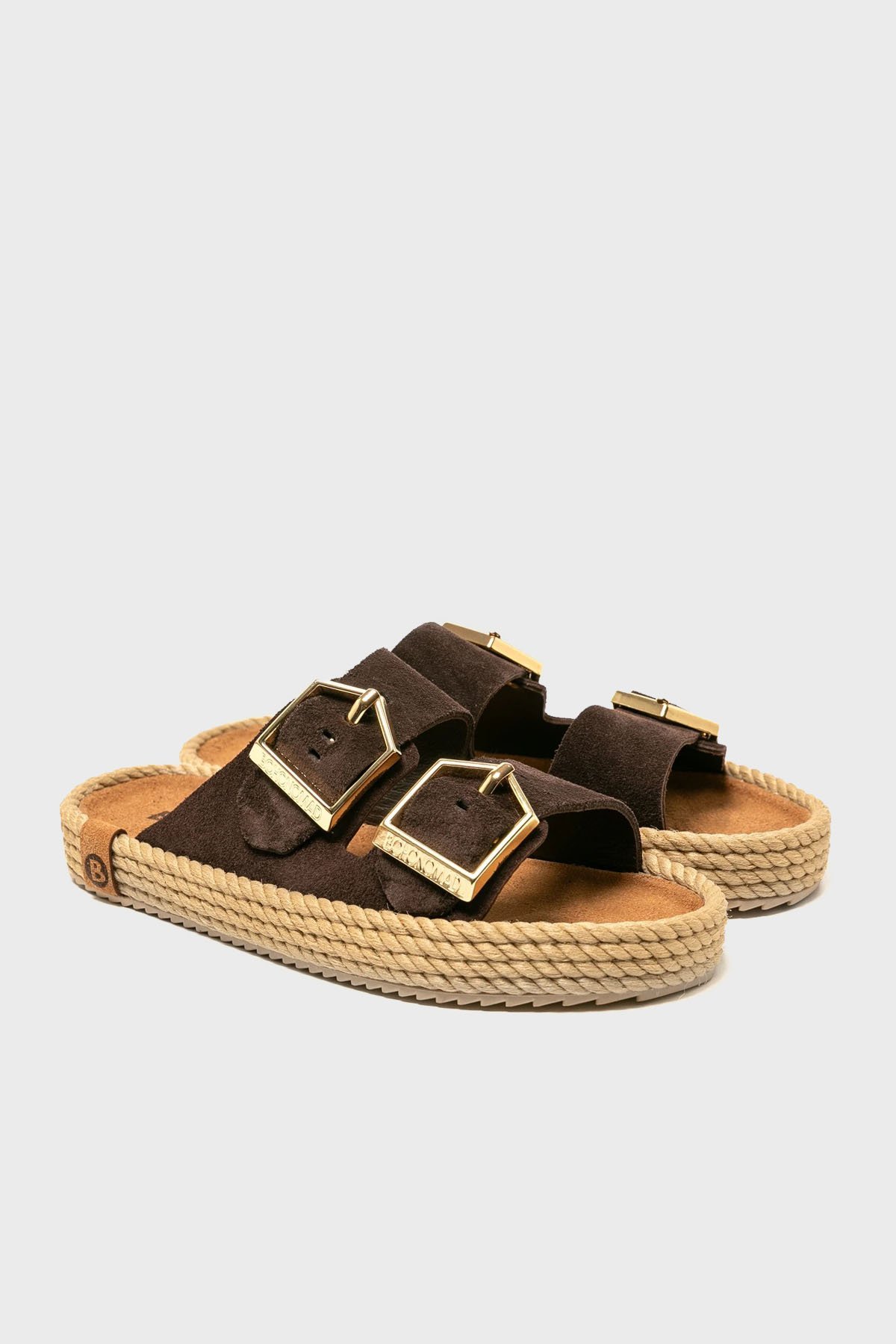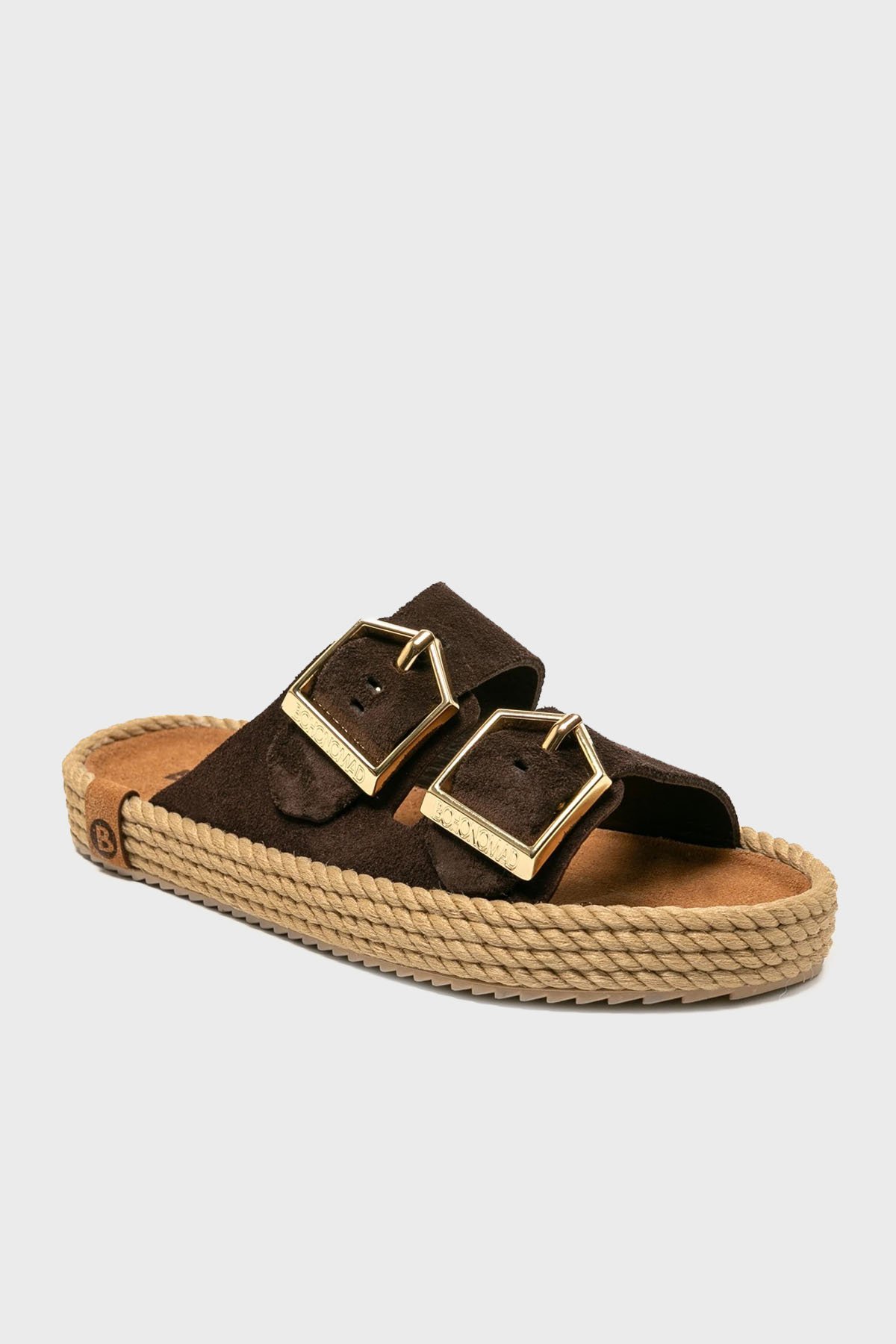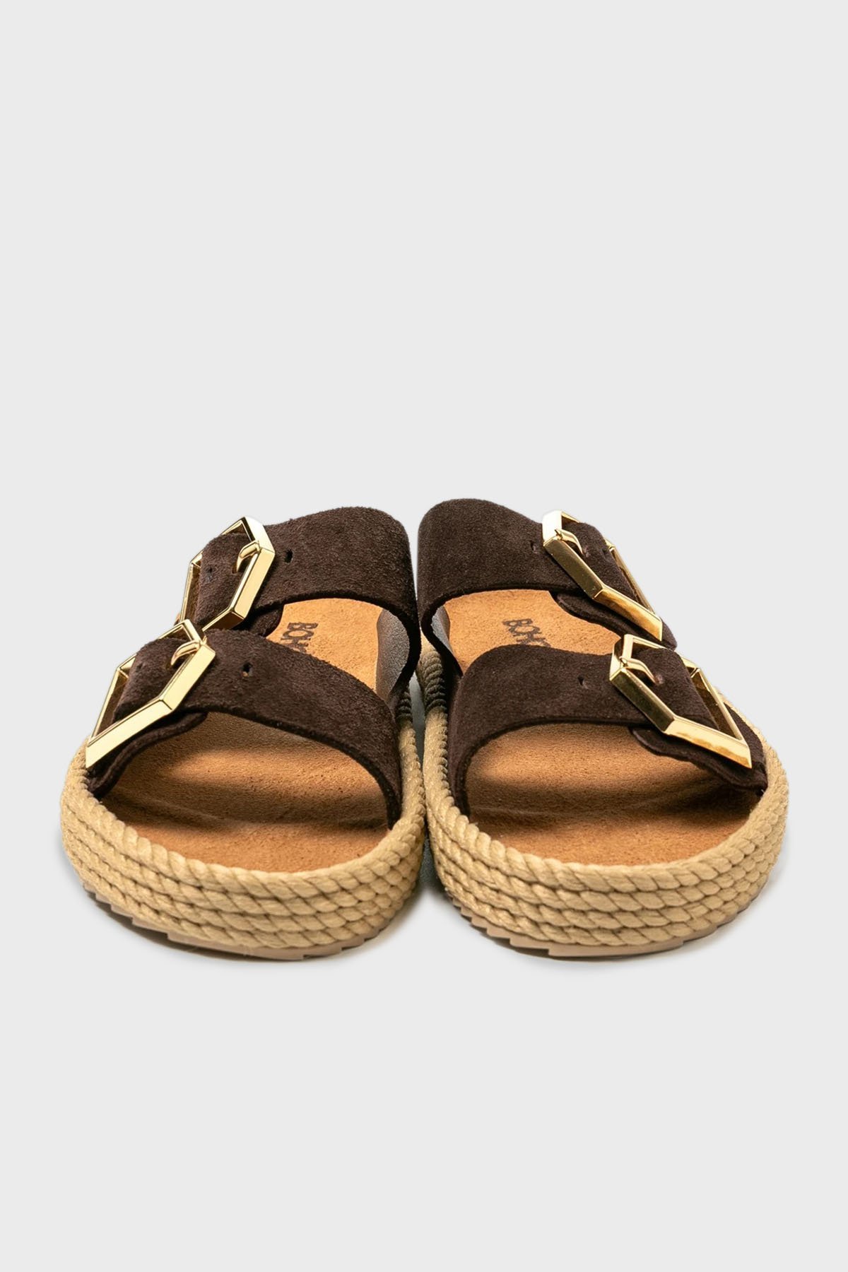Sydney Hasır Detaylı Çift Bantlı Tokalı Bayan Terlik SYD12-00019 KOYU KAHVE