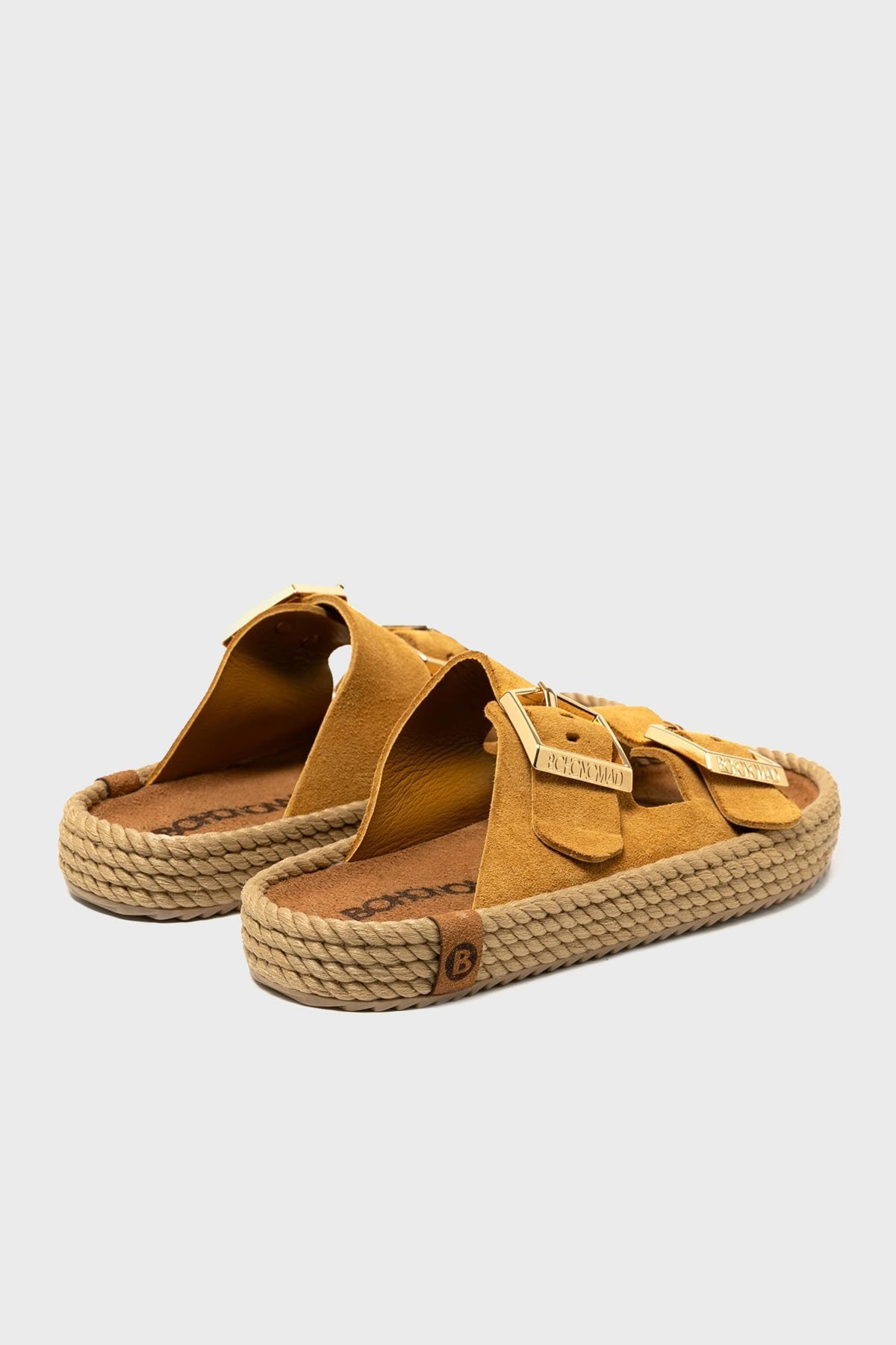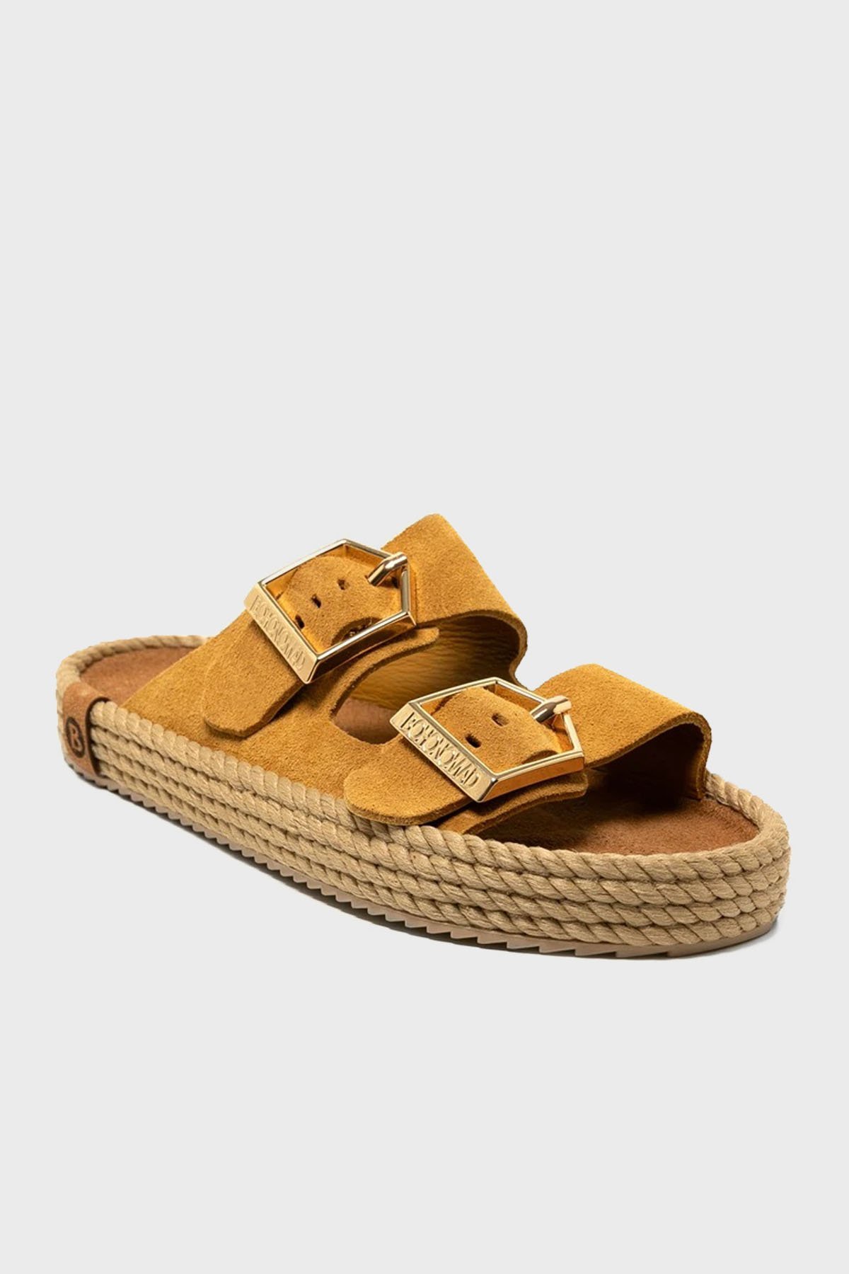 Sydney Hasır Detaylı Çift Bantlı Tokalı Bayan Terlik SYD12-00027 HARDAL