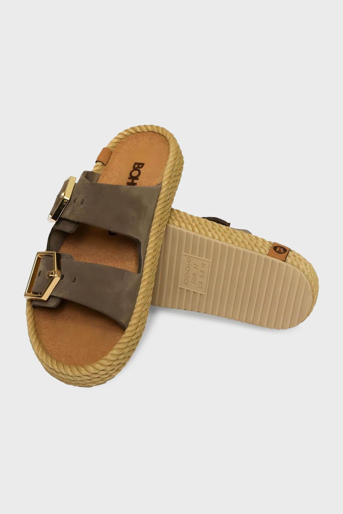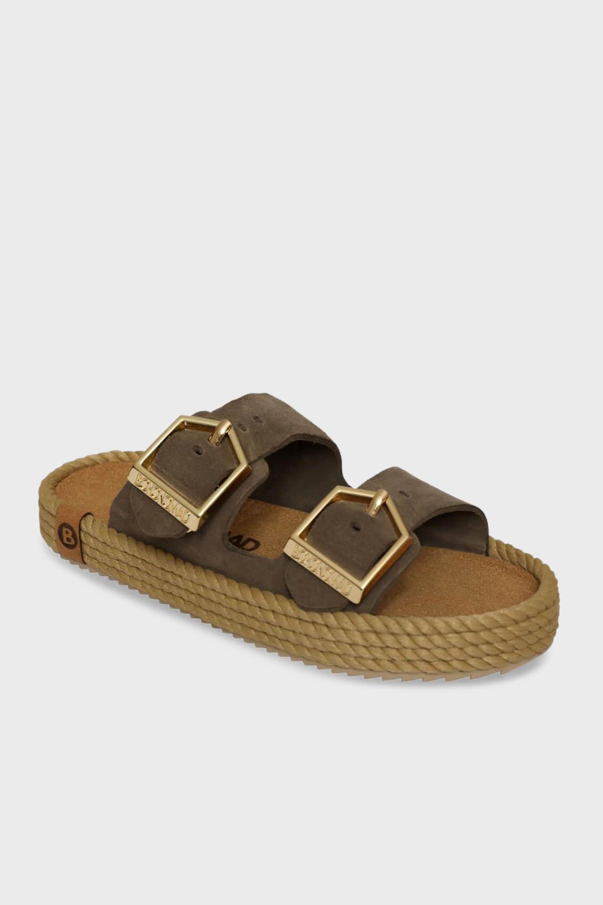 Sydney Hasır Detaylı Çift Bantlı Tokalı Bayan Terlik SYD12-00035 KOYU VİZON
