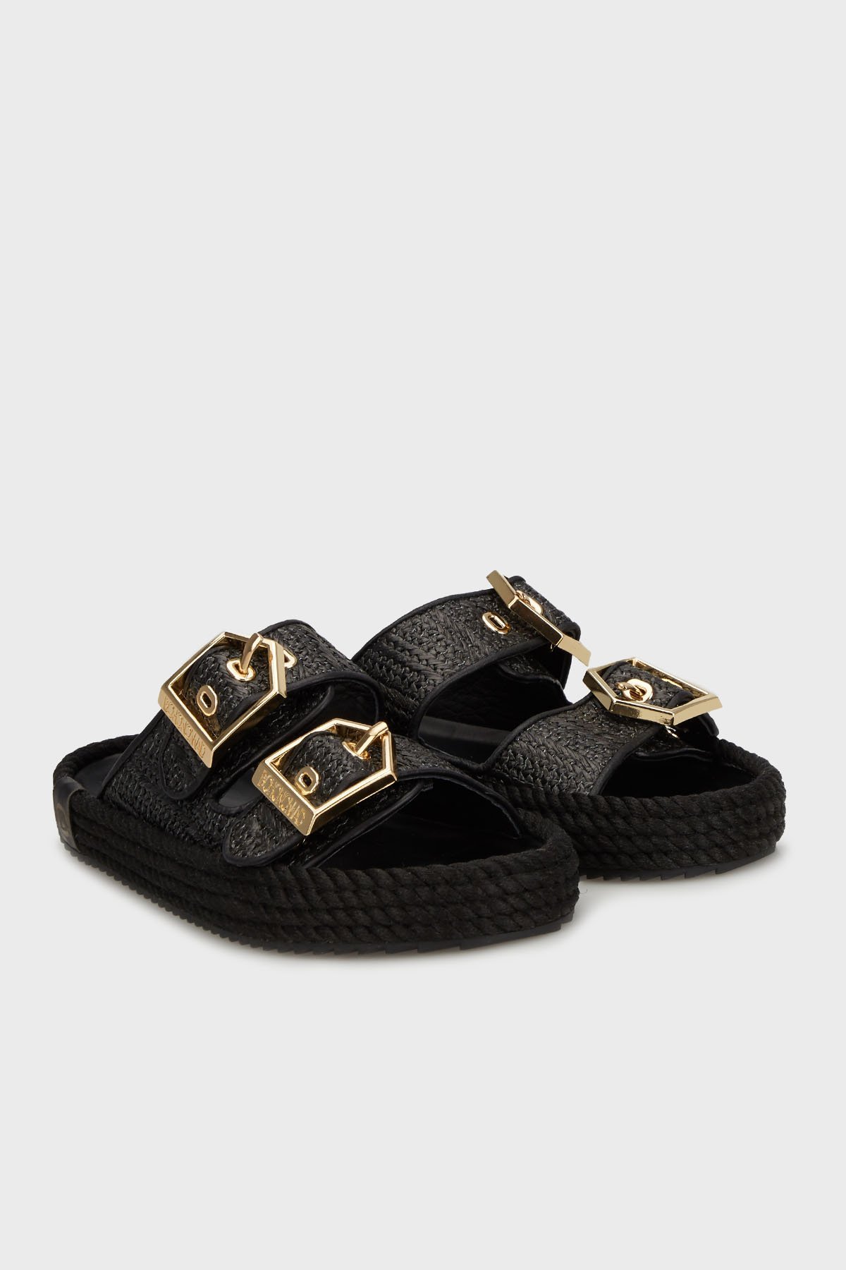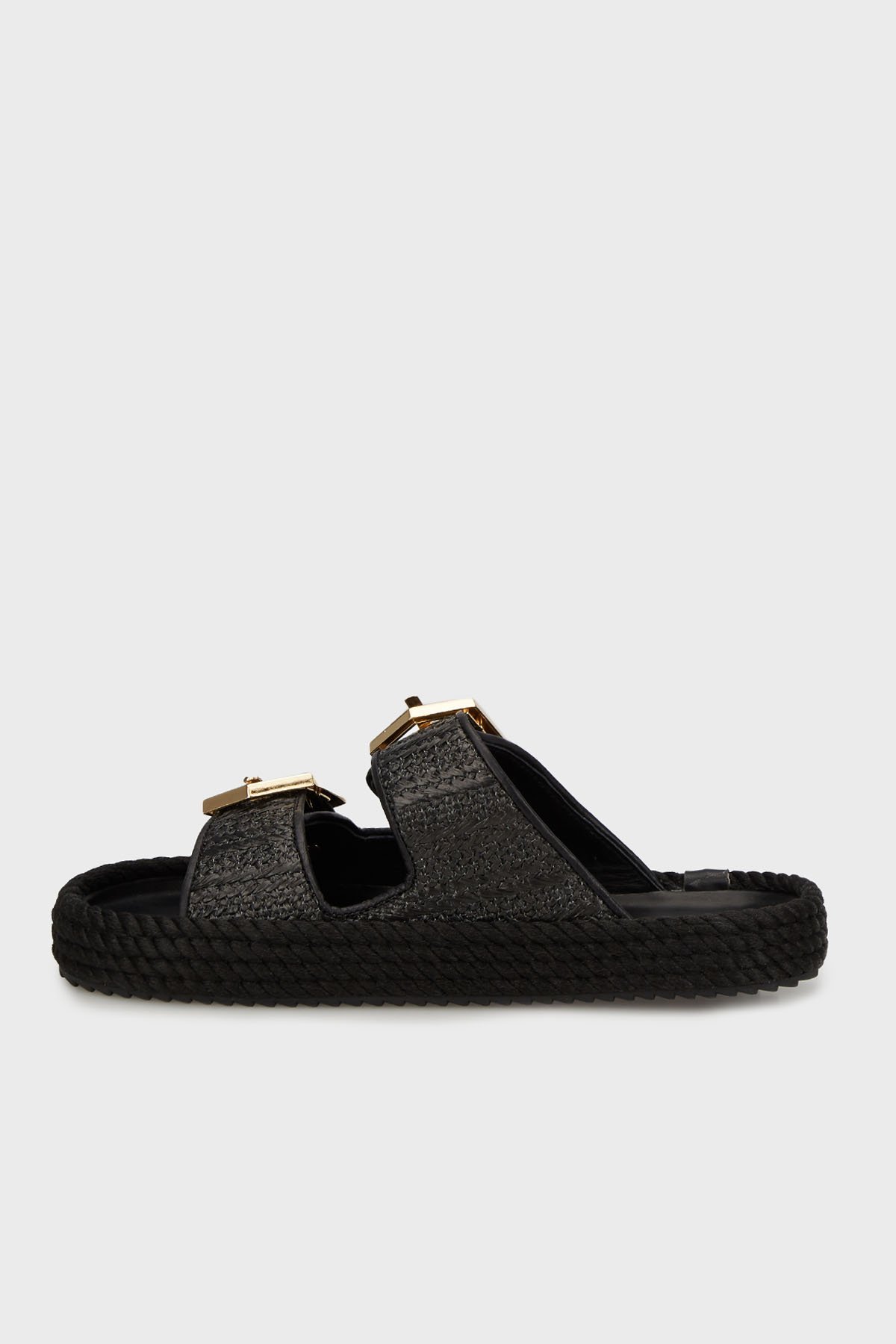 Sydney Logolu Hasır Detaylı Çift Bantlı Tokalı Bayan Terlik SYD20-00020 Hasır Siyah