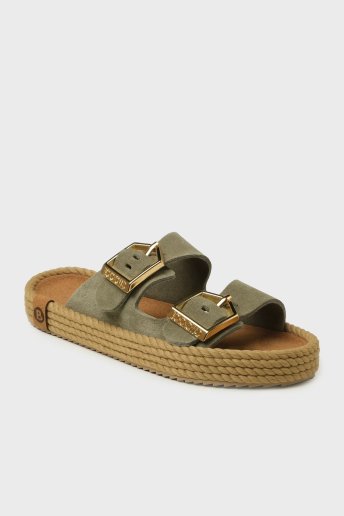 Sydney Süet Logolu Çift Bantlı Tokalı Bayan Terlik SYD12-00065 ÇAĞLA