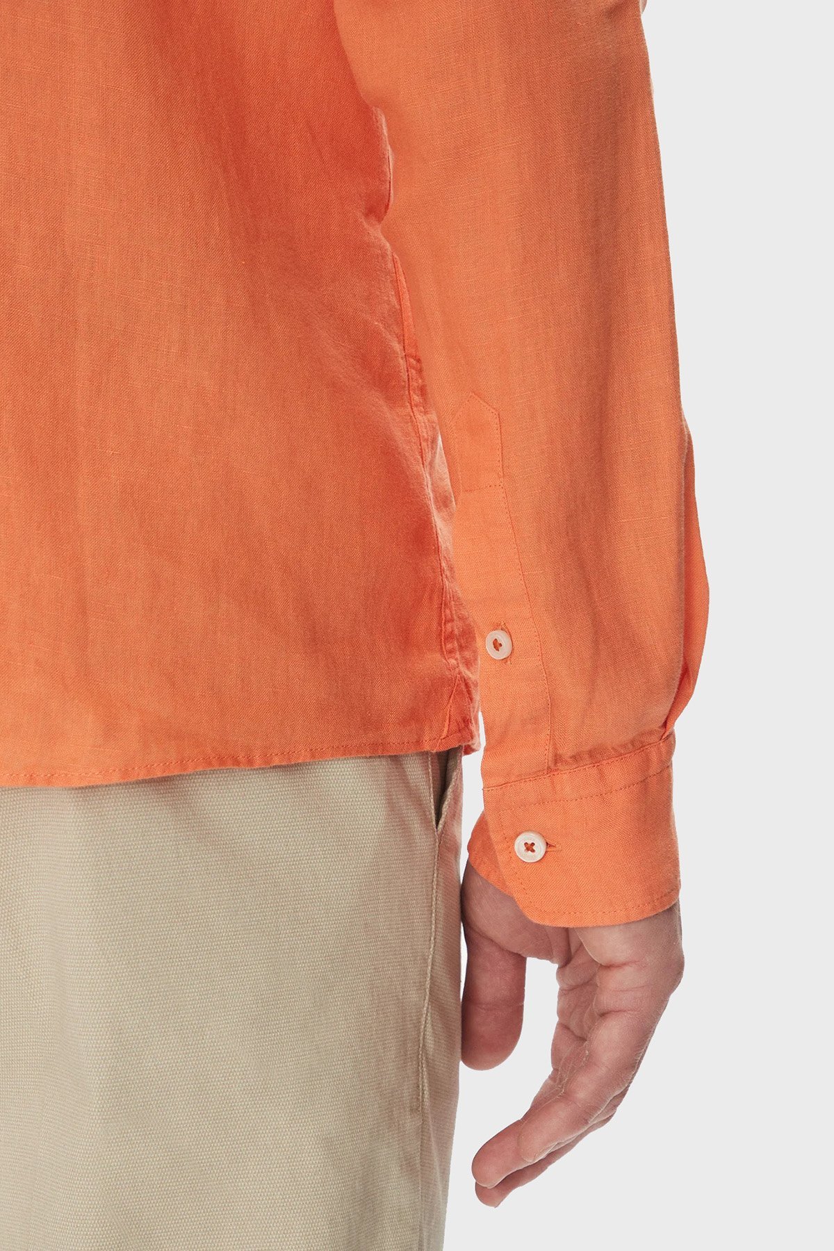 % 100 Keten Slim Fit Düğmeli Yaka Erkek Gömlek 50520283 823 TURUNCU