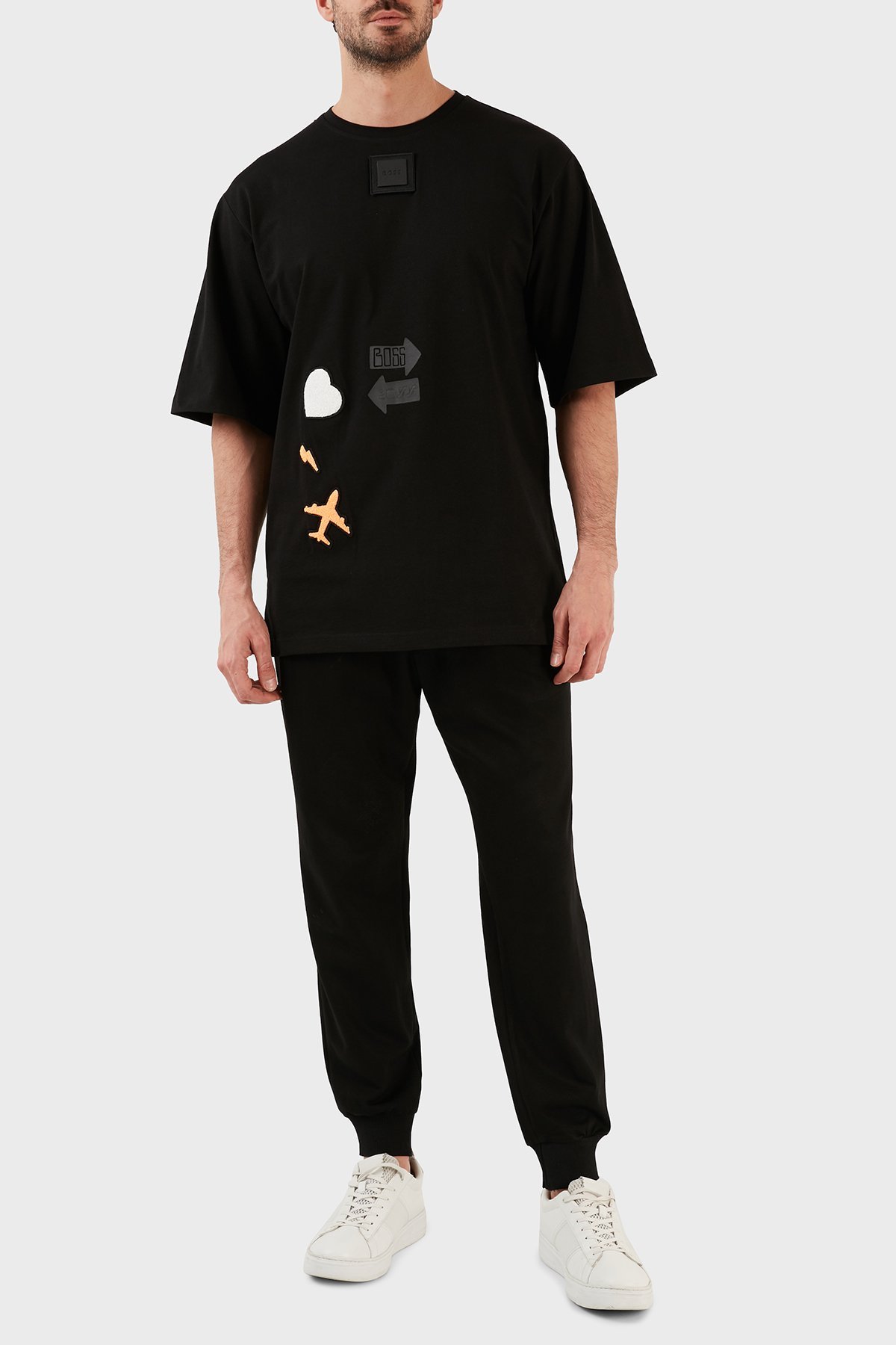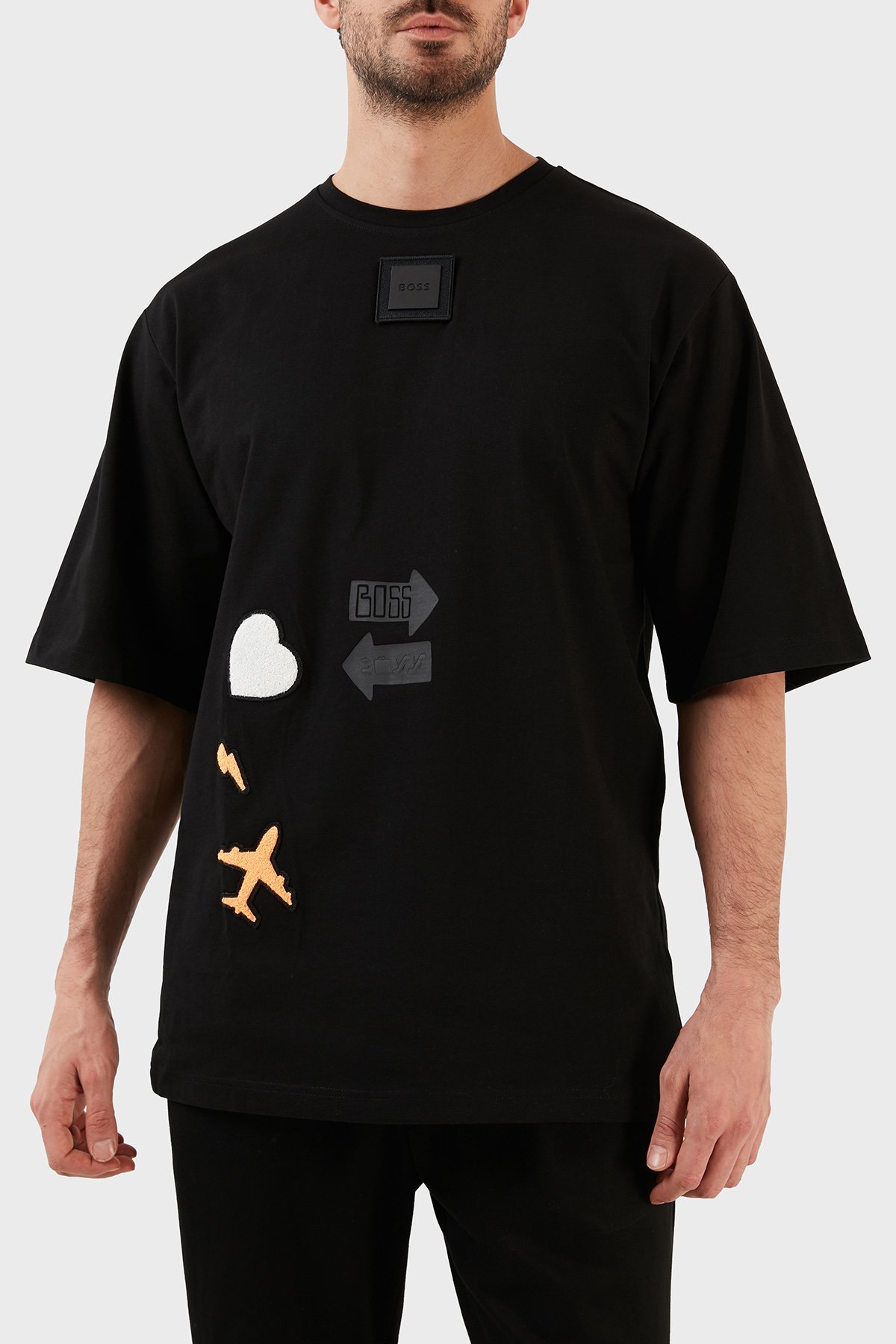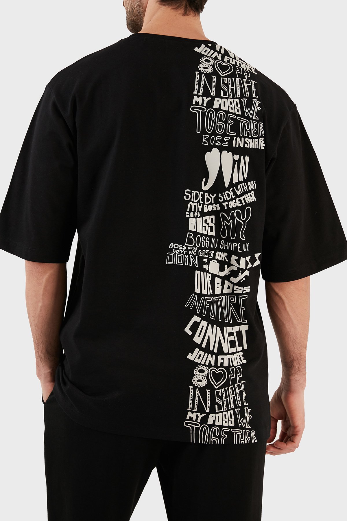 % 100 Pamuk Baskılı Oversize Fit Bisiklet Yaka Erkek T Shirt 50477621 001 SİYAH