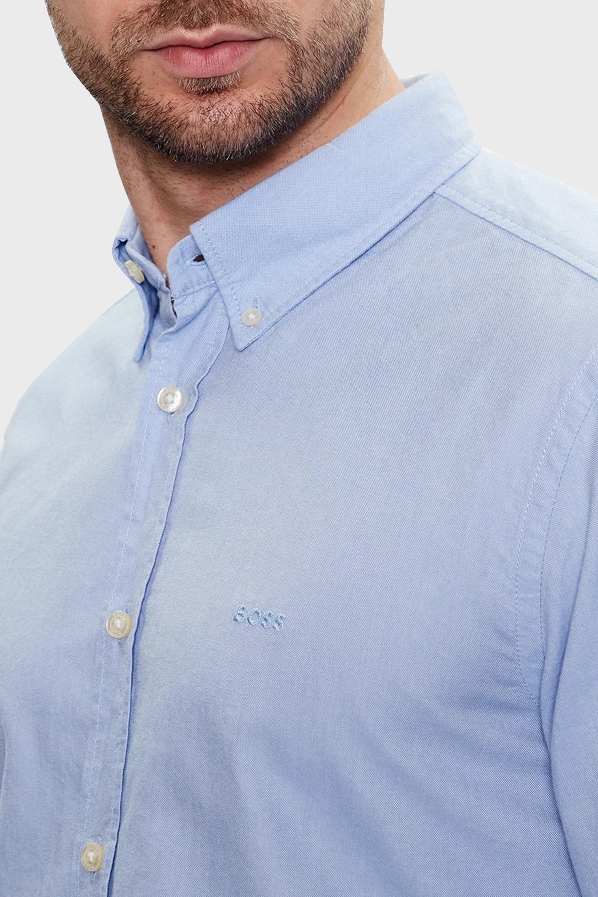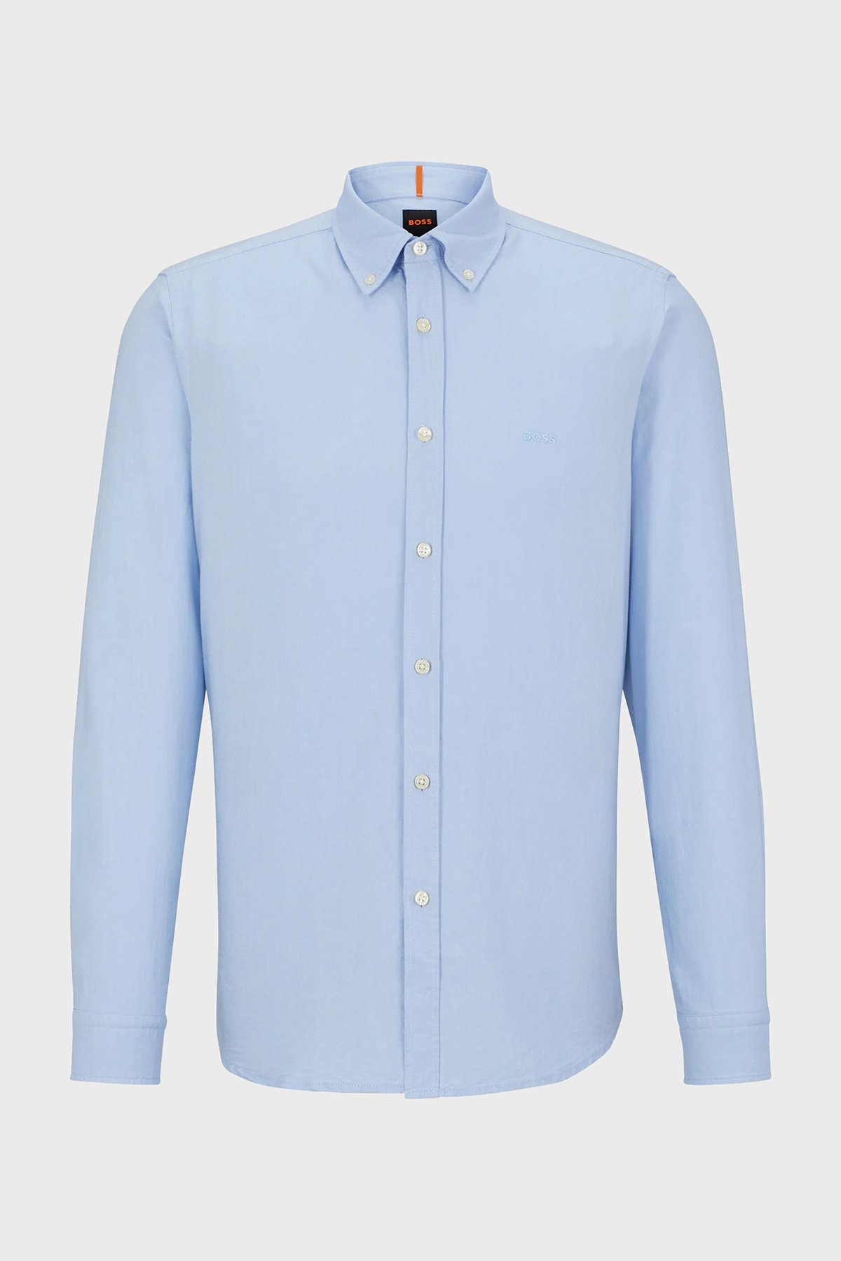 % 100 Pamuk Regular Fit Düğmeli Yaka Erkek Gömlek 50489341 460 MAVİ