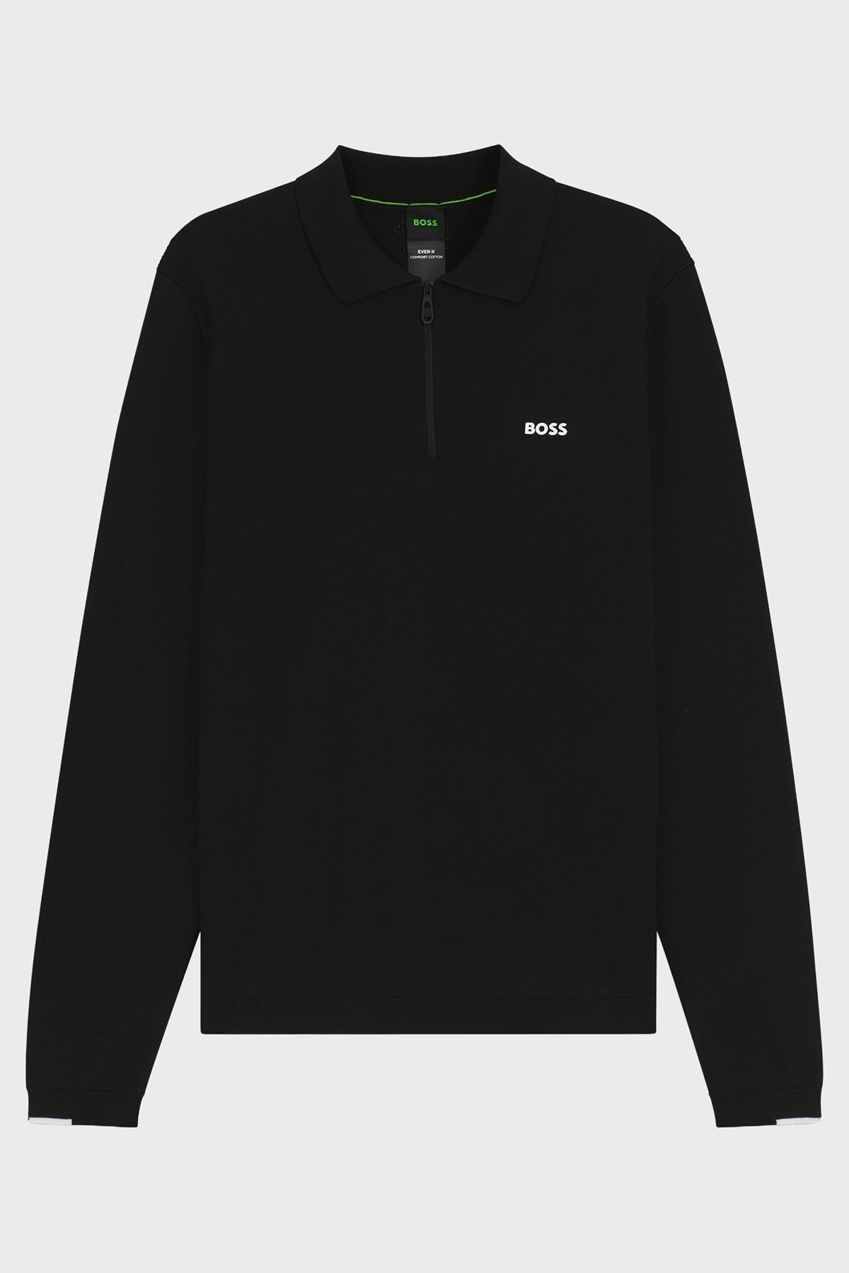 % 100 Pamuk Regular Fit Yarm Fermuarlı Erkek Polo Yaka Kazak 50551688 001 SİYAH