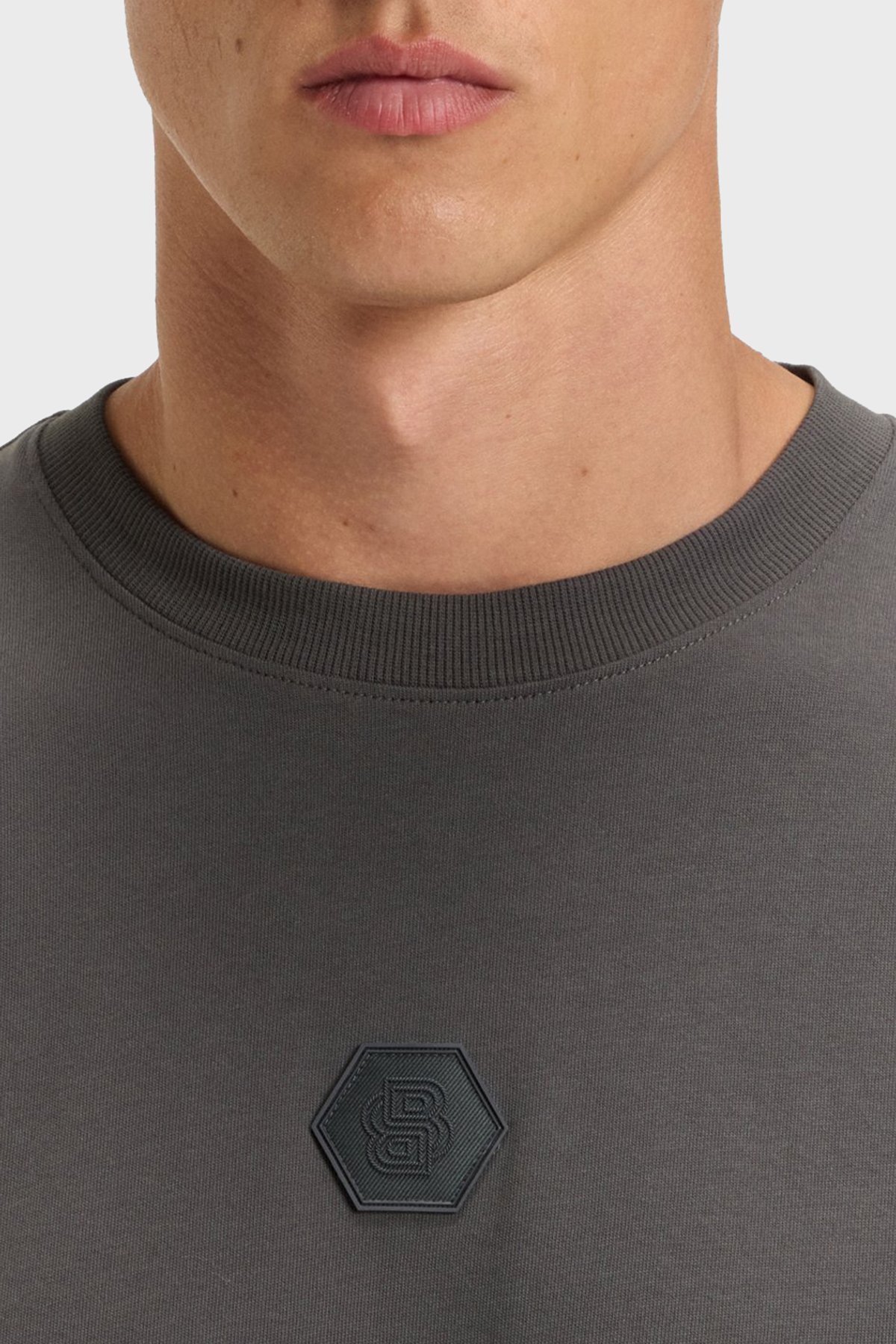 % 100 Pamuk Relaxed Fit Bisiklet Yaka Logolu Erkek T Shirt 50544316 027 KOYU GRİ