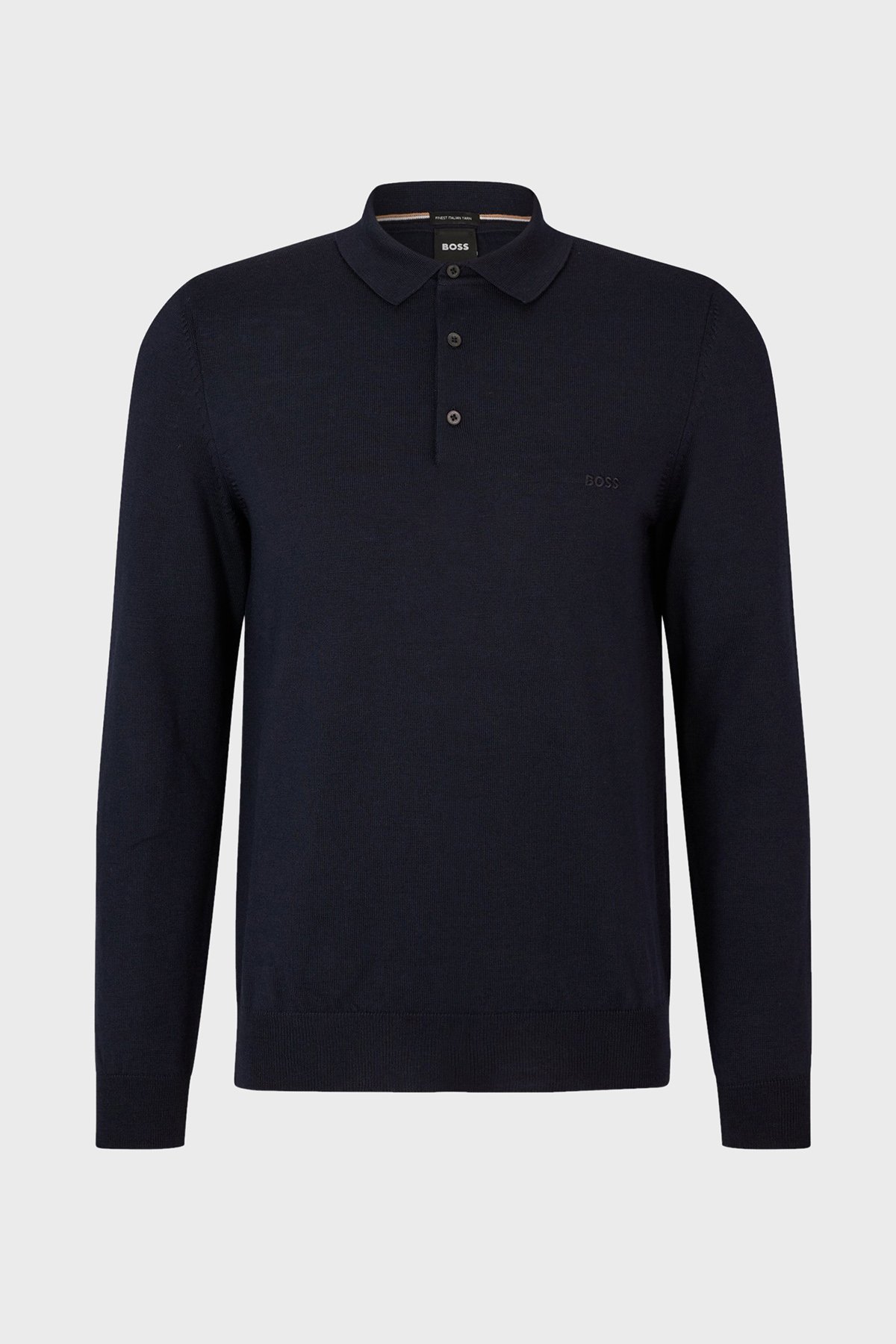 % 100 Yün Regular Fit Düğmeli Erkek Polo Yaka Kazak 50476357 404 LACİVERT