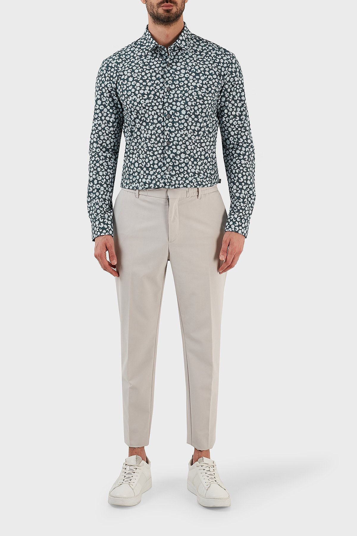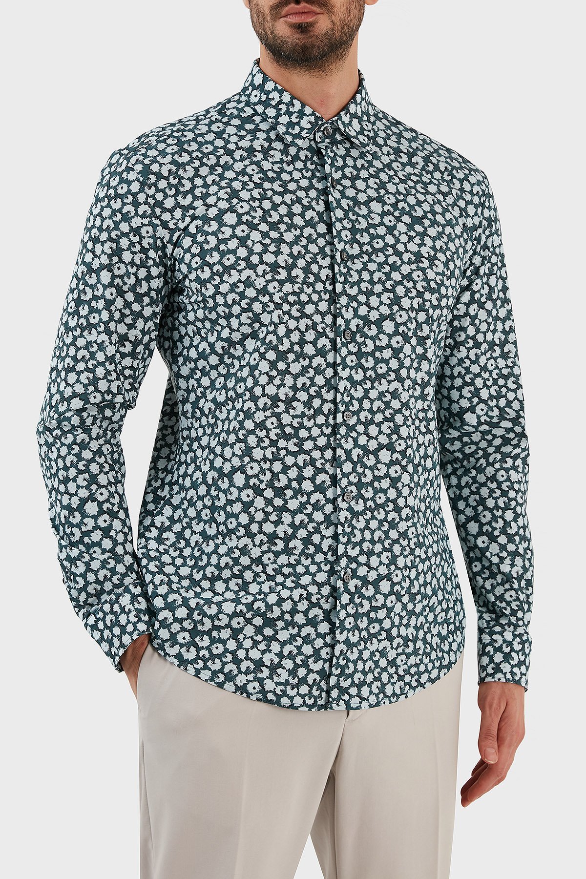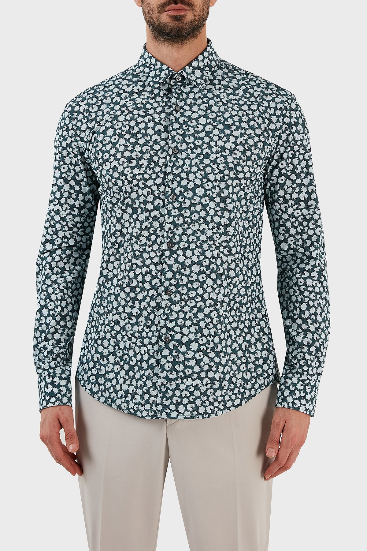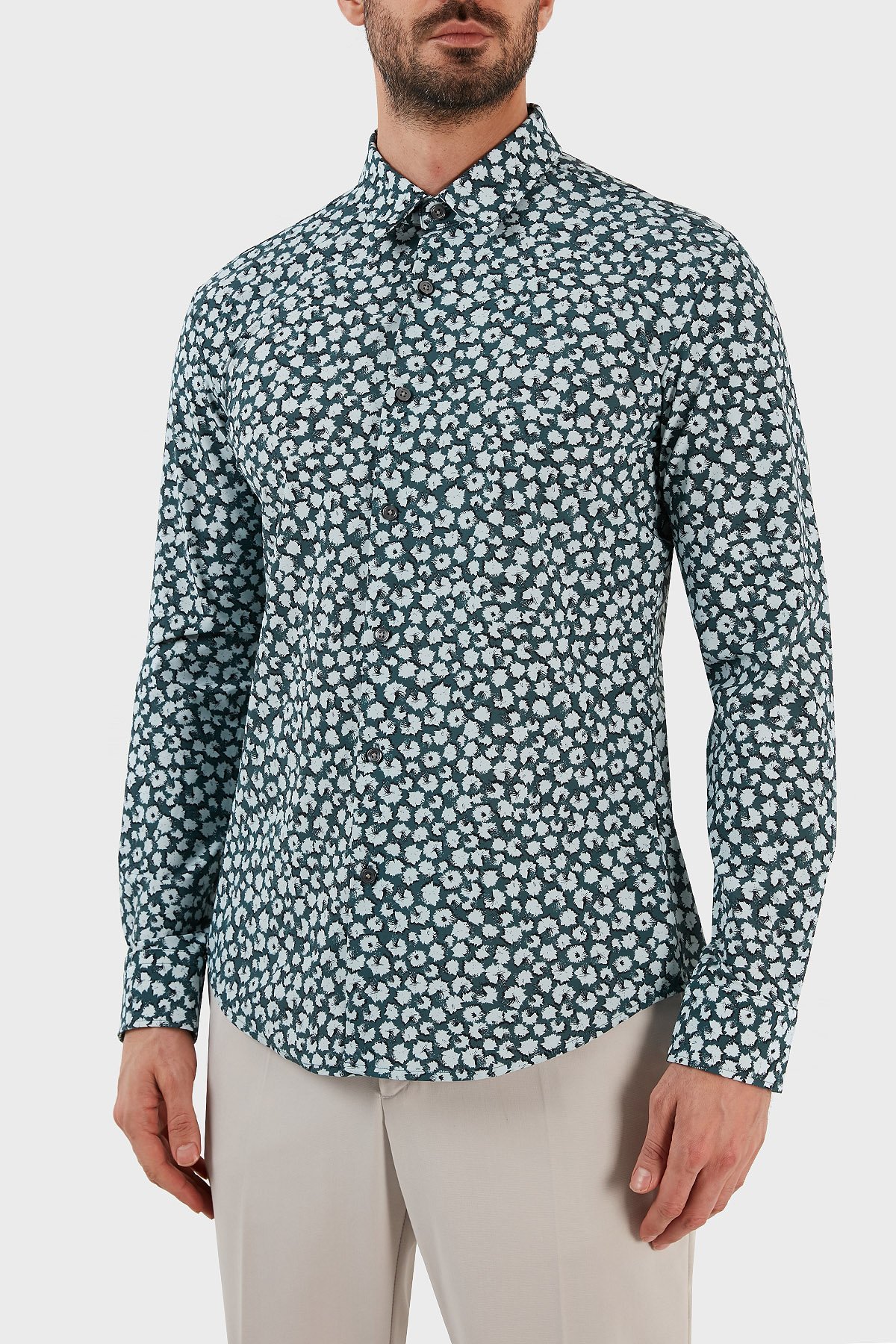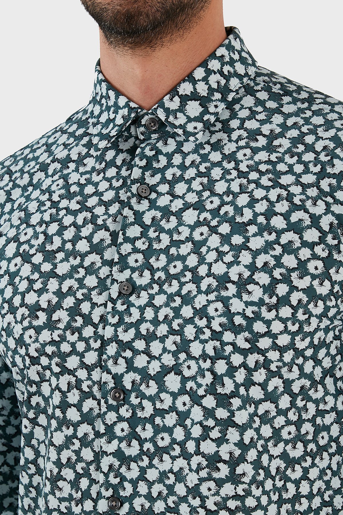 Baskılı Streç Jarseden Dar Kesim Erkek Gömlek 50483716 457 MAVİ