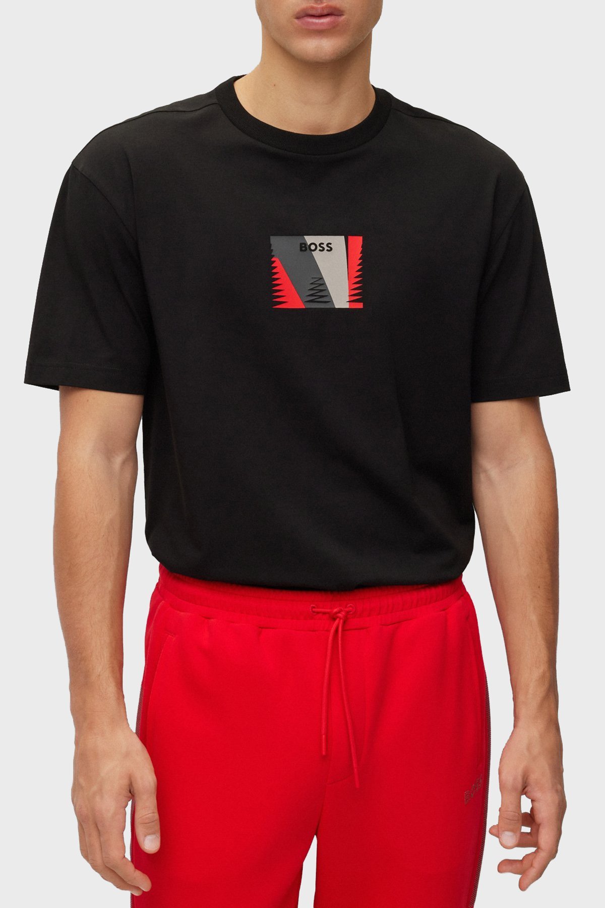 Baskılı Streç Pamuklu Bisiklet Yaka Relaxed Fit Erkek T Shirt 50483771 001 SİYAH