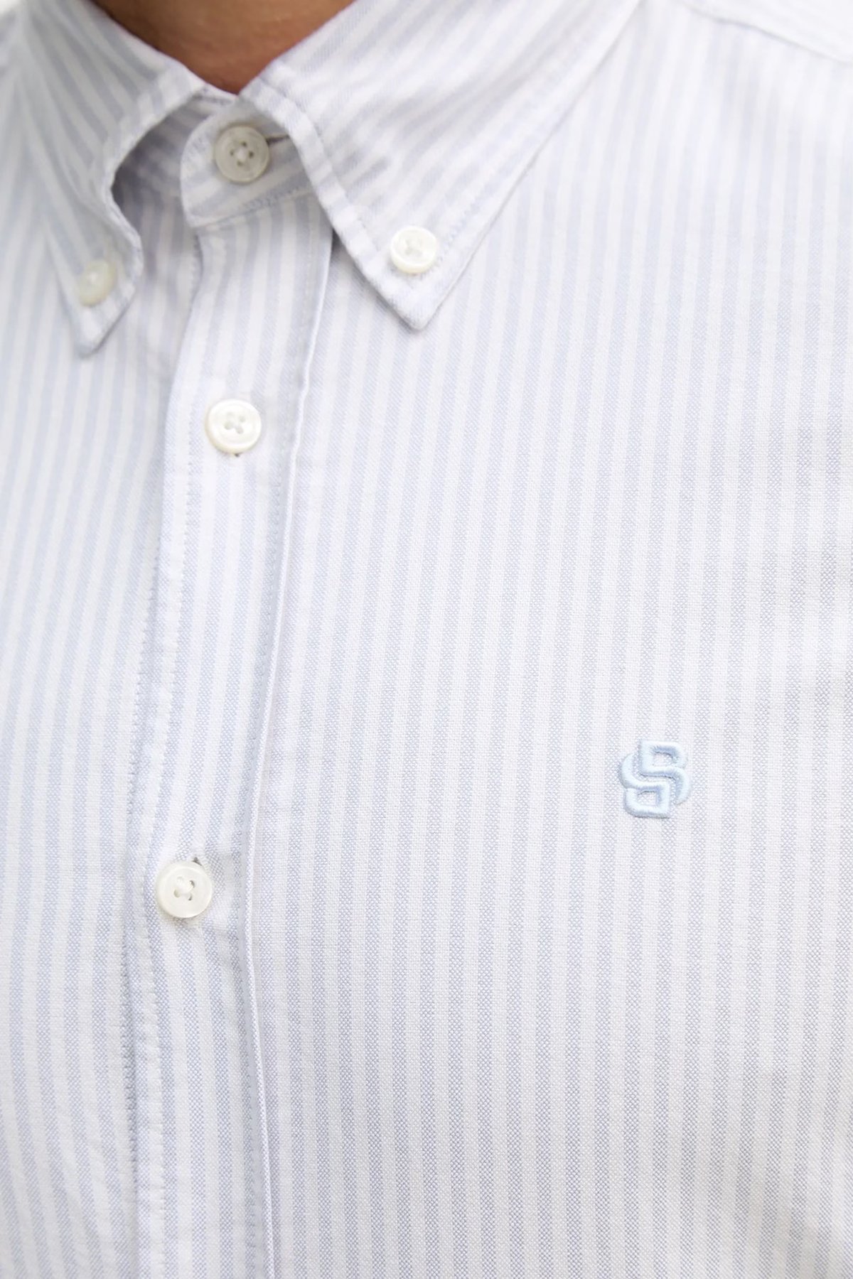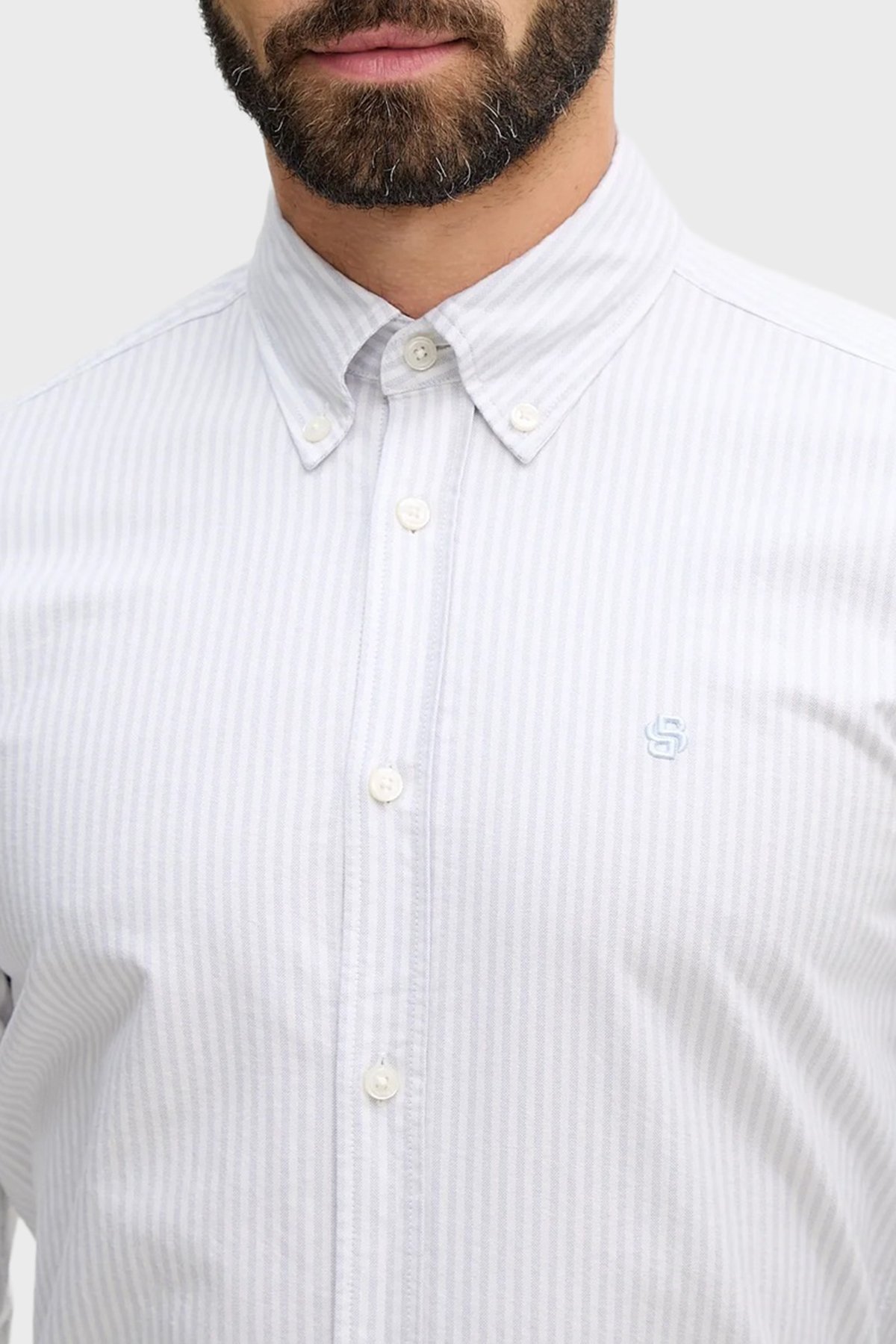 Çizgili % 100 Pamuk Düğmeli Yaka Uzun Kollu Erkek Gömlek 50556069 531 MAVİ-BEYAZ
