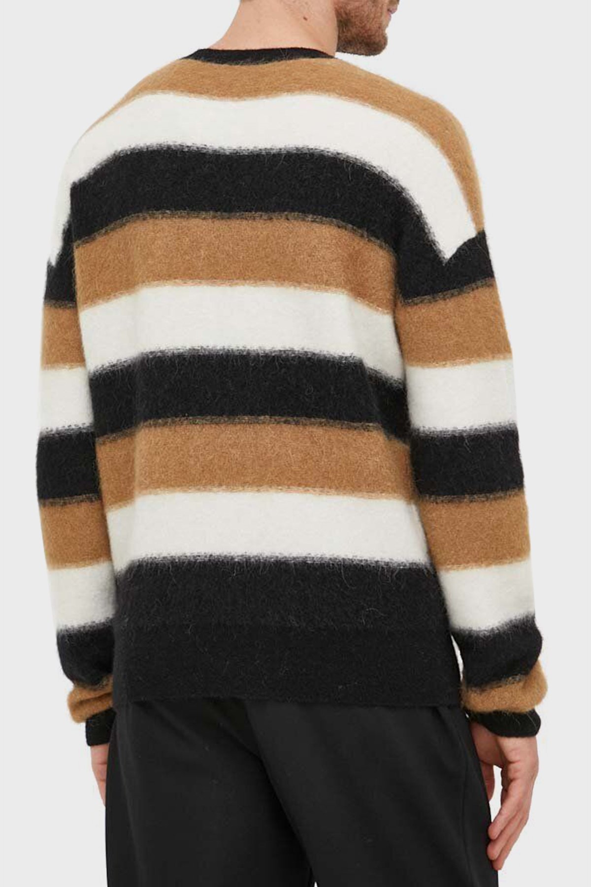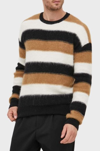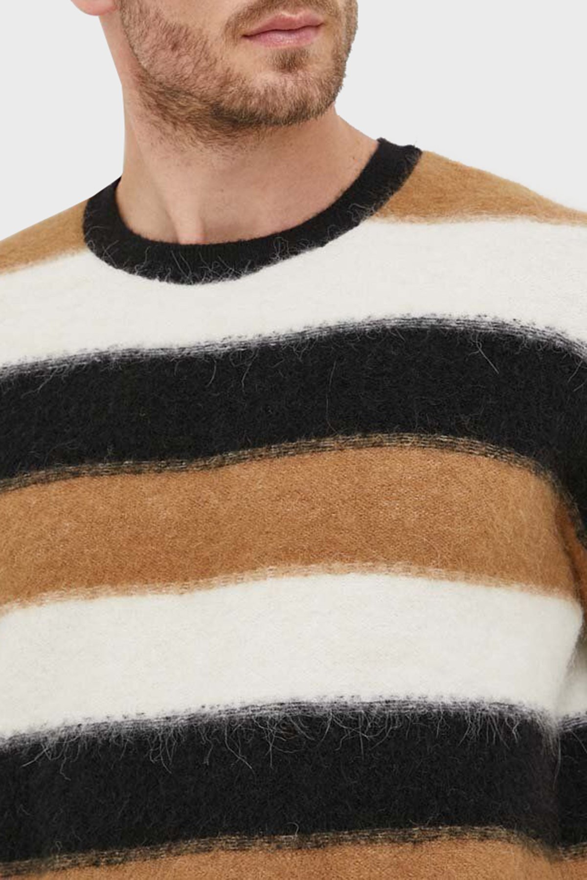 Çizgili Bisiklet Yaka Yün Karışımlı Regular Fit Erkek Kazak 50500683 001 Siyah-Beyaz-Taba