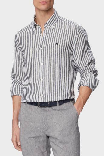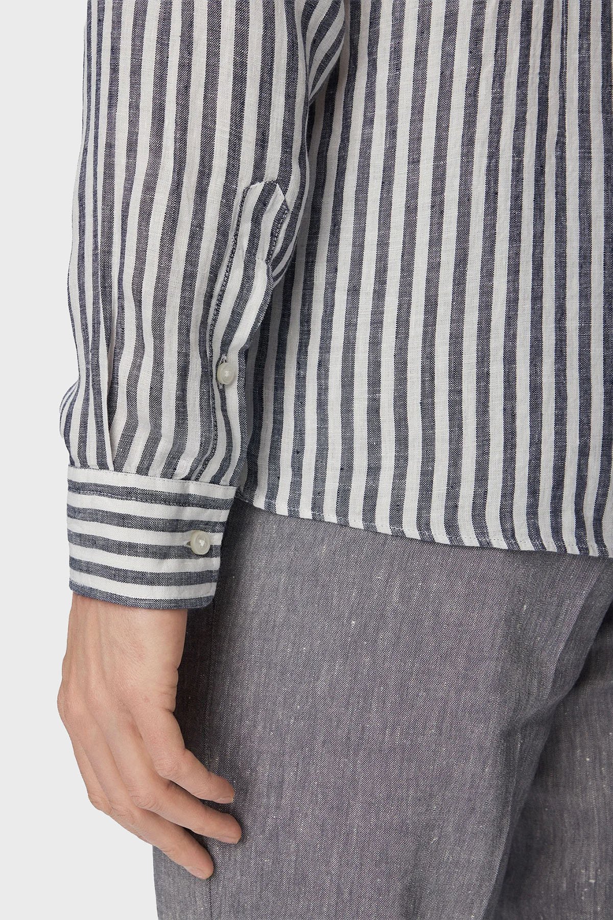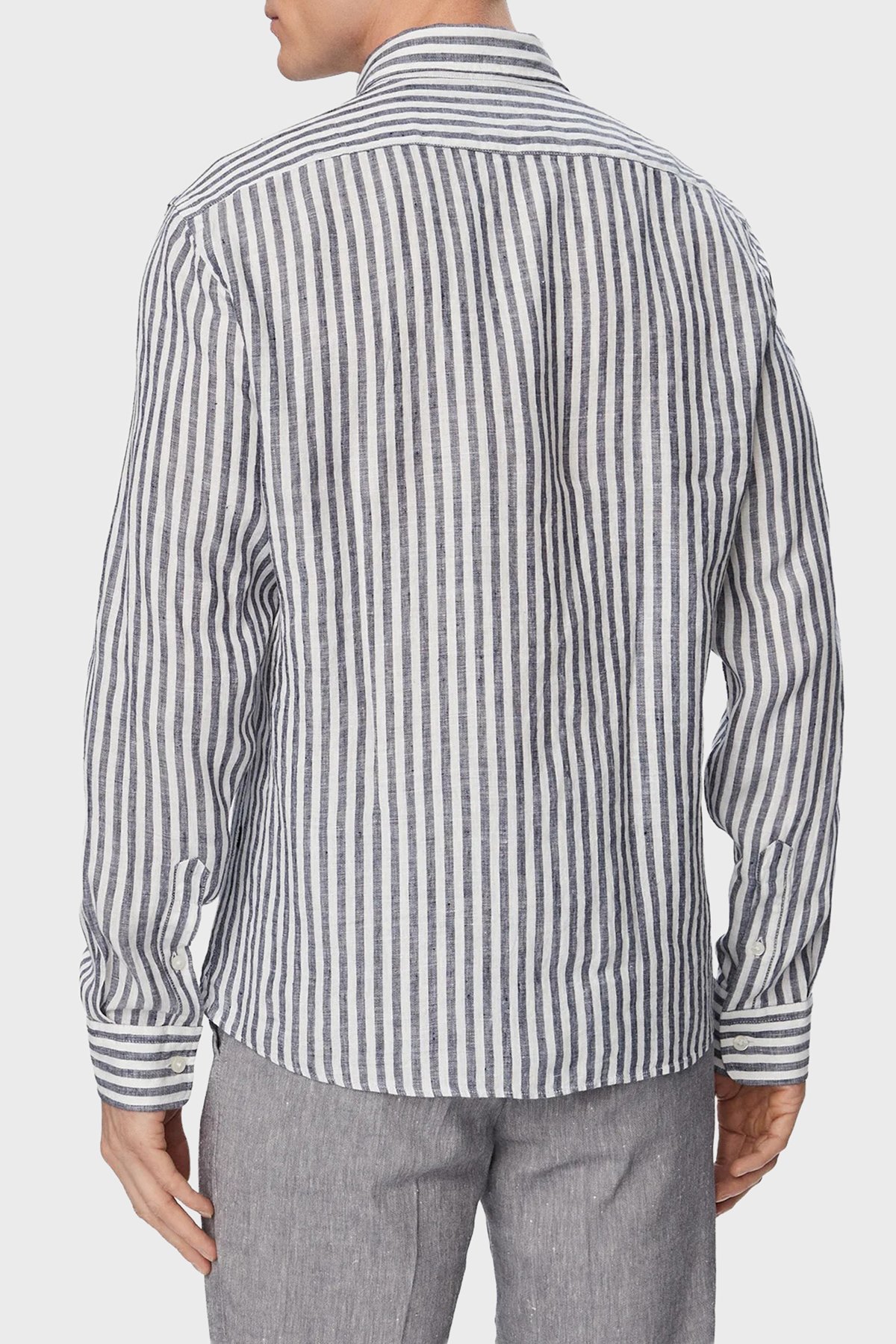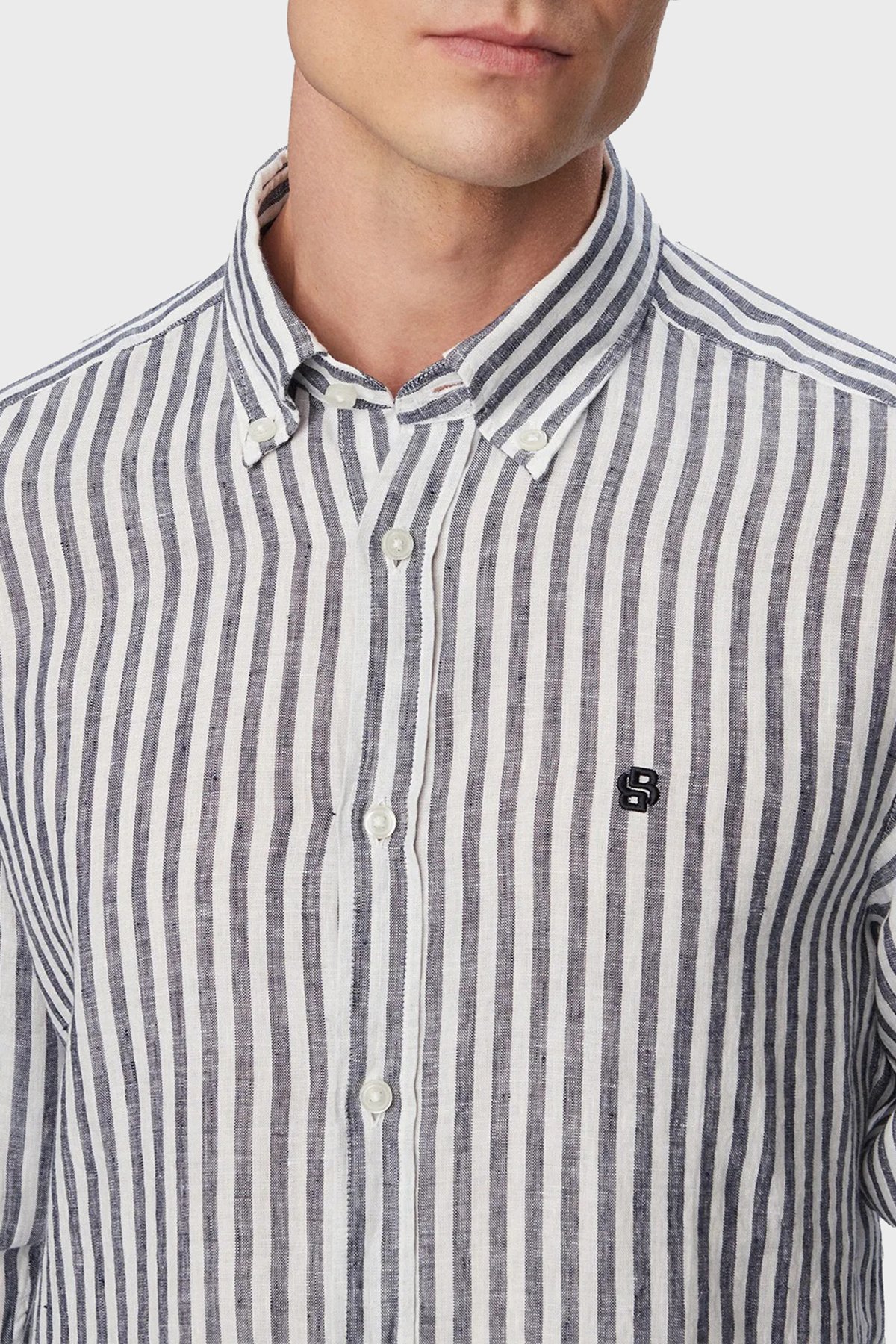 Çizgili Regular Fit Klasik Yaka Uzun Kollu Keten Erkek Gömlek 50560595 404 LACİVERT