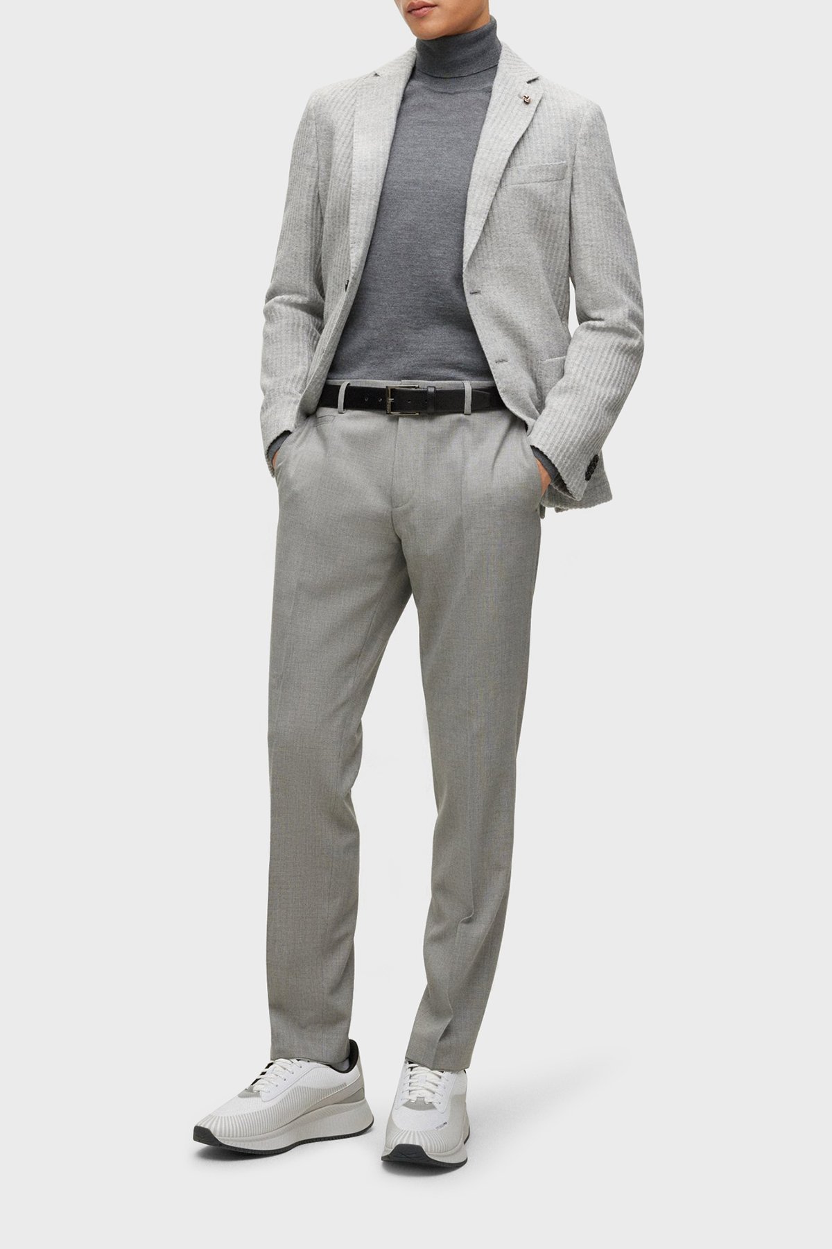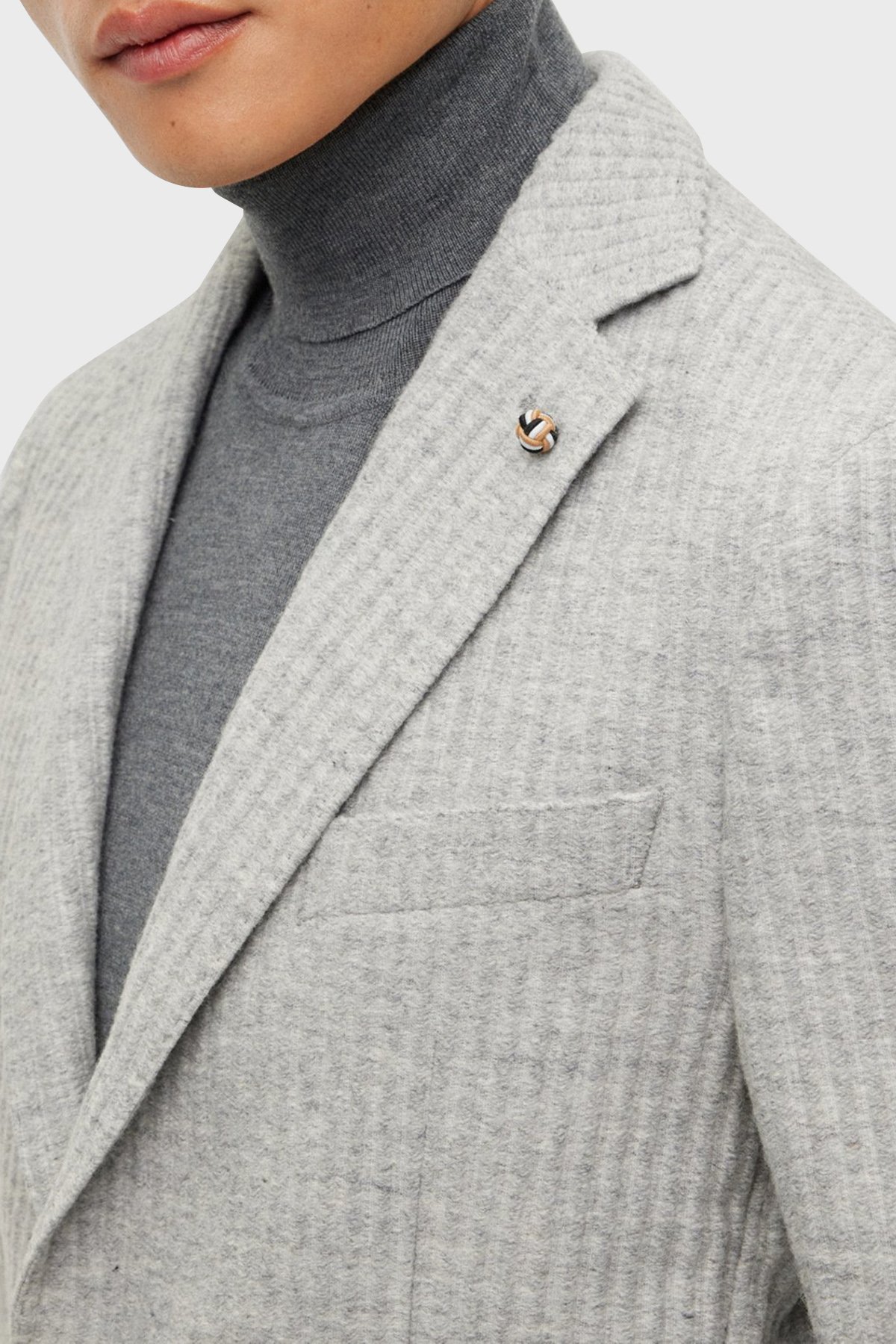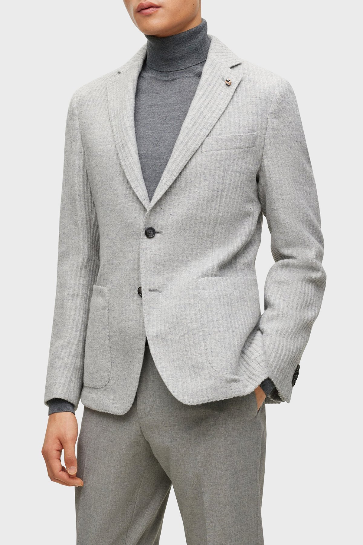 Çizgili Yün Karışımlı Slim Fit Erkek Ceket 50502677 041 GRİ