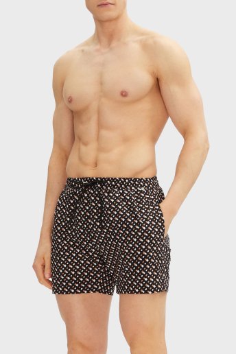 Deniz Şortu Monogram Baskılı Tamamı Astarlı Hızlı Kuruyan Erkek Mayo Short 50515720 001 SİYAH