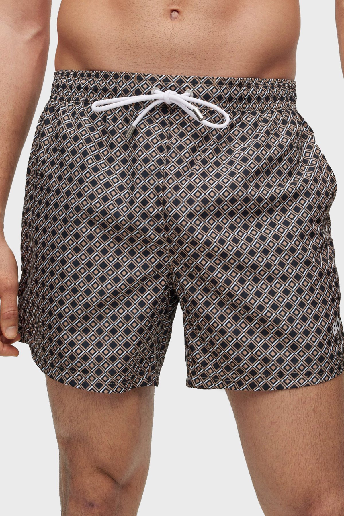 Desenli Deniz Şortu Belden Bağlamalı Cepli Erkek Mayo Short 50491580 260 BEJ