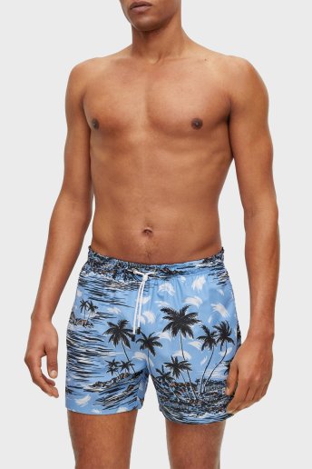 Desenli Deniz Şortu Çabuk Kuruyan Erkek Mayo Short 50469489 492 MAVİ