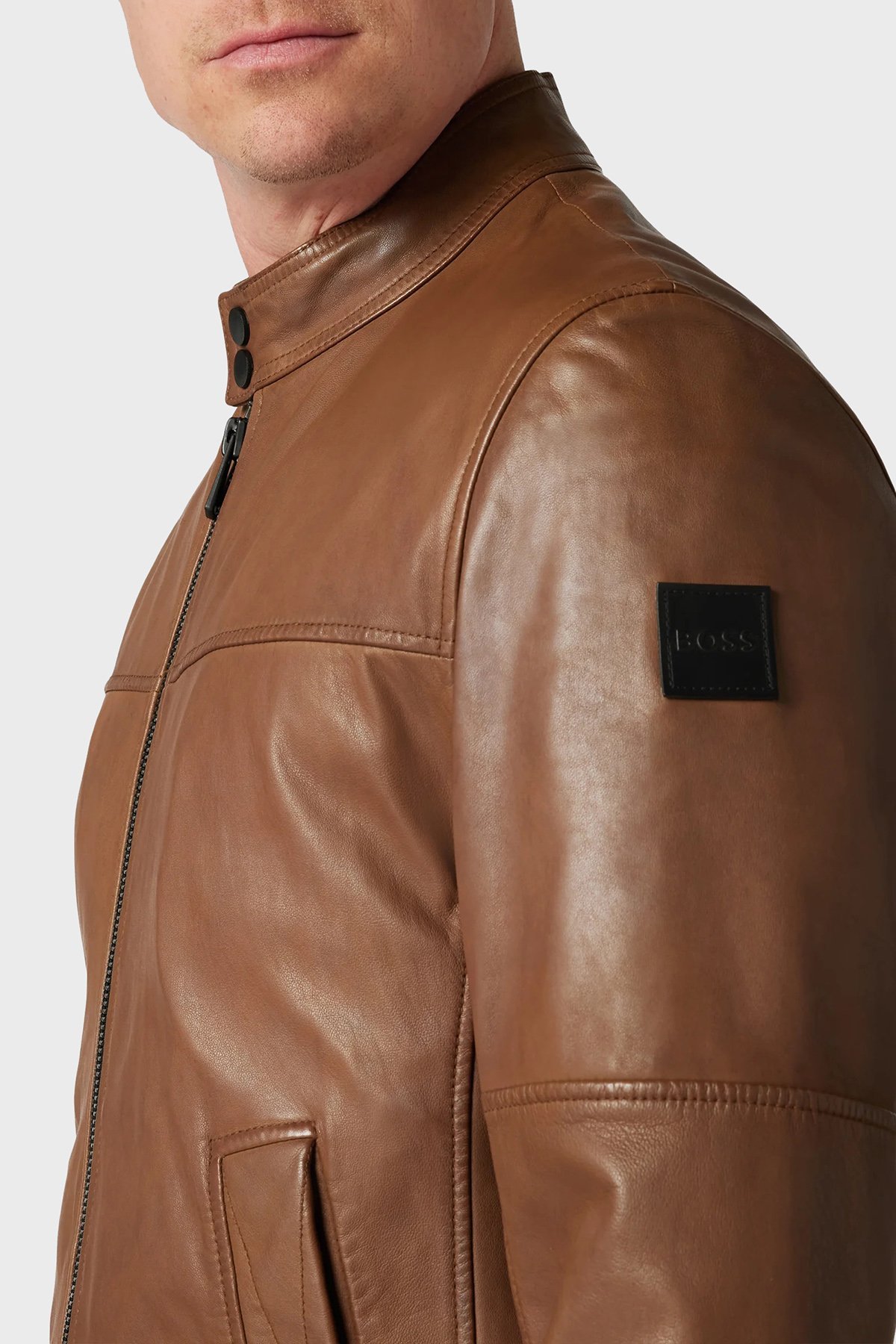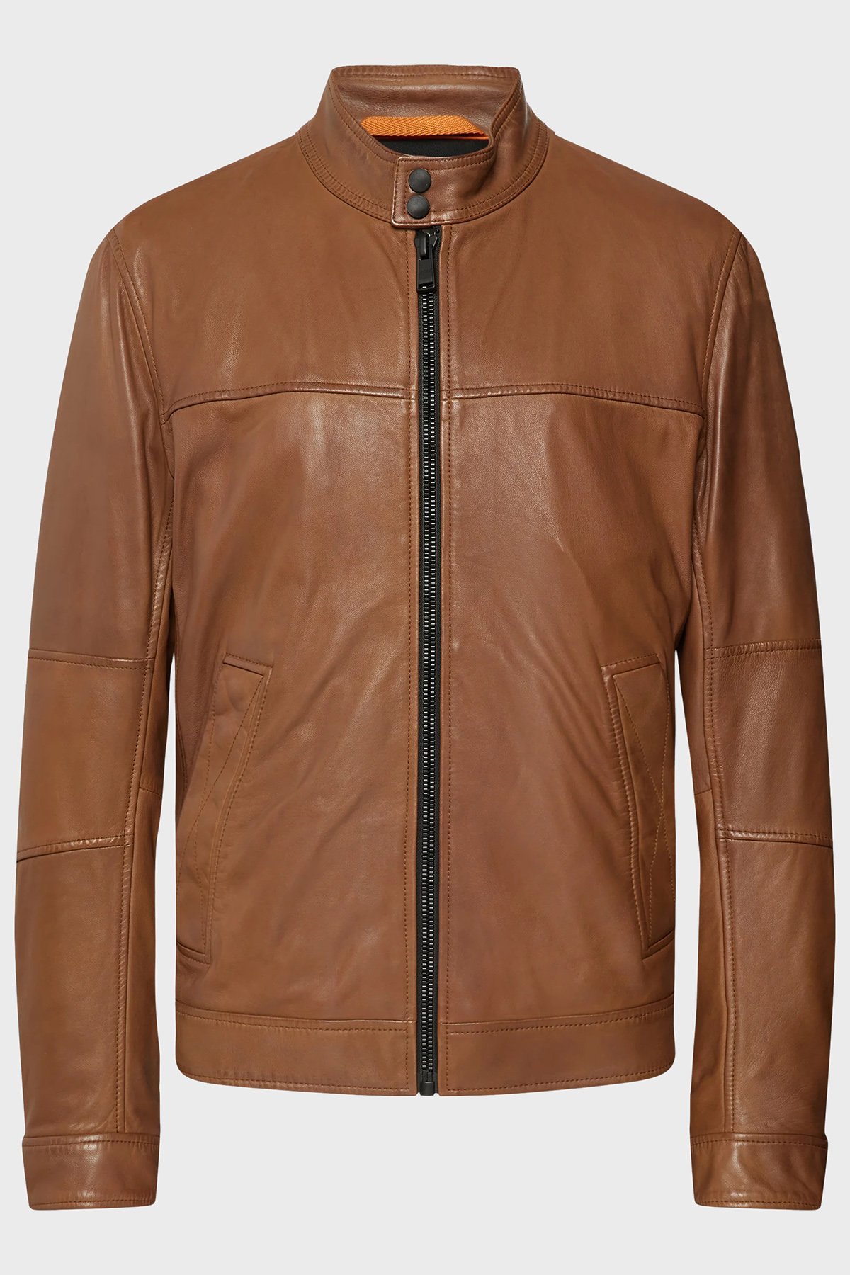 Dik Yaka Fermuarlı Cepli Regular Fit Erkek Deri Ceket 50482227 217 KAHVE