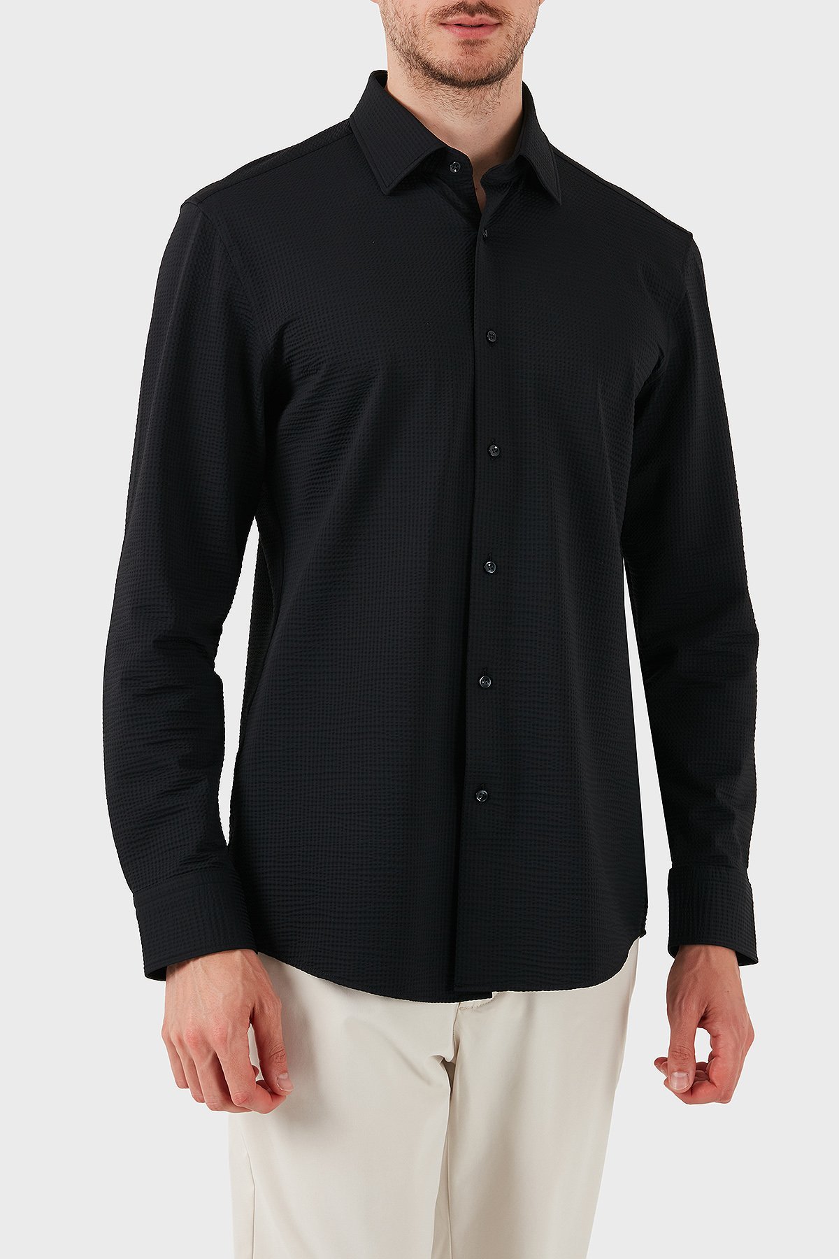 Dokulu Slim Fit Uzun Kollu Erkek Gömlek 50539858 001 SİYAH