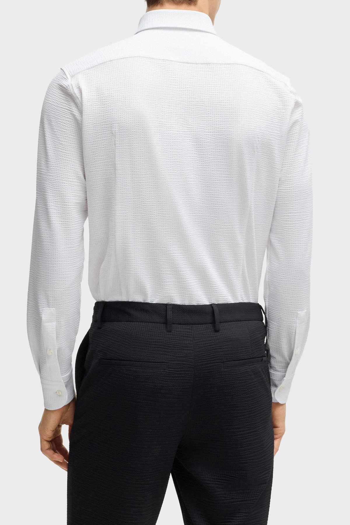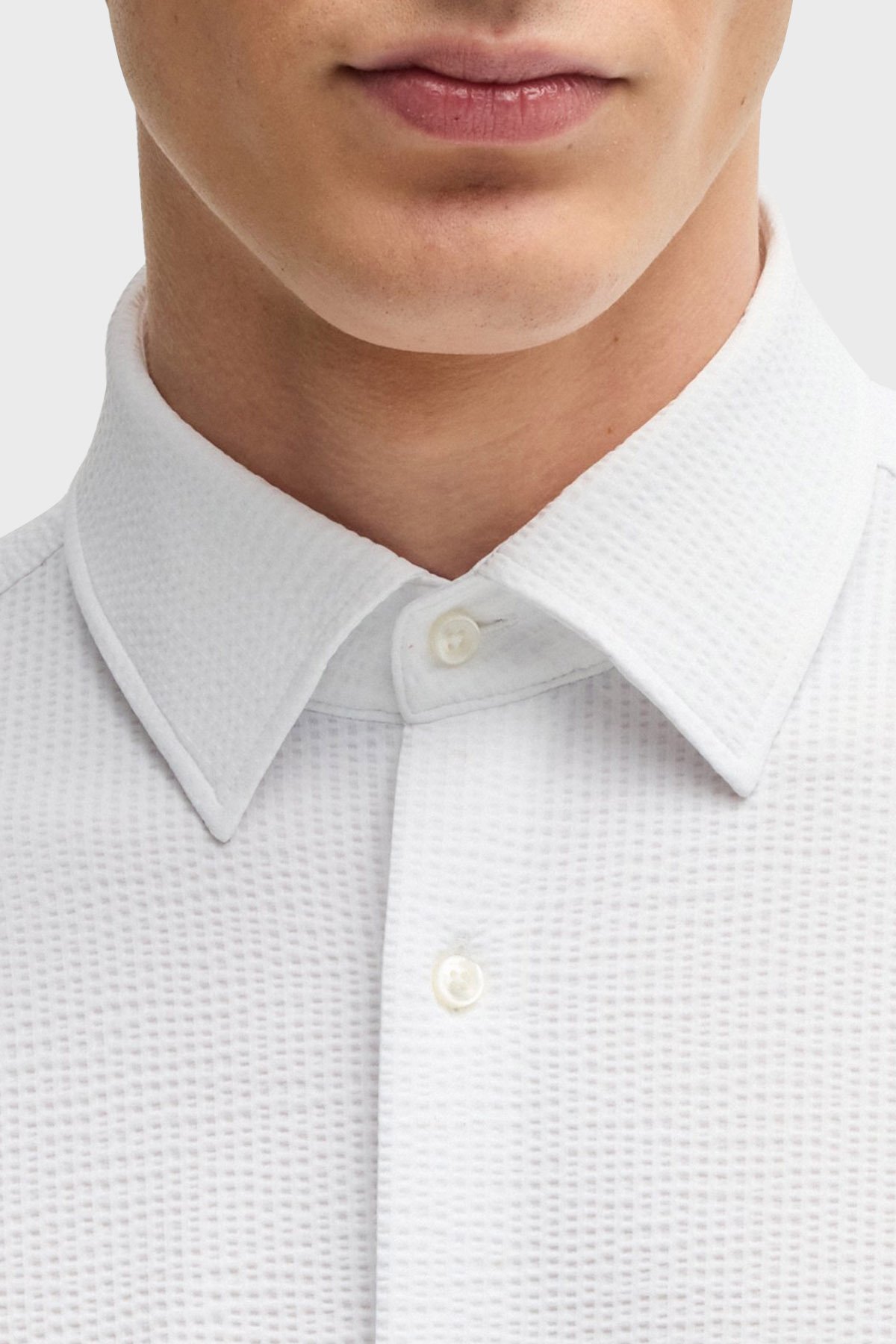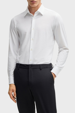 Dokulu Slim Fit Uzun Kollu Erkek Gömlek 50539858 100 BEYAZ