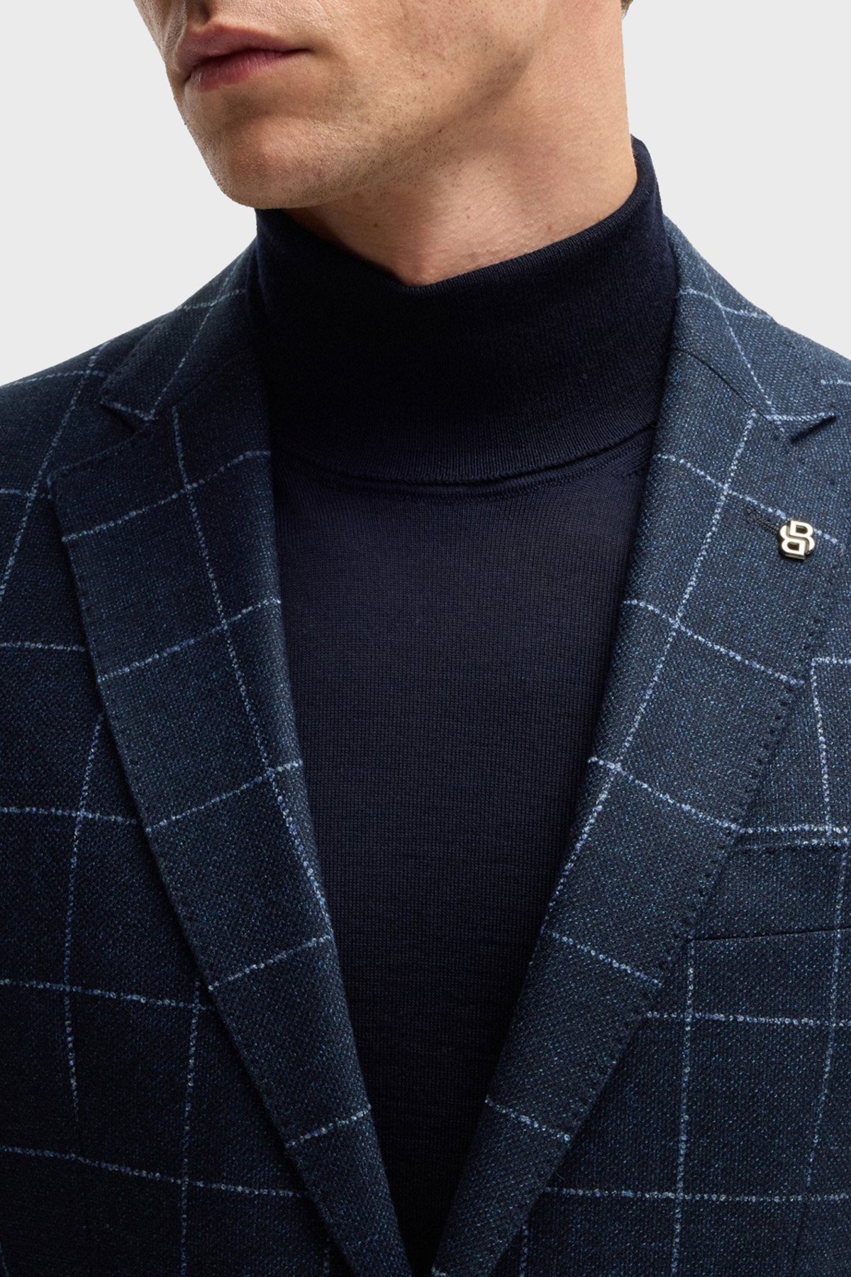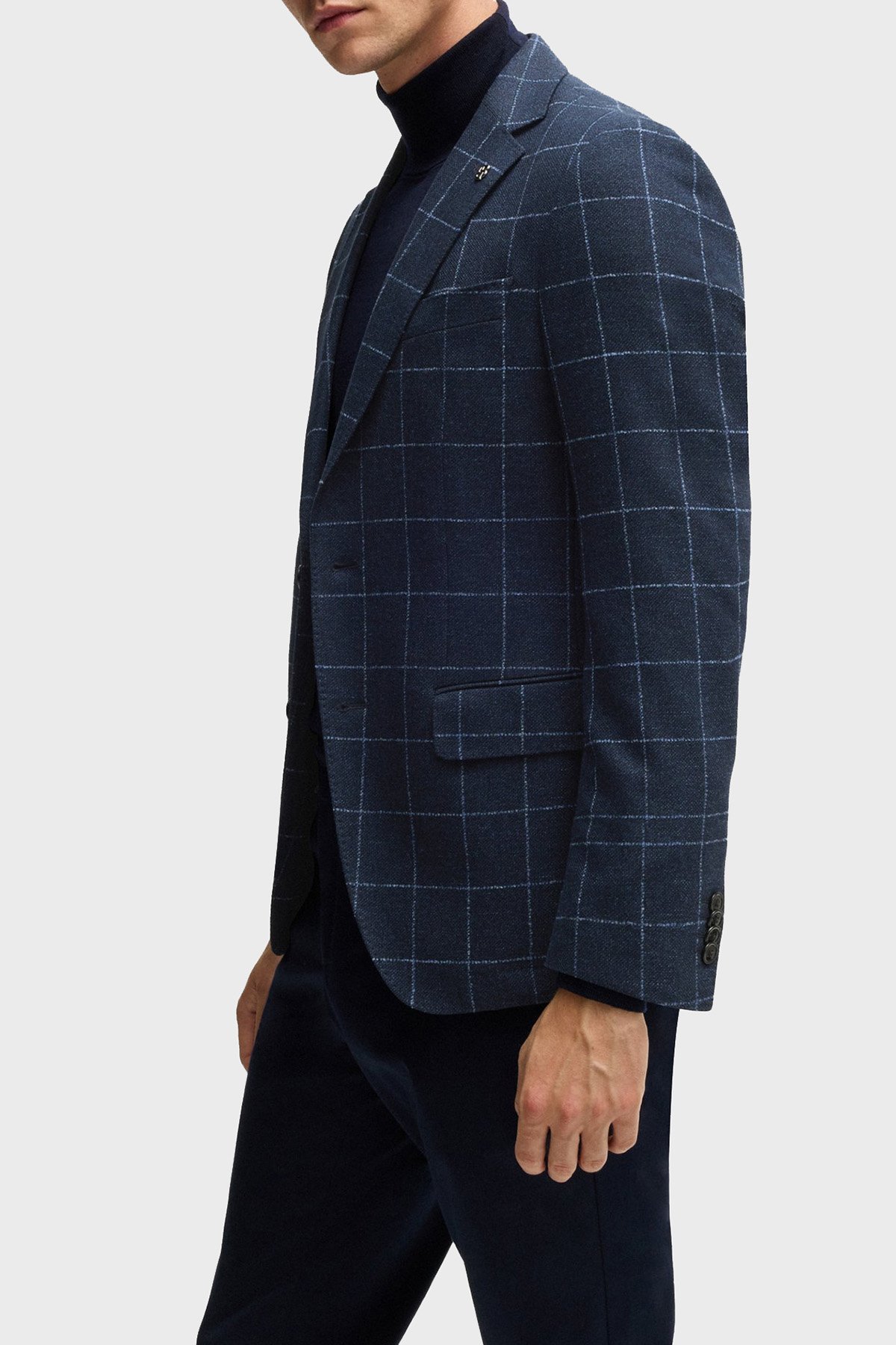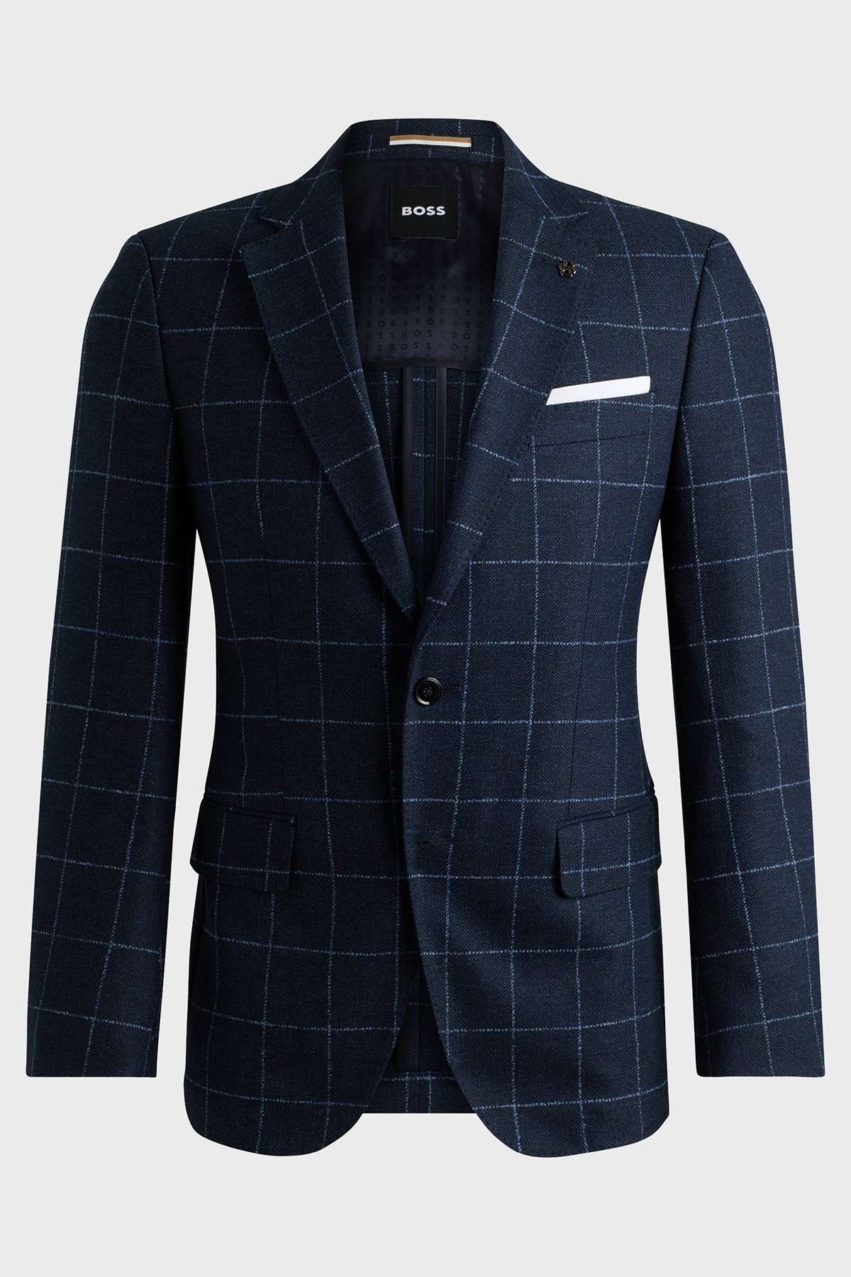 Kareli Yünlü Slim Fit Çift Yırtmaçlı Blazer Erkek Ceket 50527998 404 LACİVERT