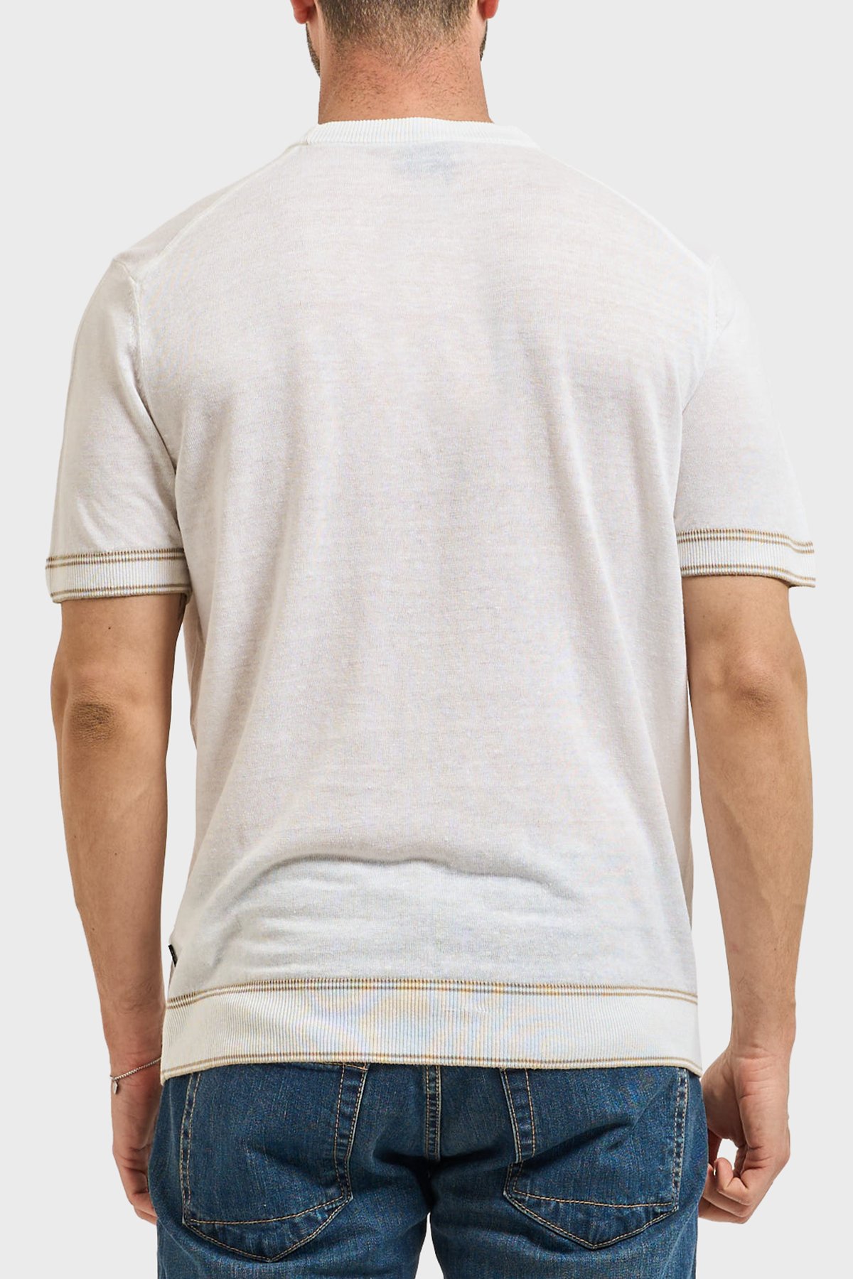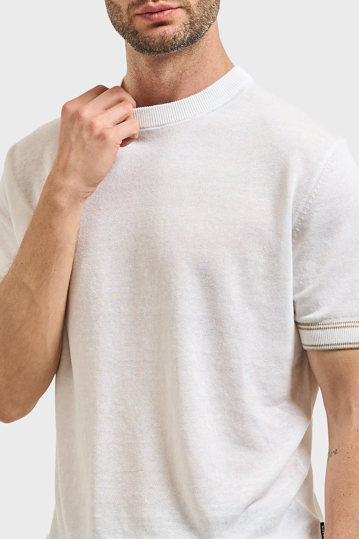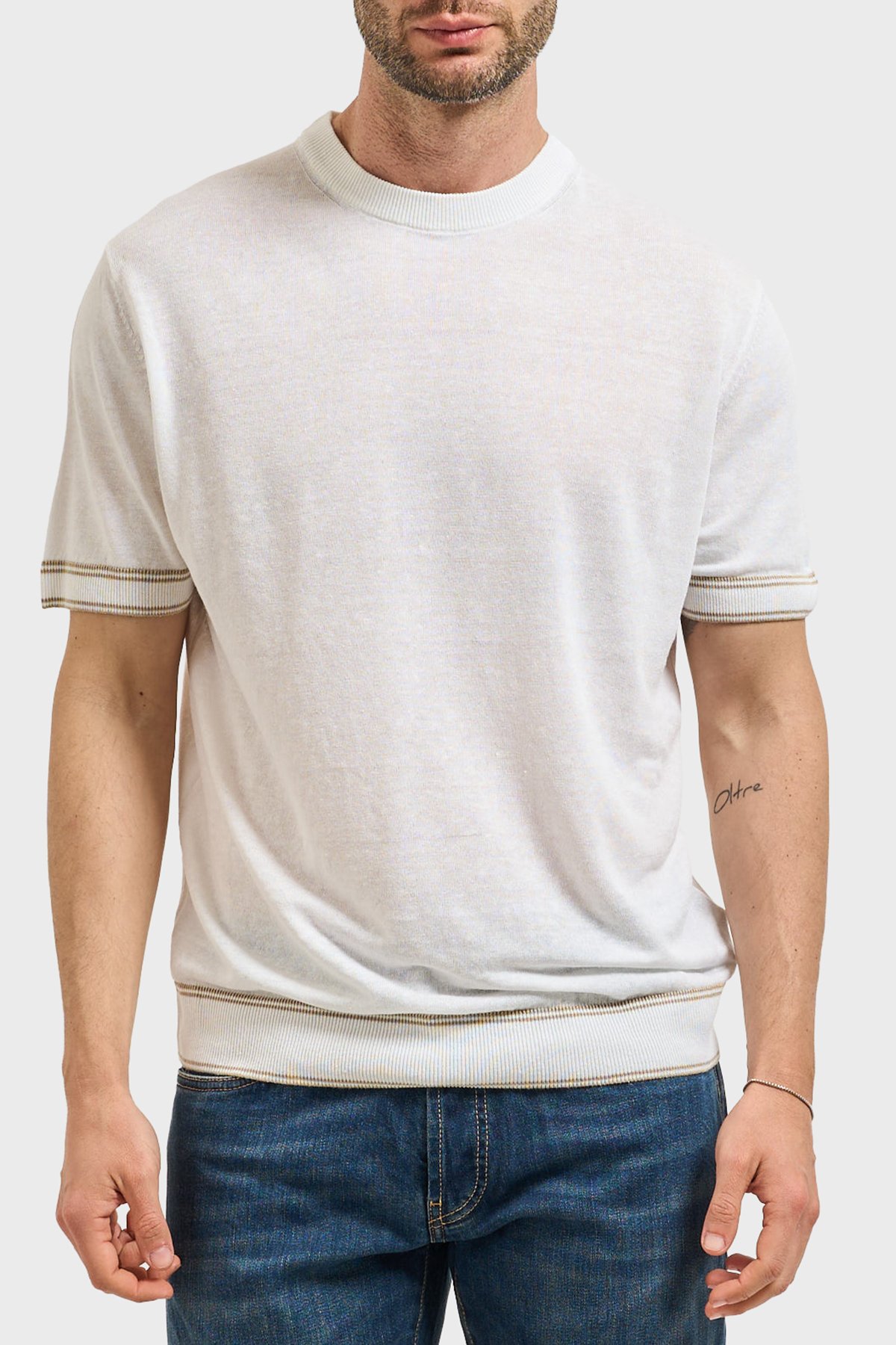 Keten Karışımlı Kontrast Renk Detaylı Bisiklet Yaka Erkek T Shirt 50560491 100 BEYAZ
