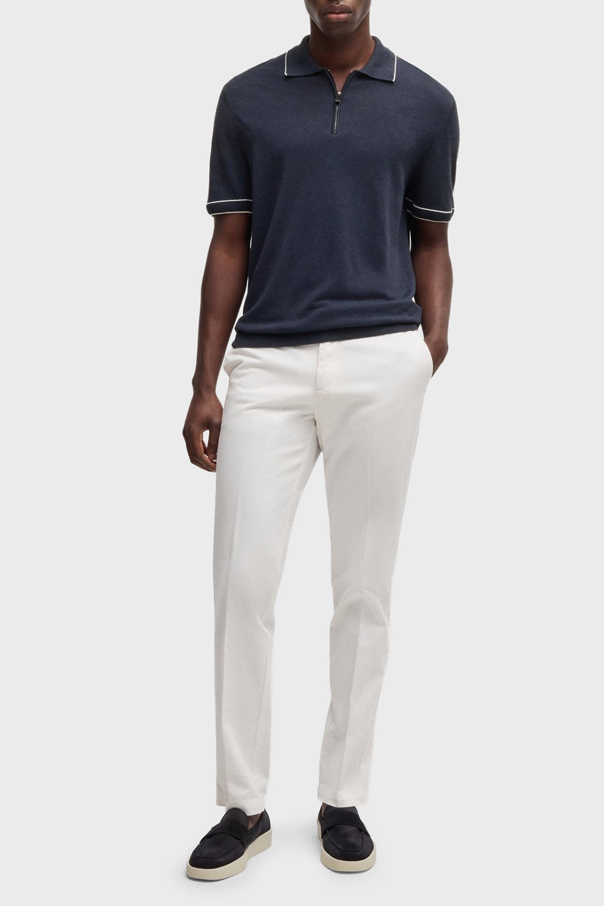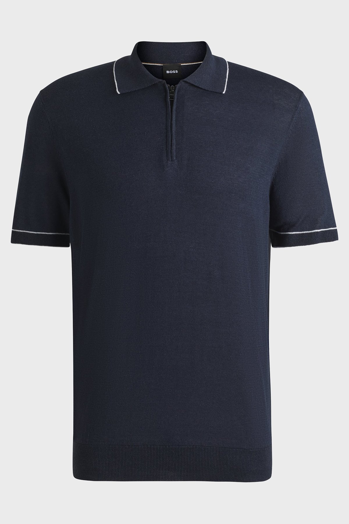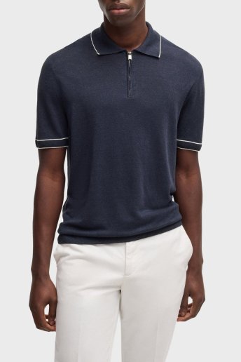 Keten Karışımlı Regular Fit Yarım Fermuarlı Erkek Polo Yaka T Shirt 50537640 404 LACİVERT