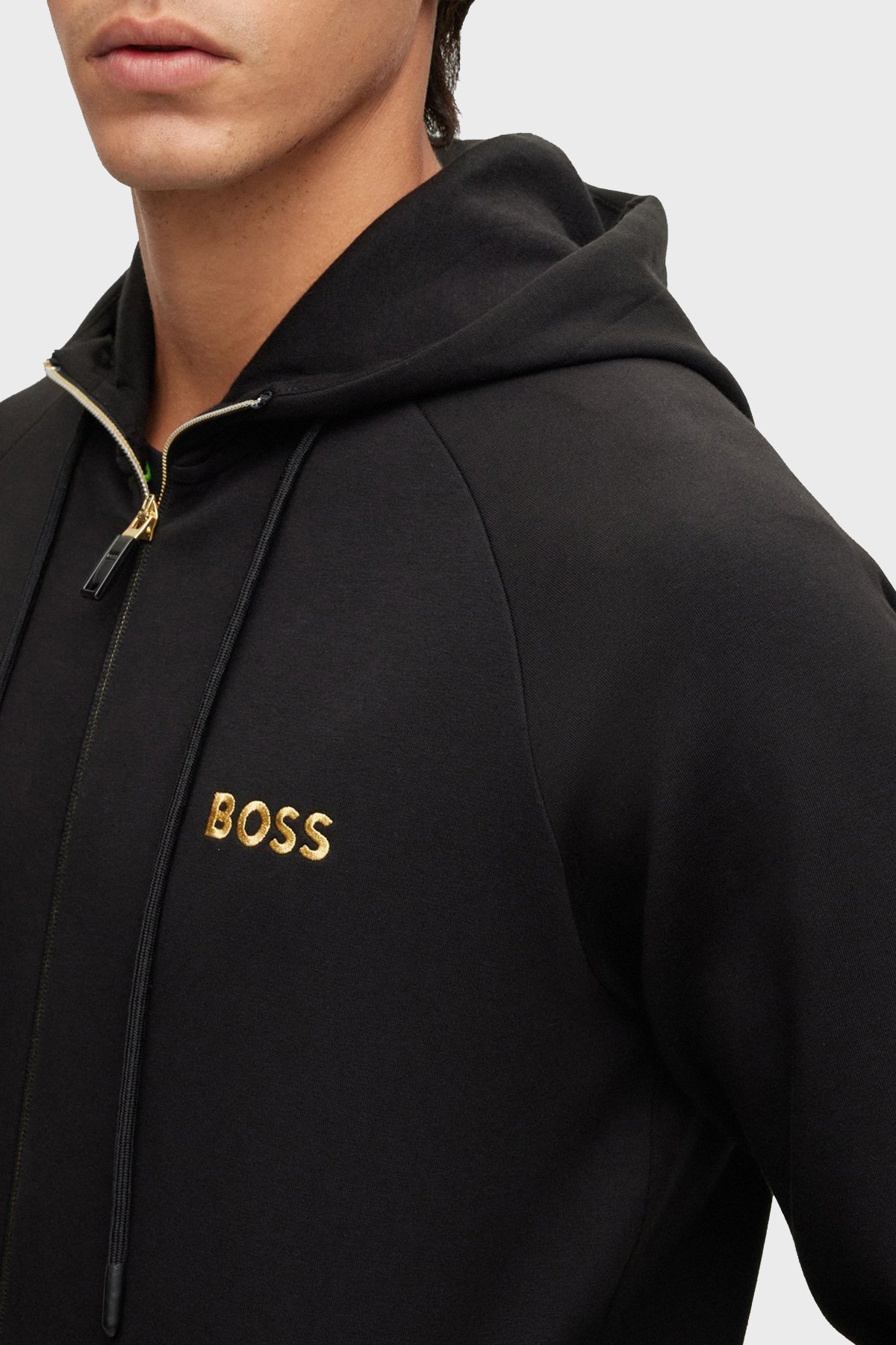 Kontrast Logolu Pamuklu Fermuarlı Kapüşonlu Relaxed Fit Erkek Sweat 50482888 001 SİYAH