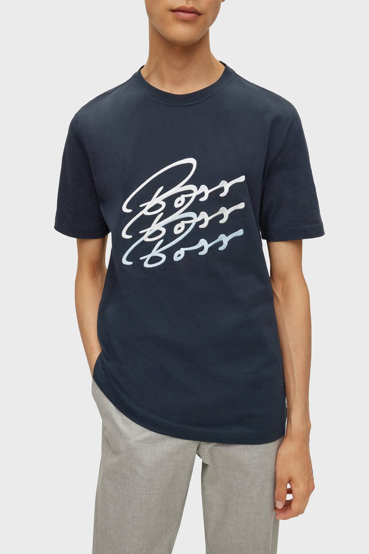 Logo Baskılı Pamuklu Bisiklet Yaka Slim Fit Jarse Erkek T Shirt 50473068 404 LACİVERT