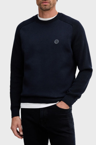 Logolu % 100 Pamuk Regular Fit Bisiklet Yaka Erkek Kazak 50543136 404 LACİVERT