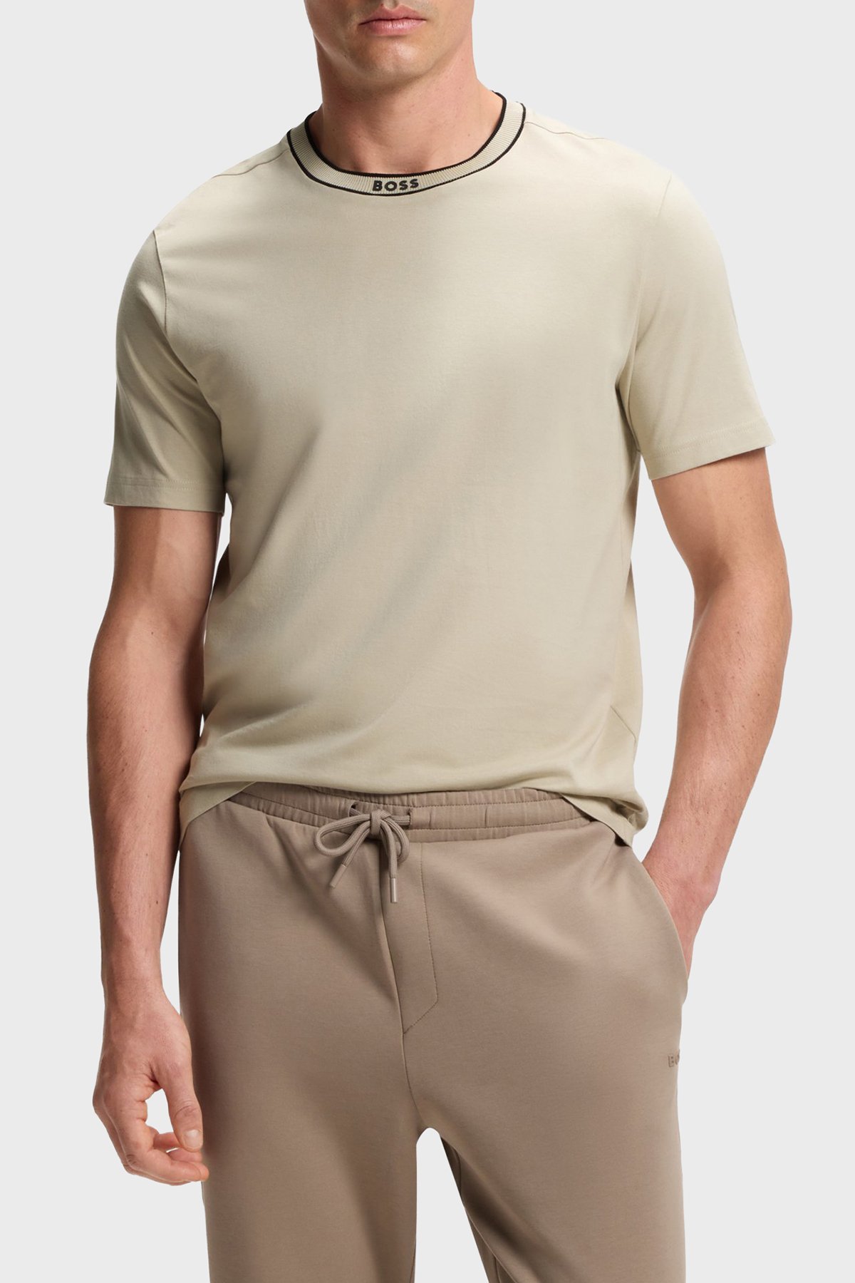 Logolu % 100 Pamuk Regular Fit Bisiklet Yaka Erkek T Shirt 50554862 272 BEJ