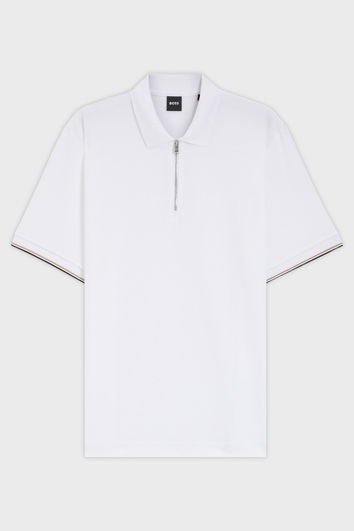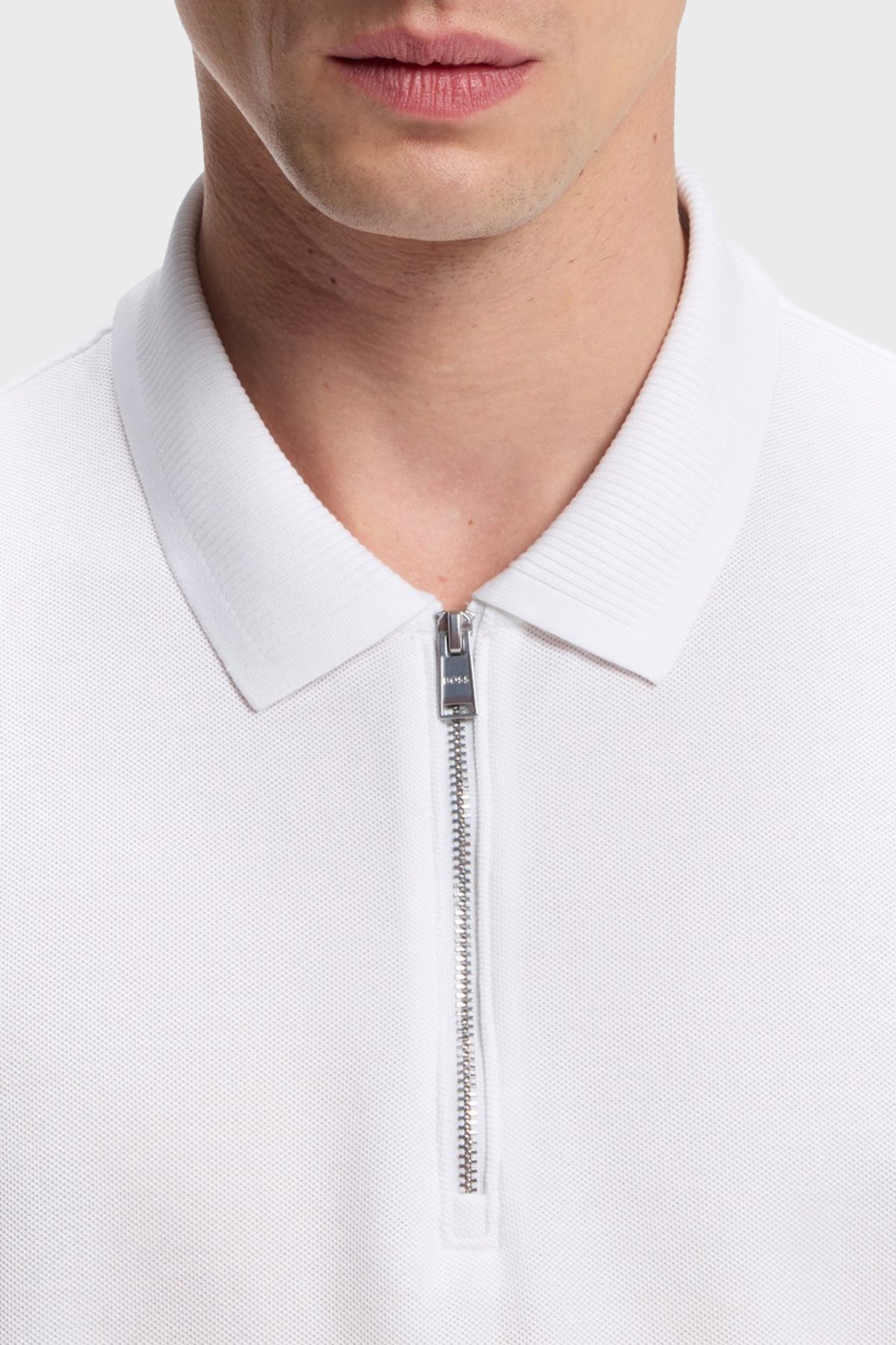 Logolu % 100 Pamuk Regular Fit Yarım Fermuarlı Erkek Polo 50555108 100 BEYAZ