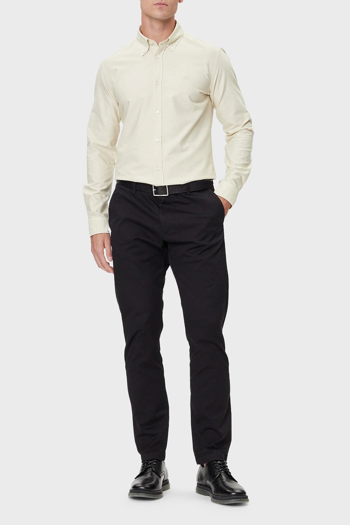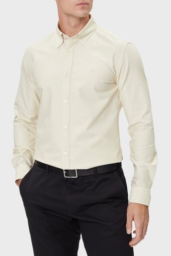 Logolu % 100 Pamuk Slim Fit Düğmeli Yaka Erkek Gömlek 50544917 131 EKRU
