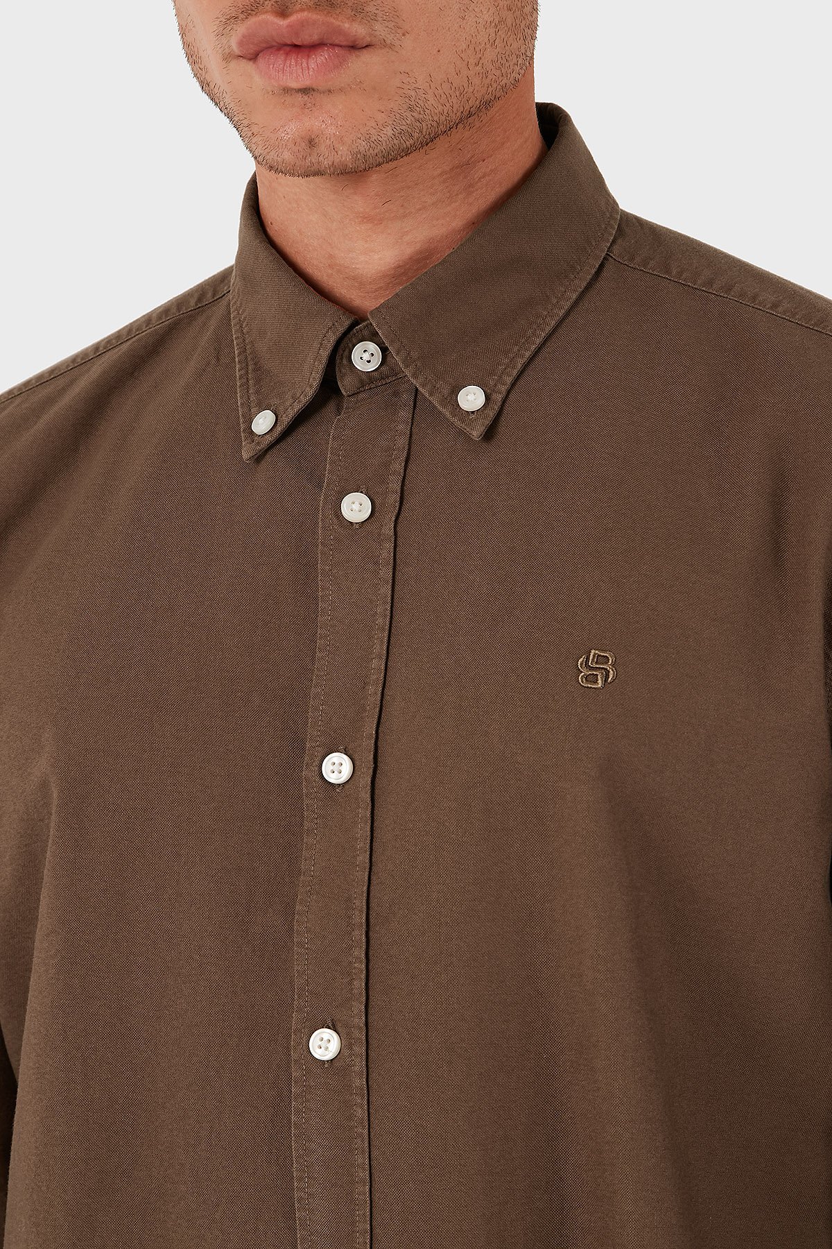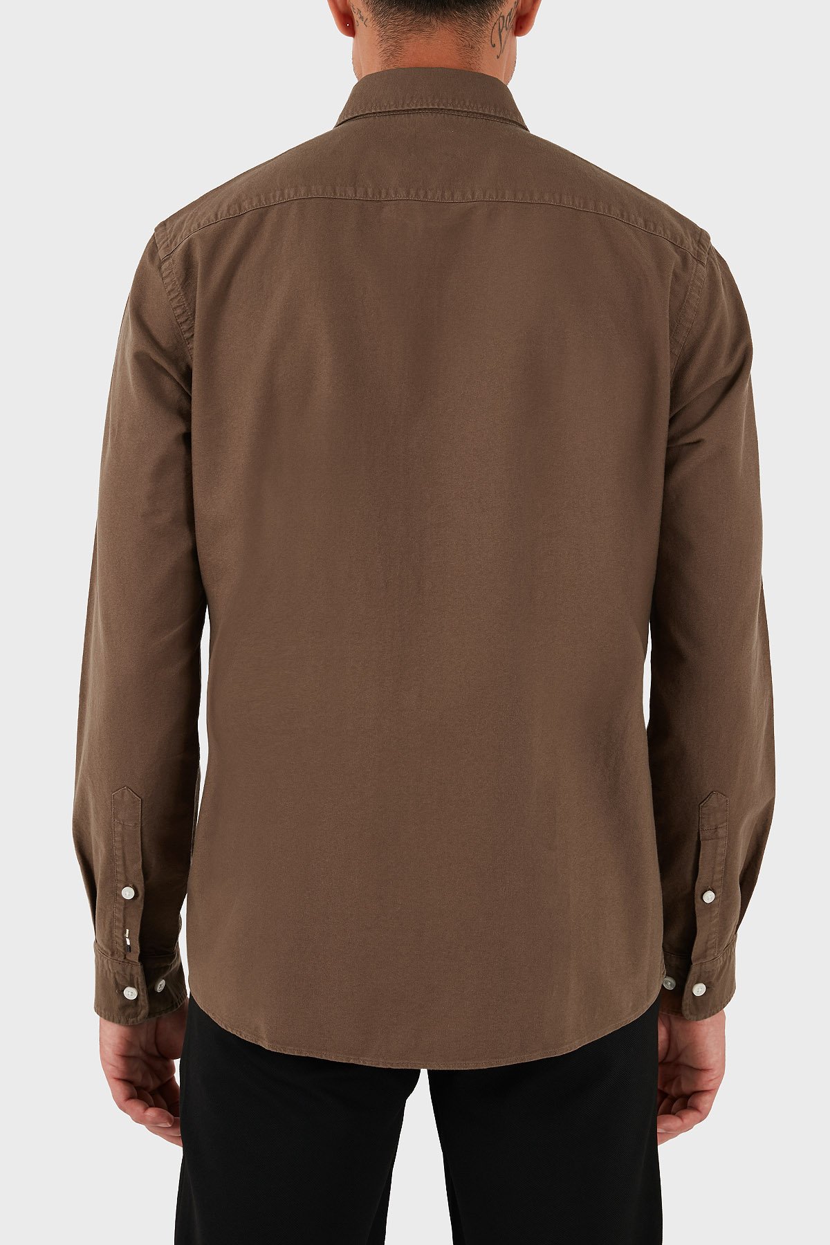 Logolu % 100 Pamuk Slim Fit Düğmeli Yaka Erkek Gömlek 50544917 217 KAHVE