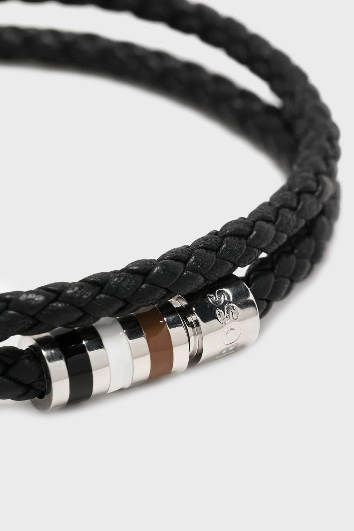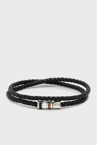 Logolu Hakiki Deri Örgü Erkek Bileklik 50491951 001 SİYAH