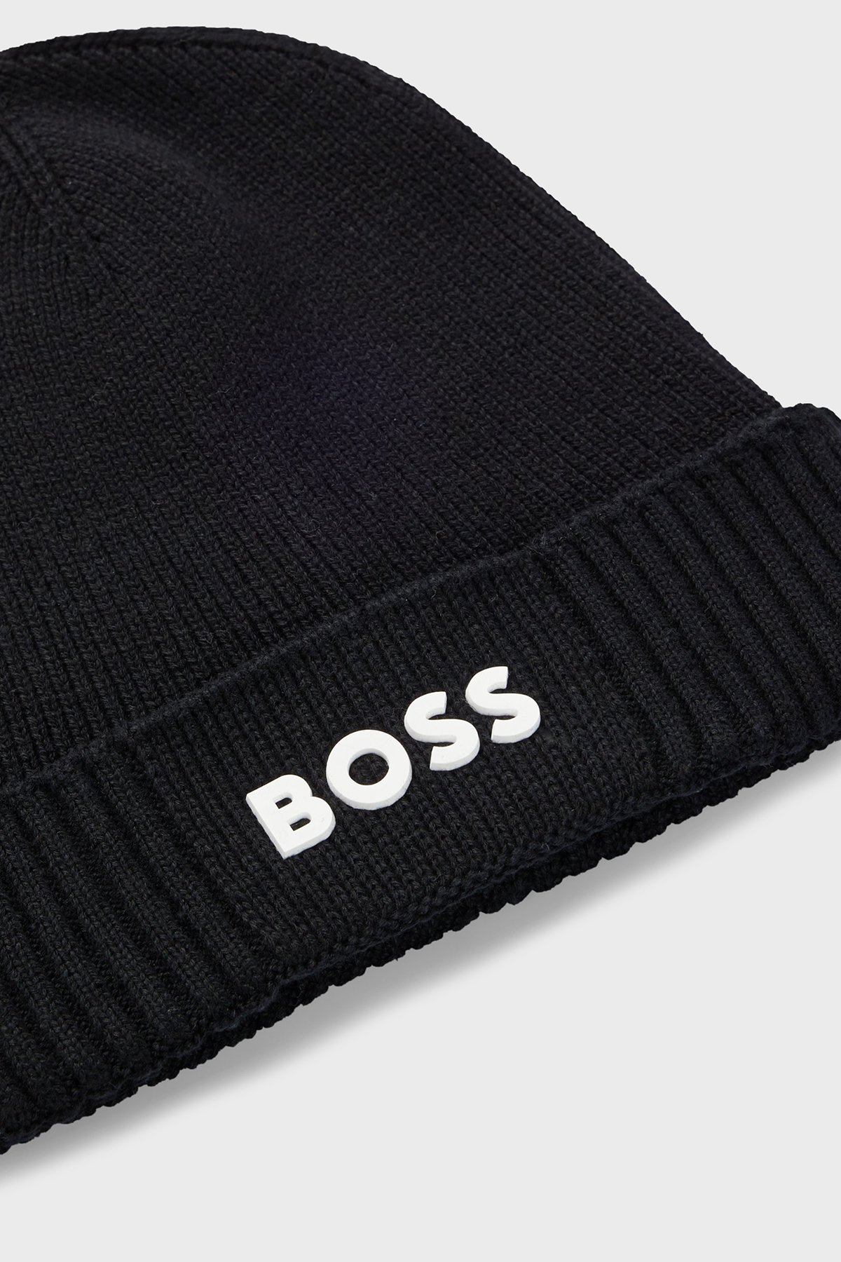 Logolu Pamuk ve Yün Karışımlı Erkek Bere 50499423 001 SİYAH