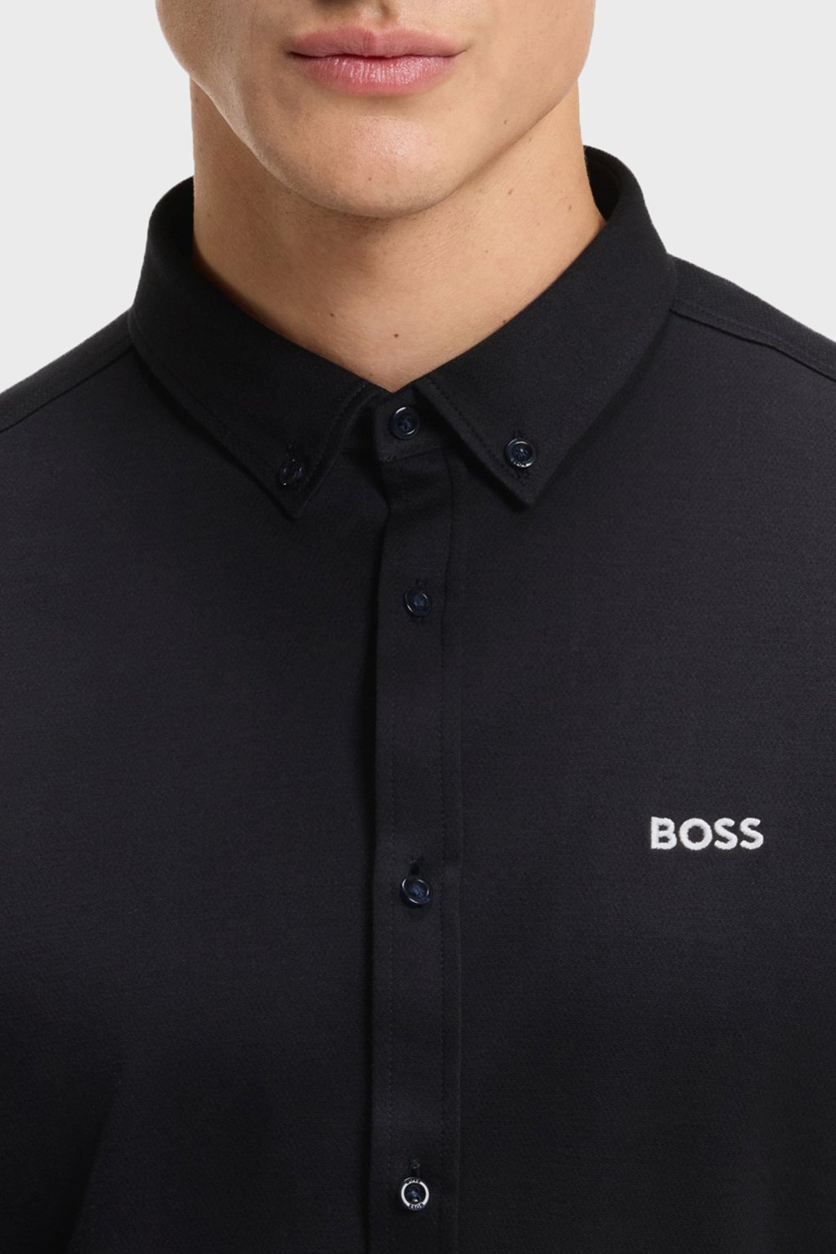Logolu Pamuklu Jarse Regular Fit Düğmeli Yaka Erkek Gömlek 50555946 402 LACİVERT