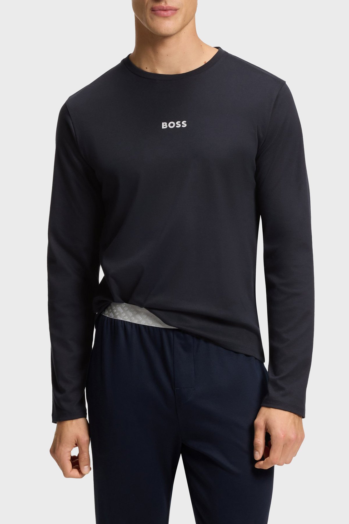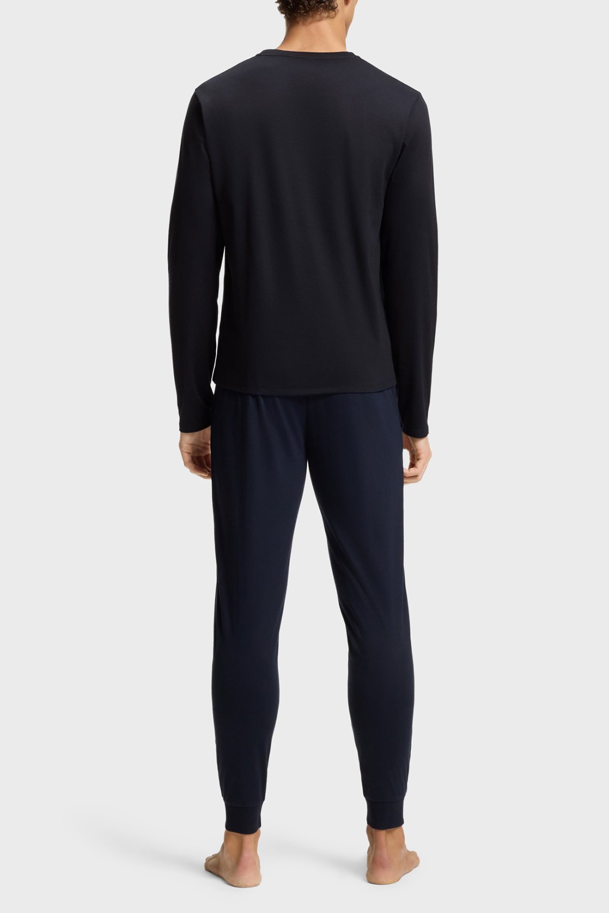 Logolu Pamuklu Regular Fit Bisiklet Yaka Uzun Kollu Erkek Pijama Takımı 50550547 402 LACİVERT