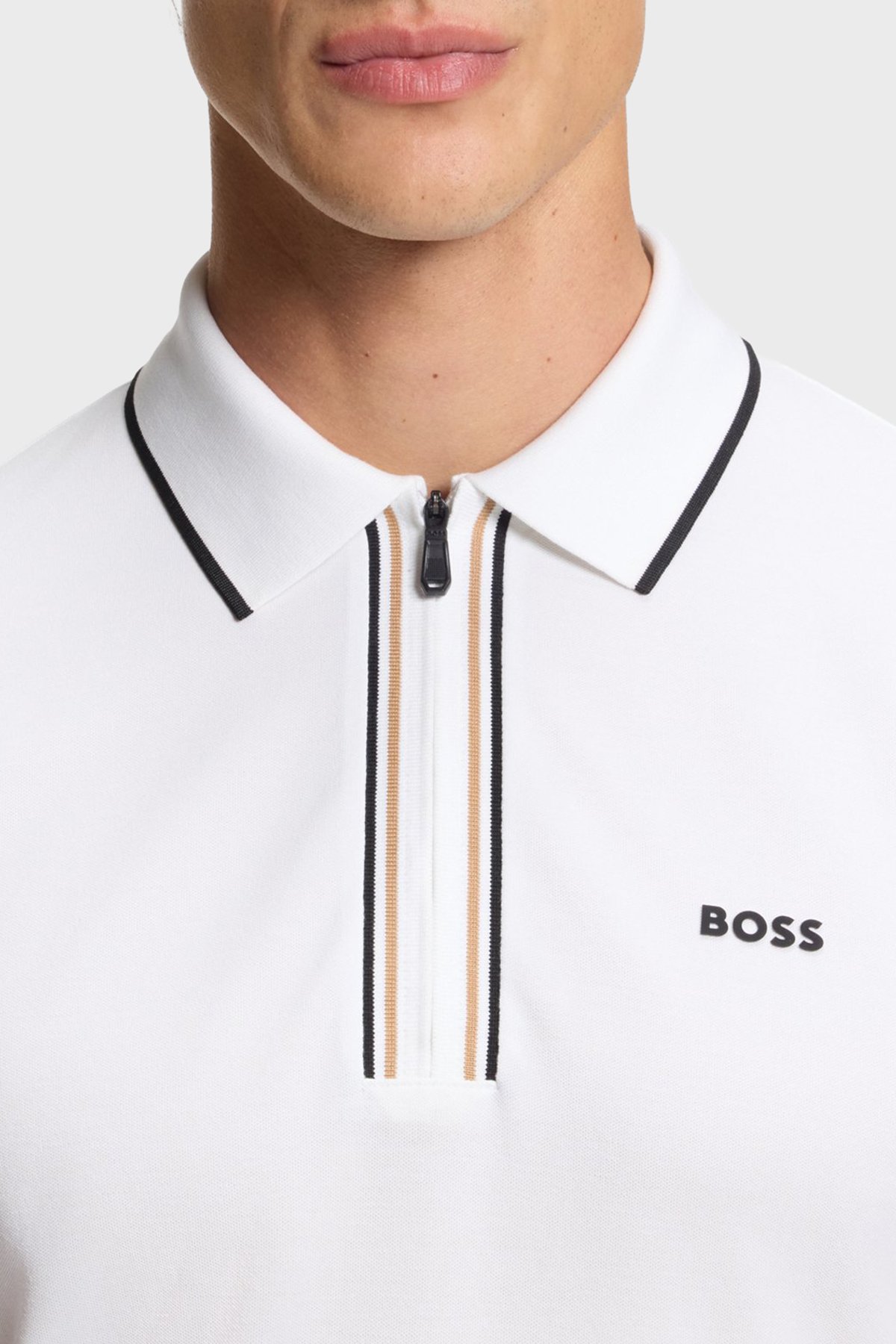 Logolu Pamuklu Slim Fit Yaırım Fermuarlı Erkek Polo 50555698 100 BEYAZ