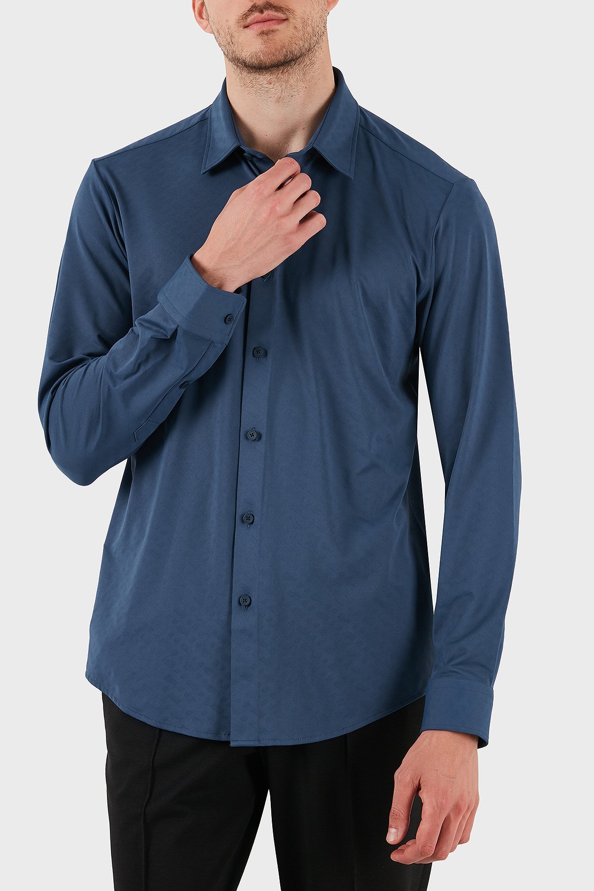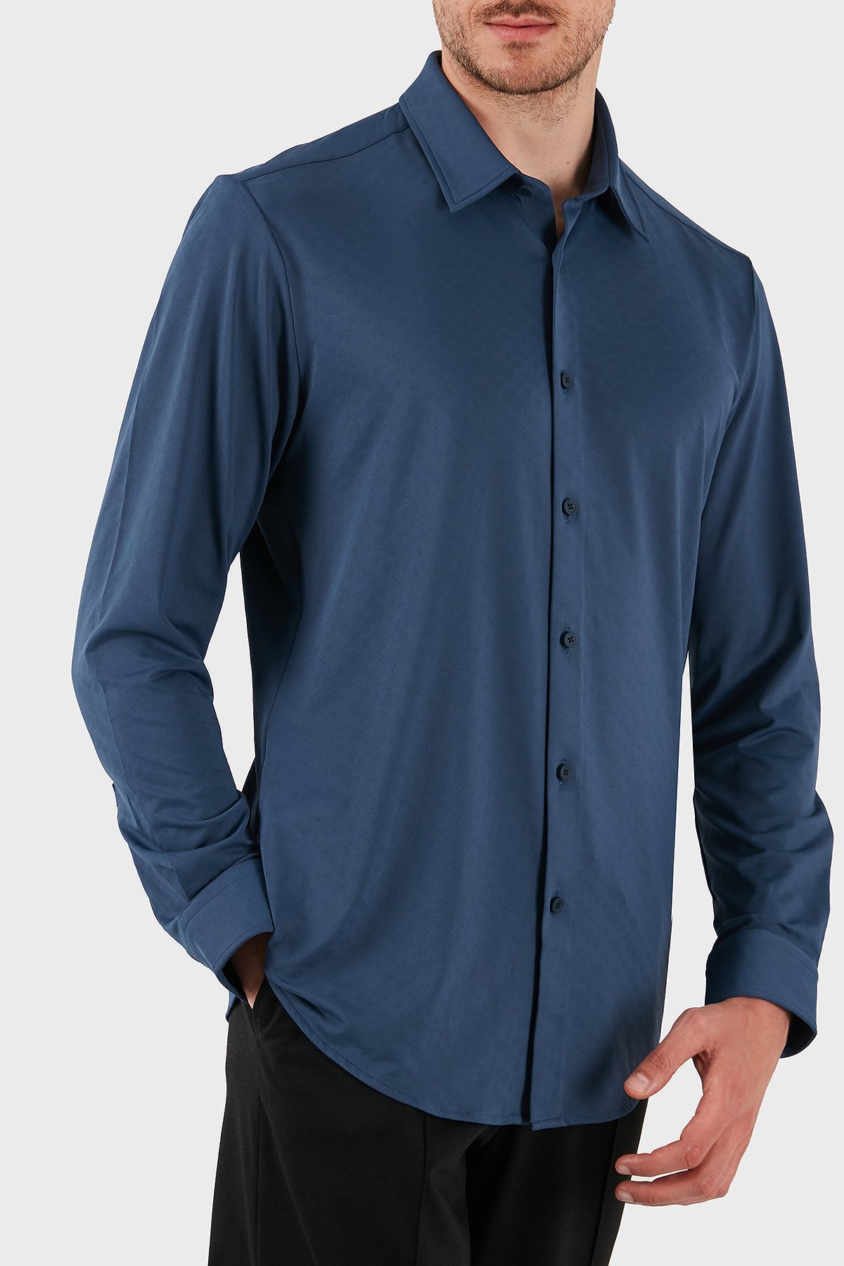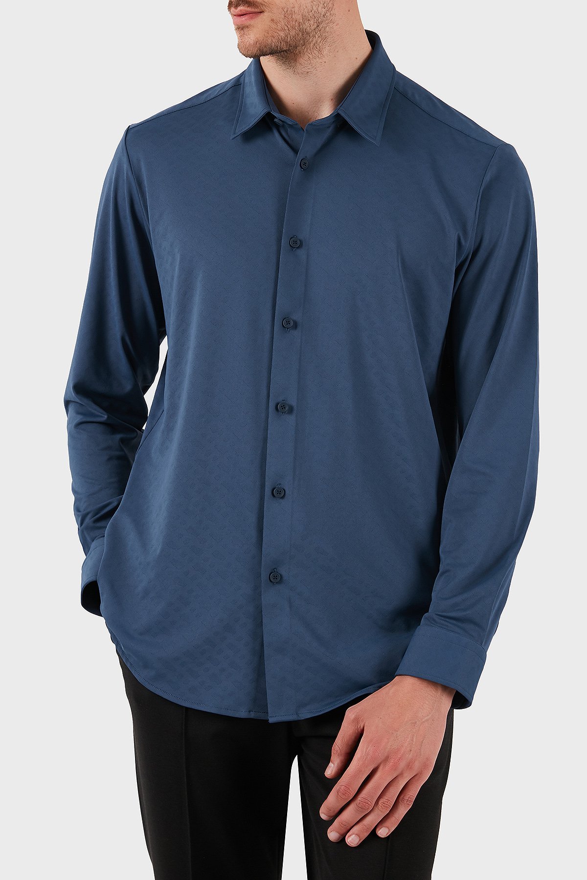 Logolu Streç Reagular Fit Düz Yaka Erkek Gömlek 50533570 425 LACİVERT