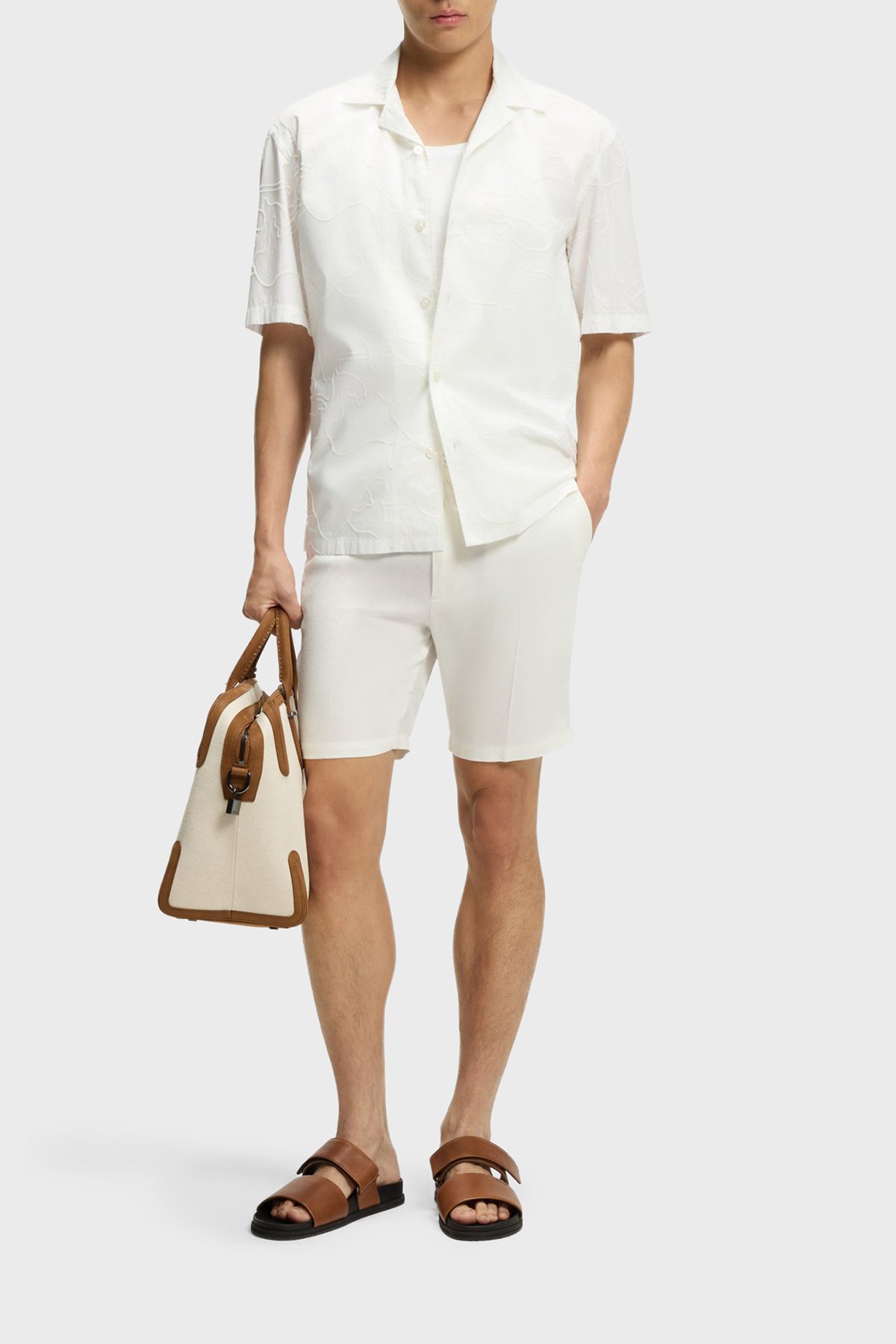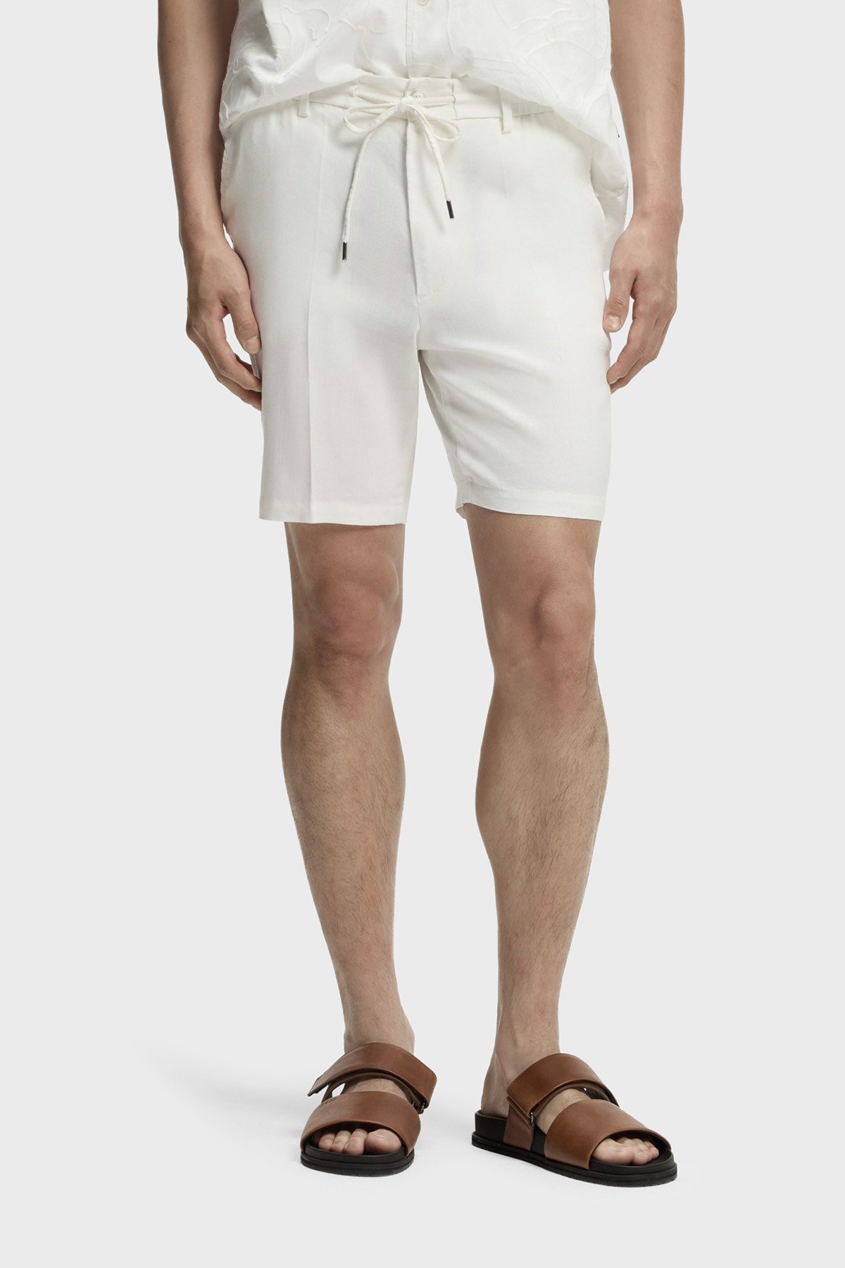 Modern Kesimli Keten Karışımlı Erkek Şort 50557537 100 BEYAZ