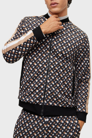 Monogram Baskılı Fermuarlı Regular Fit Cepli Erkek Sweat 50485581 001 SİYAH