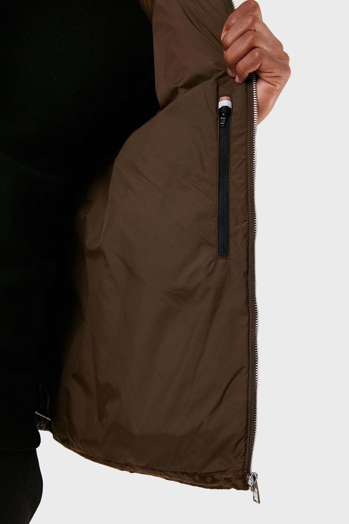 Monogram Desenli Fermuarlı Su İtici Regular Fit Şişme Erkek Yelek 50497772 361 KAHVE