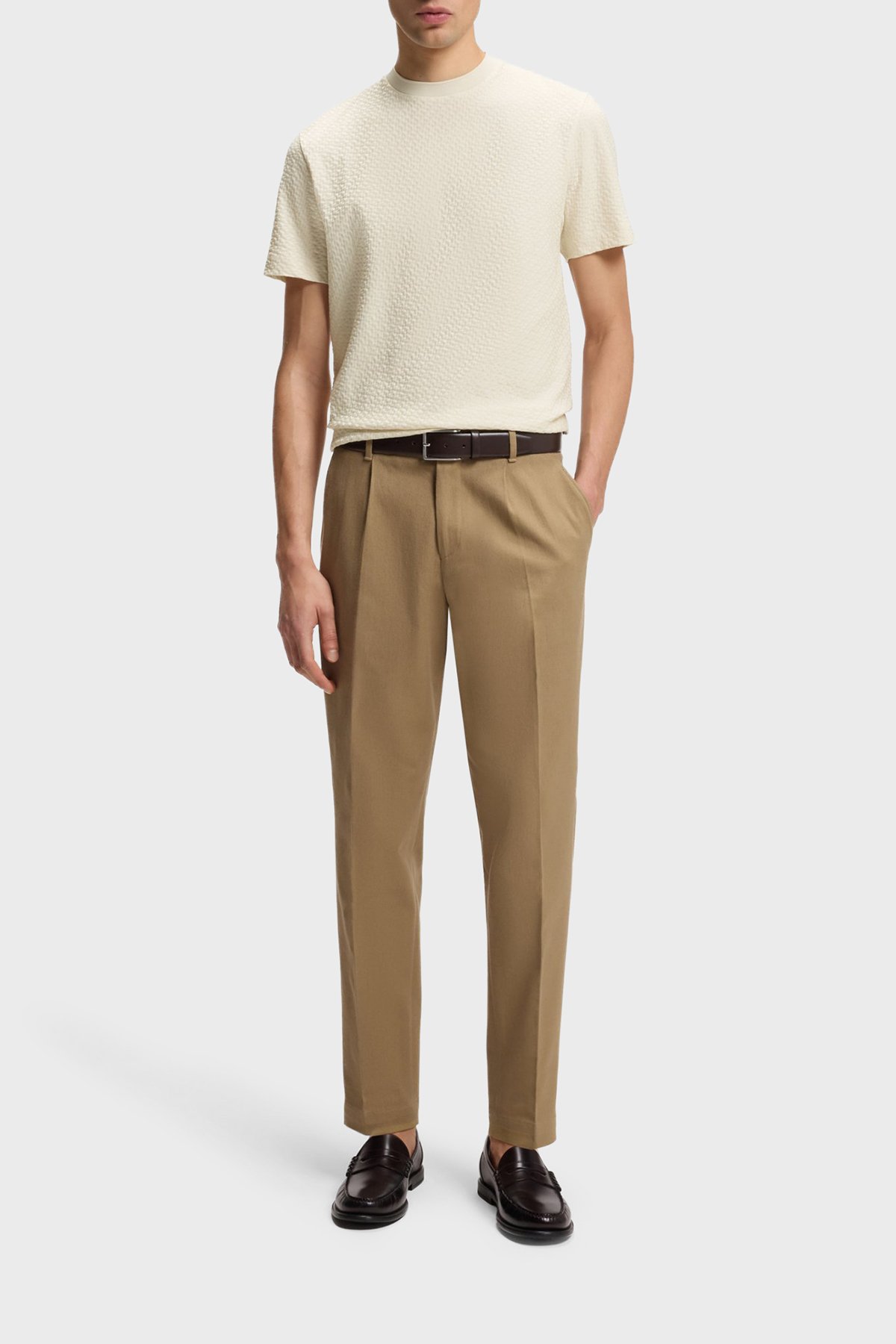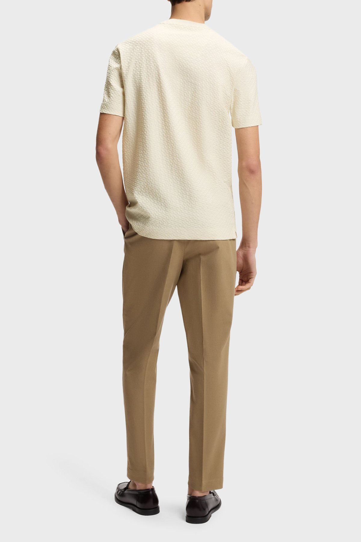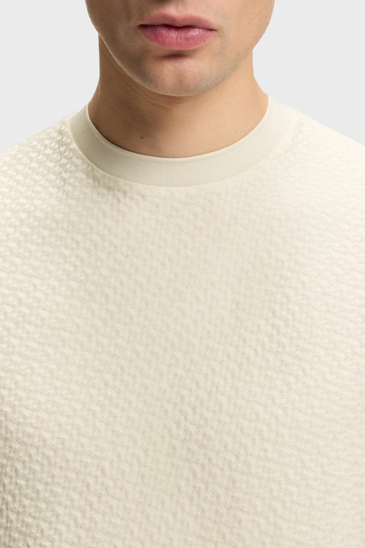 Monogram Jakarlı % 100 Pamuk Regular Fit Bisiklet Yaka Erkek T Shirt 50557395 131 BEJ