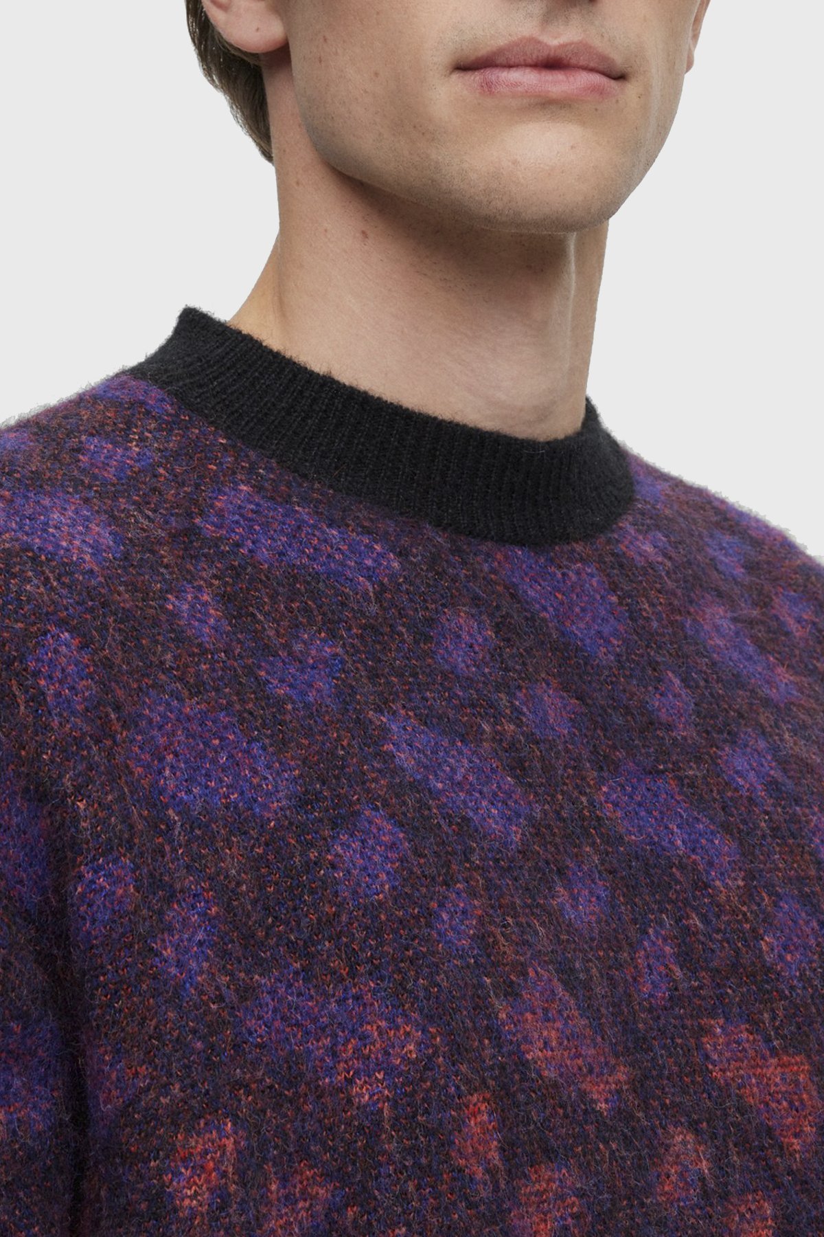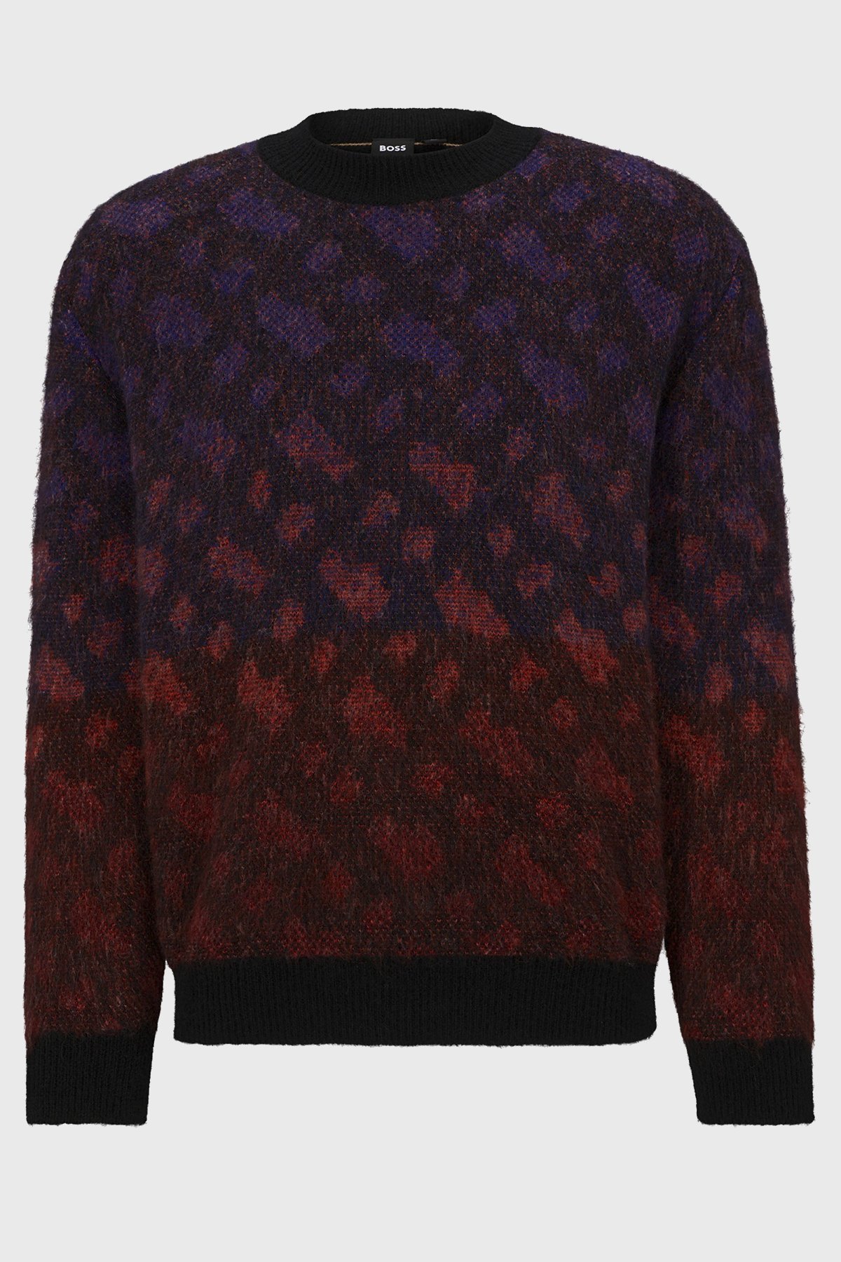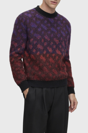 Monogram Jakarlı Bisiklet Yaka Relaxed Fit Yünlü Erkek Kazak 50500679 001 SİYAH