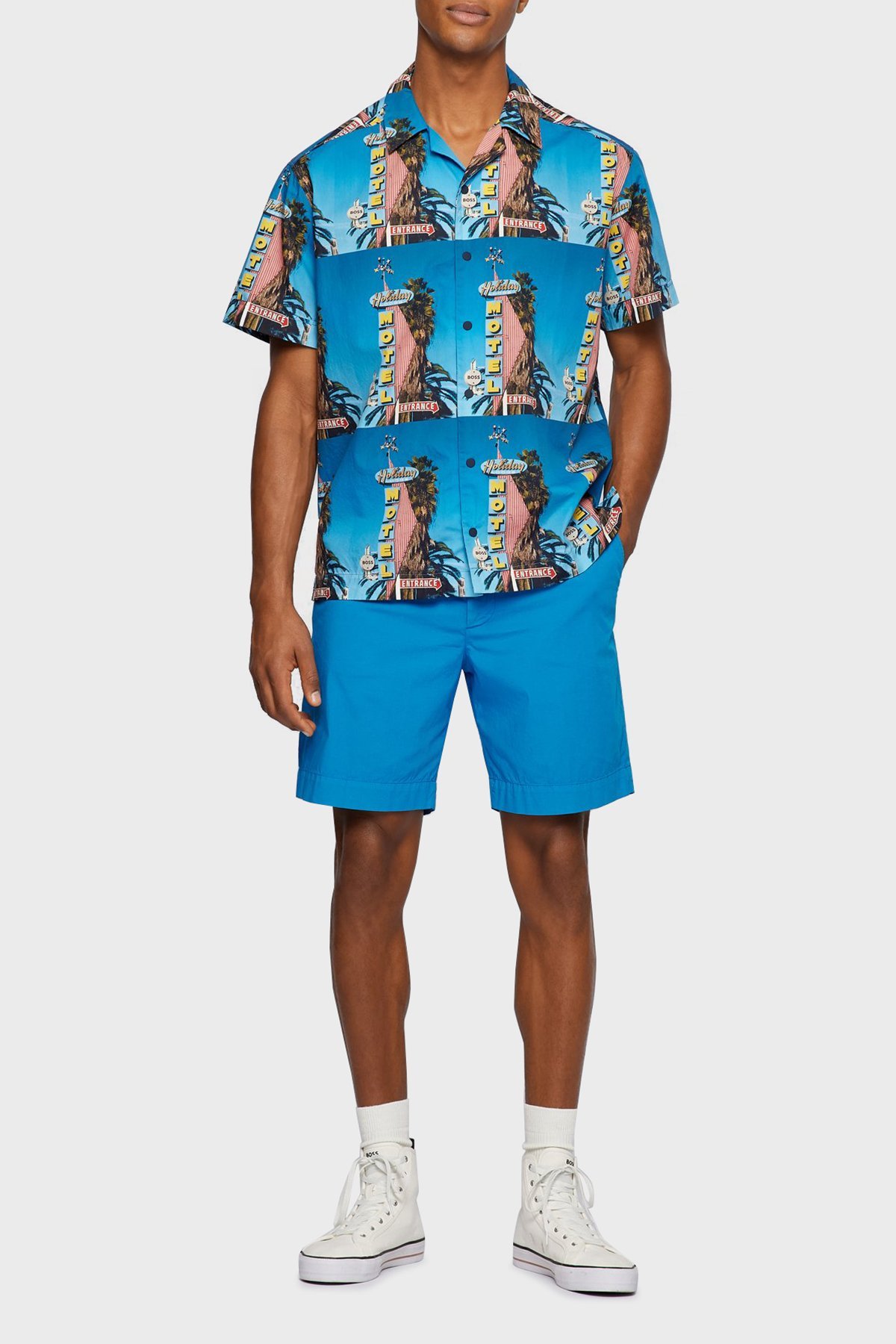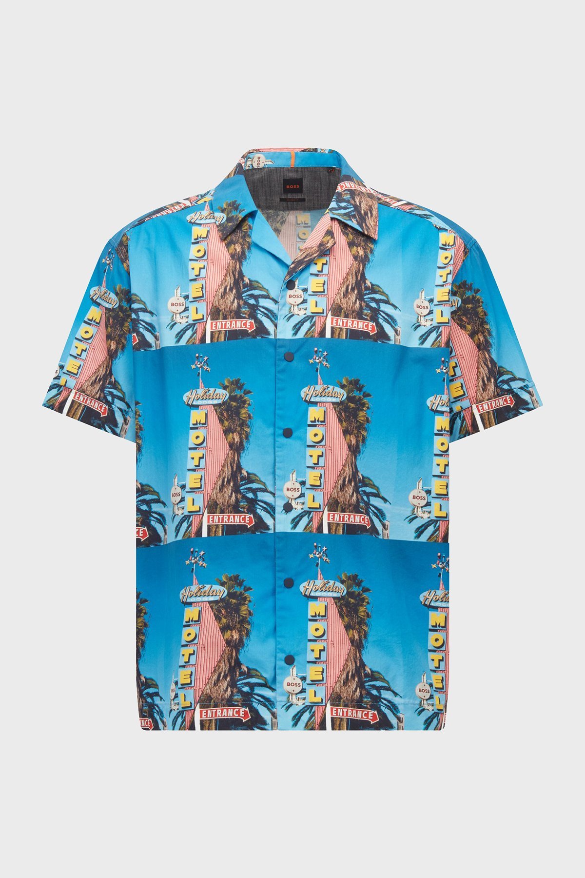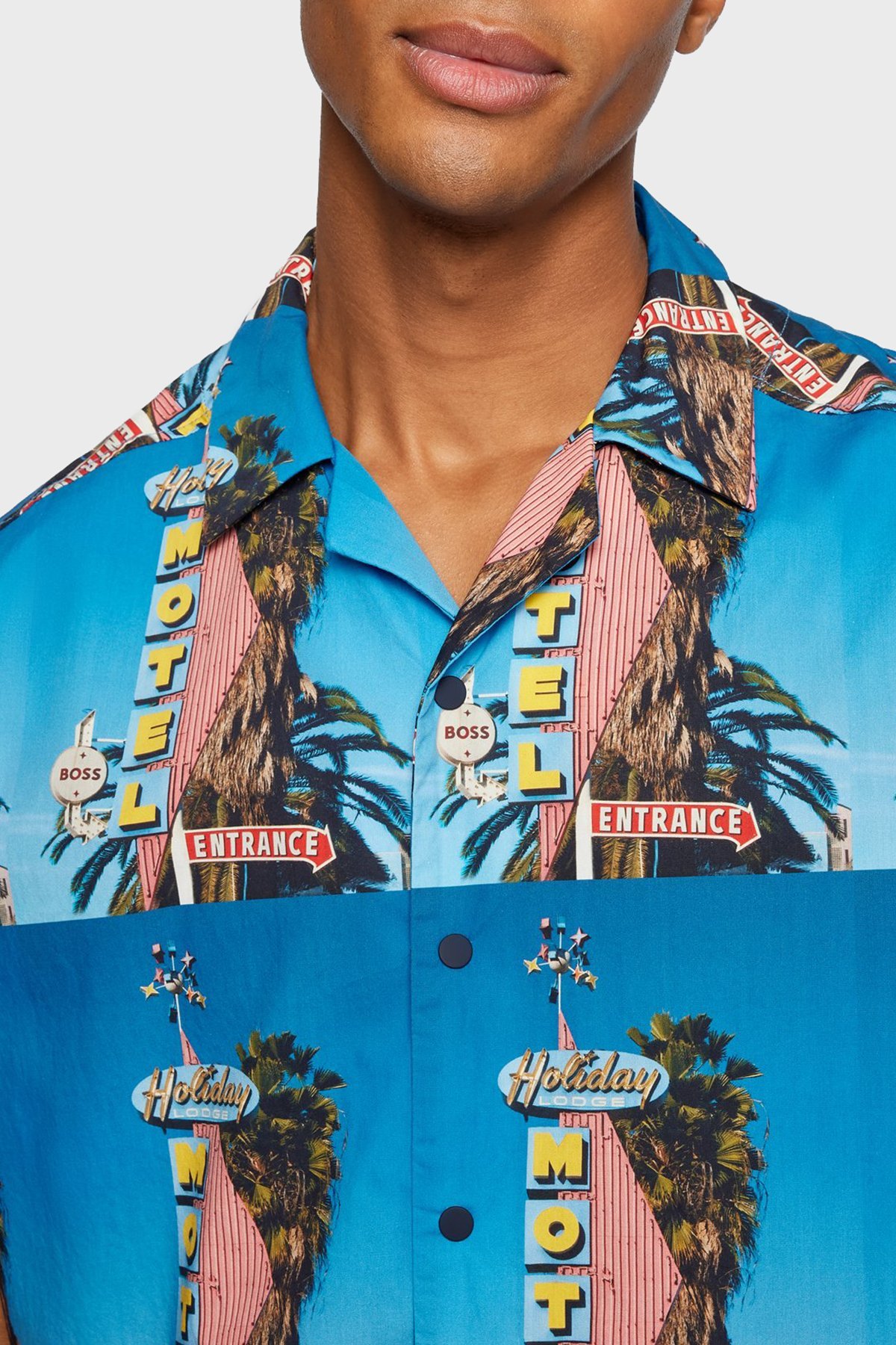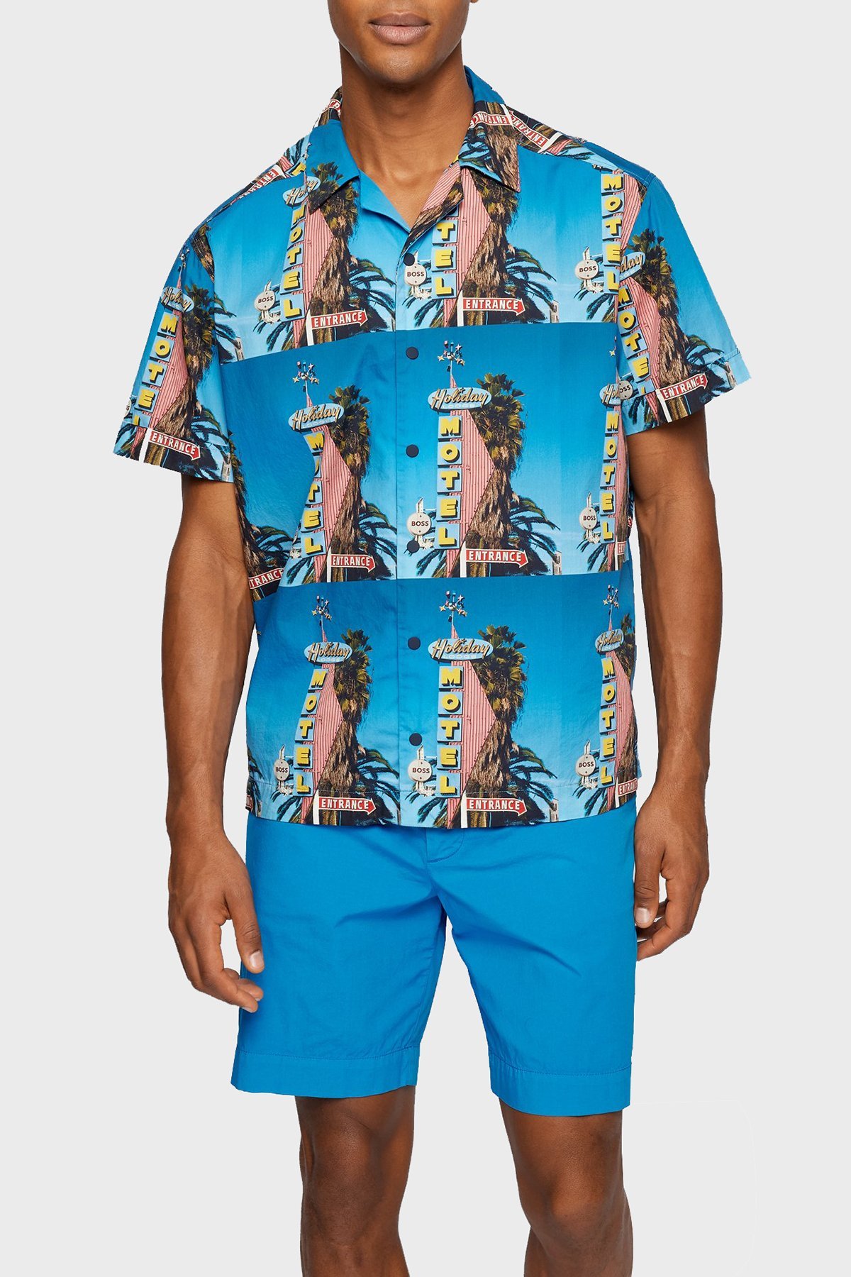 Motel Baskılı Pamuklu Relaxed Fit Kısa Kollu Erkek Gömlek 50467574 439 İNDİGO