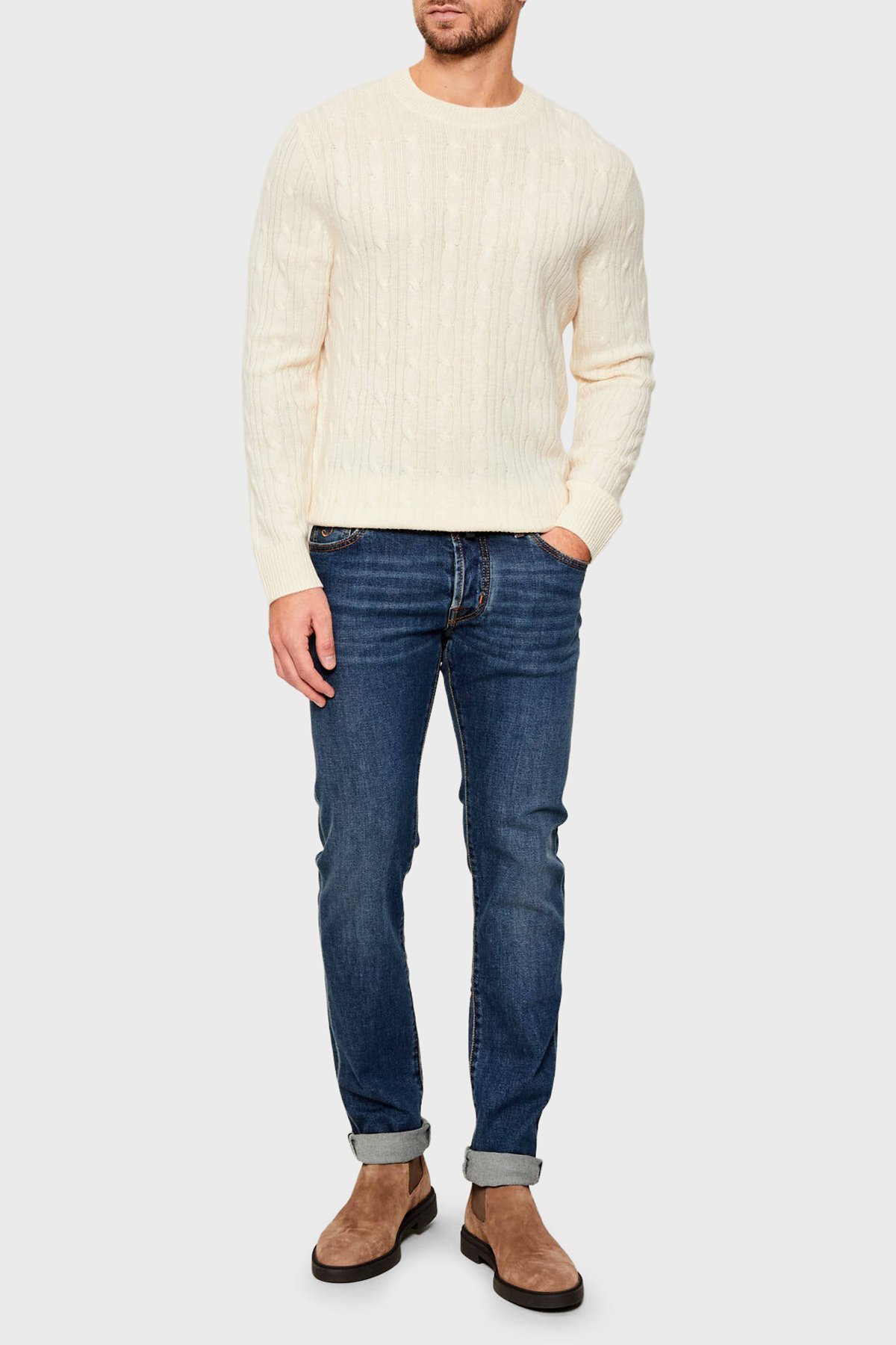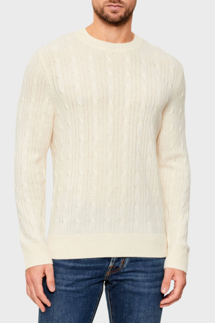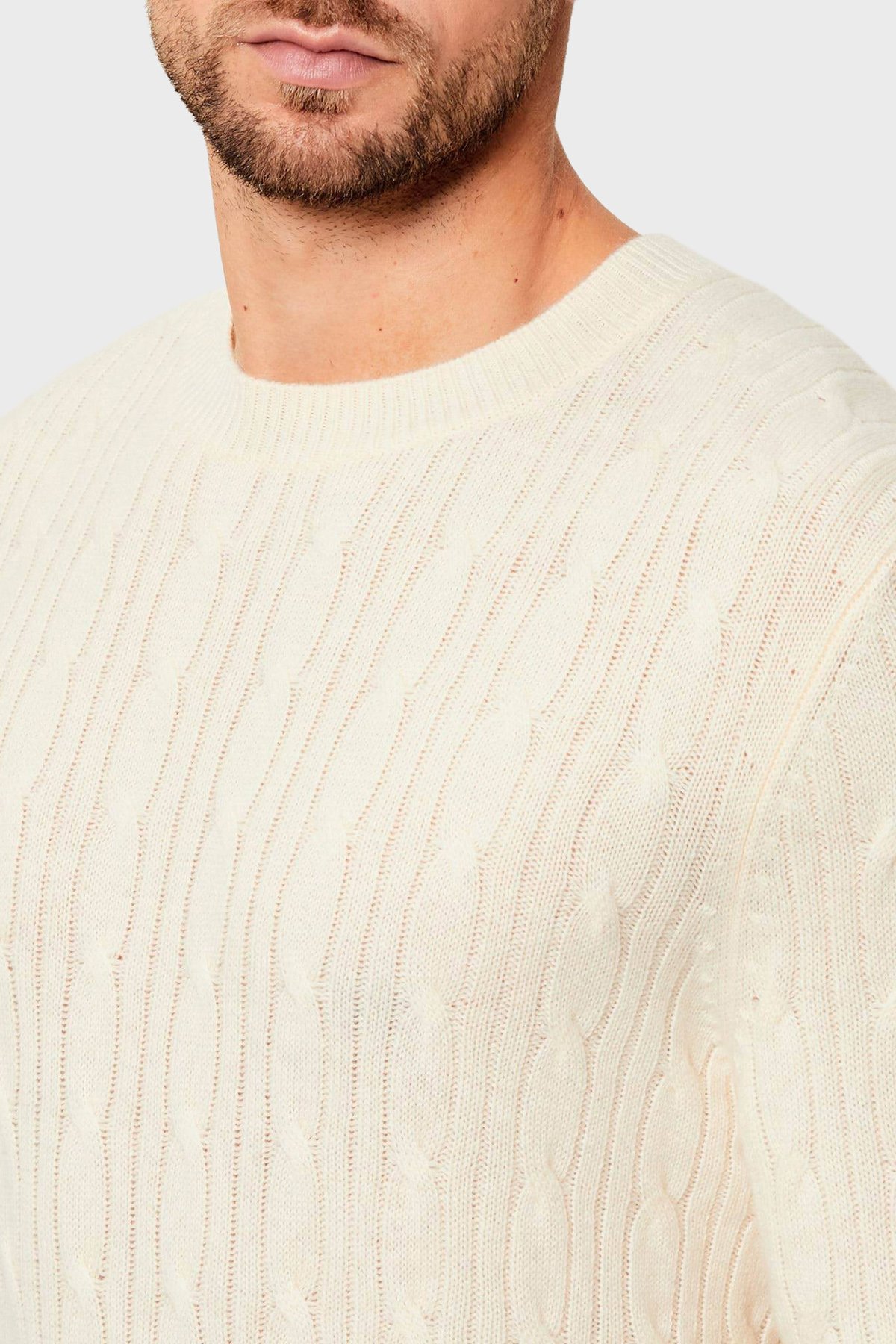 Örgülü Yün ve Kaşmir Karışımlı Regular Fit Bisiklet Yaka Erkek Kazak 50549975 131 EKRU