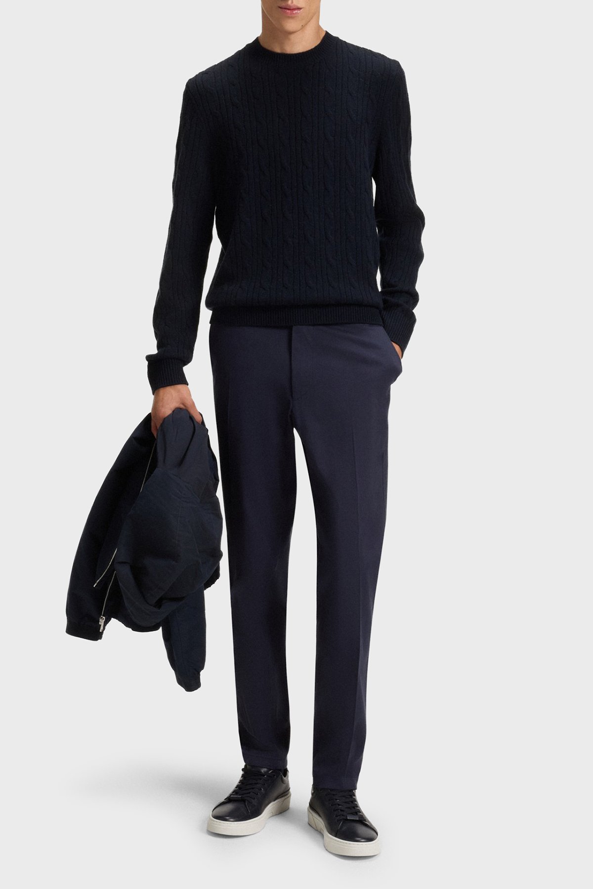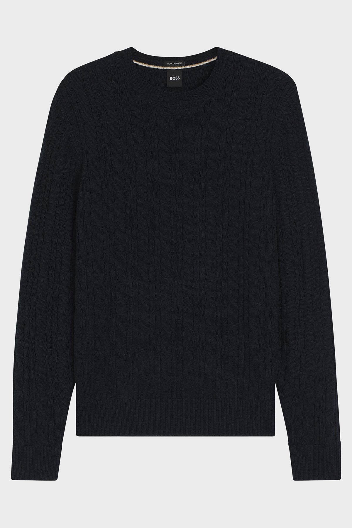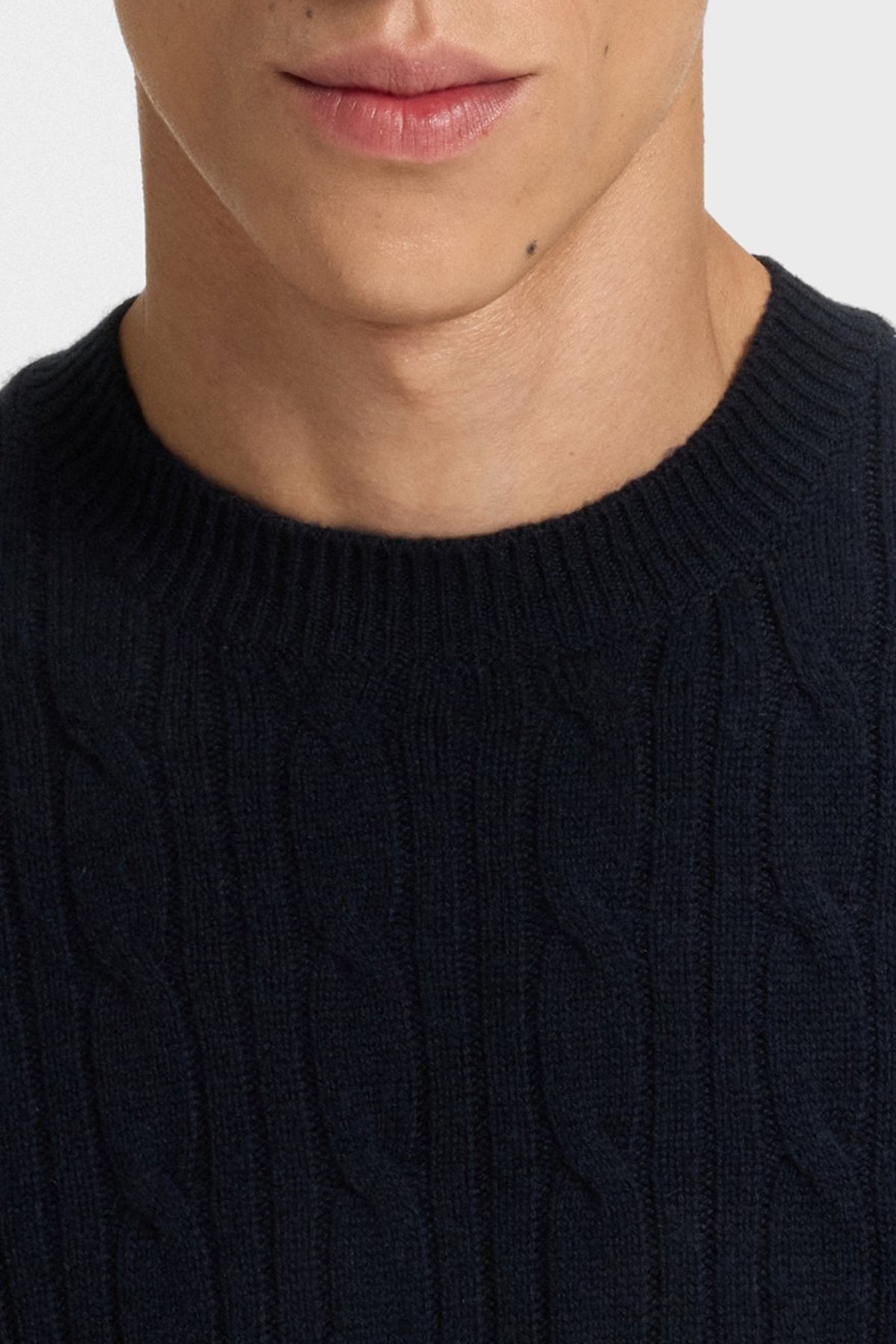 Örgülü Yün ve Kaşmir Karışımlı Regular Fit Bisiklet Yaka Erkek Kazak 50549975 404 LACİVERT