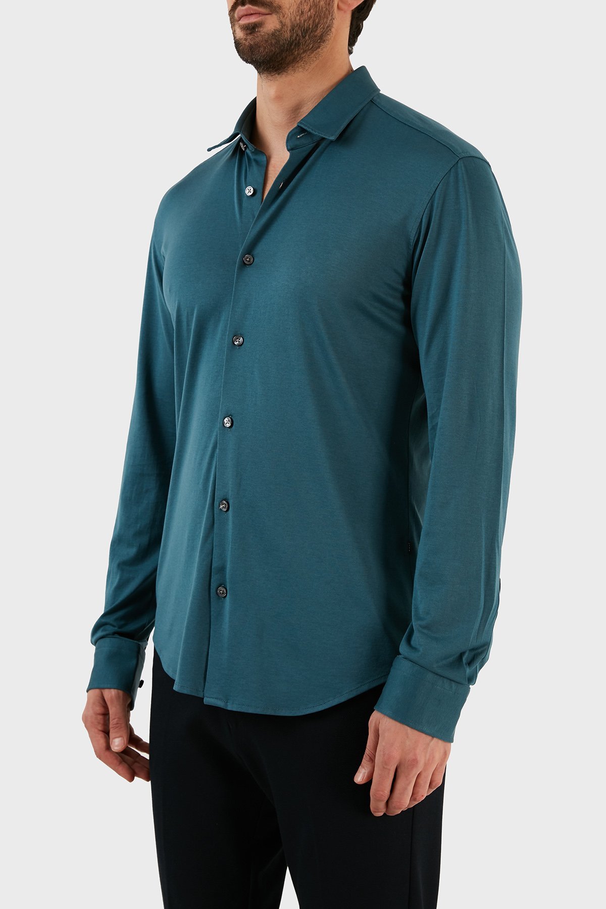Pamuk Karışımlı Uzun Kollu Slim Fit Erkek Gömlek 50483978 445 PETROL
